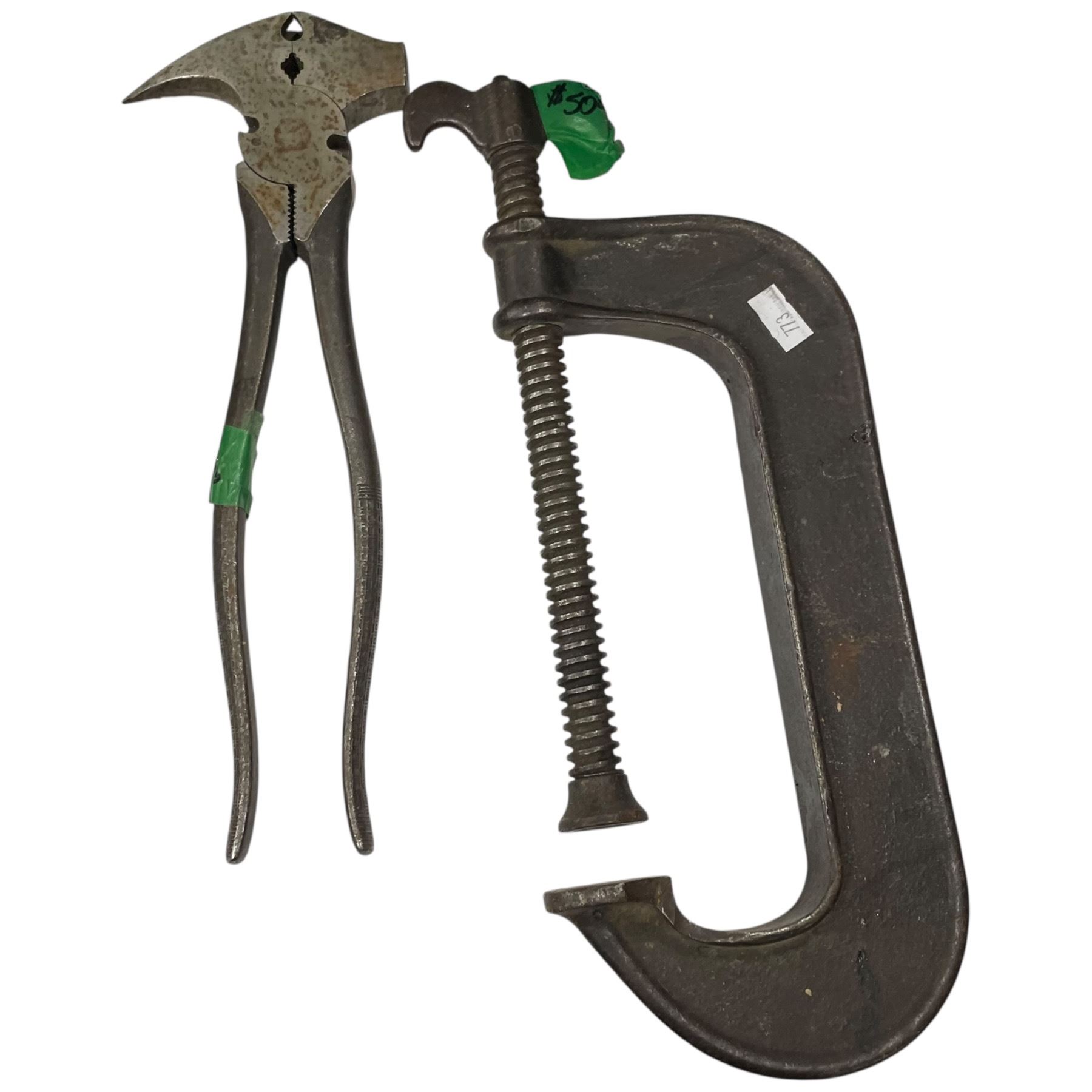 Mixed lot of vintage tools and boxes including a Plunger Dial Vice, Bakelite Toolbox, Fencing Tool and additional items. Exact contents are as pictured. Items show age-related wear consistent with use. Ideal for tool enthusiasts or collectors seeking a diverse range of vintage pieces.