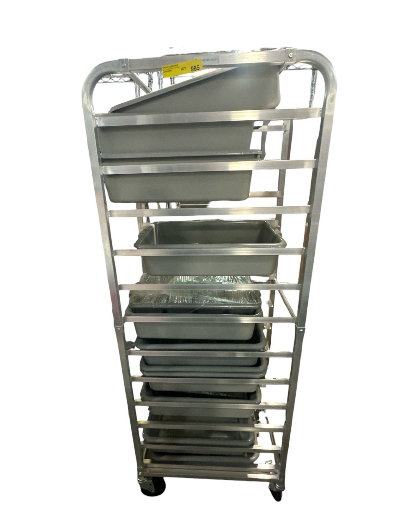 Commercial Aluminum Sheet Pan Rack with Assorted Plastic Food Bins