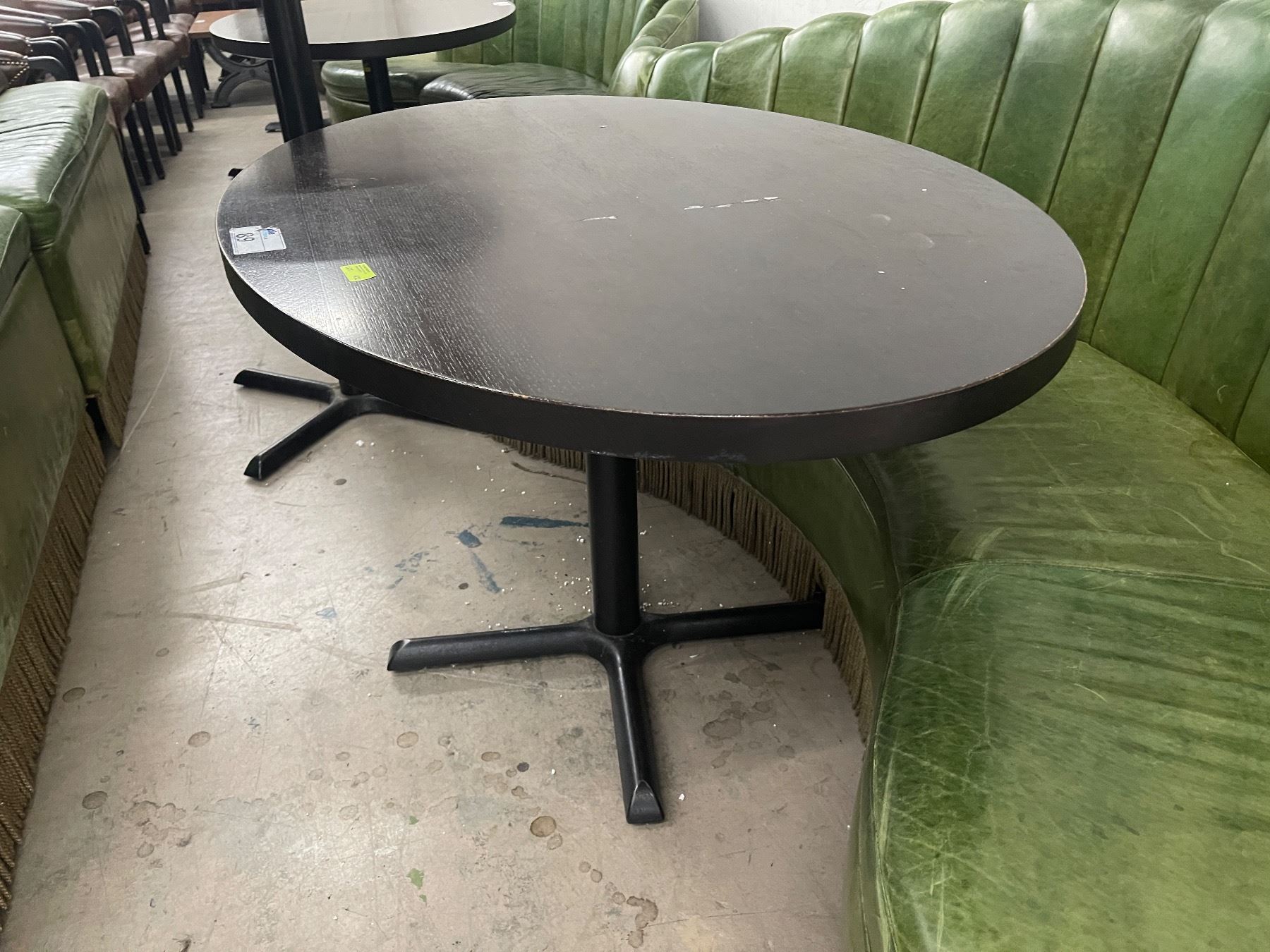 Commercial Grade Oval Dining Table with Black Wood Top and Heavy Metal Base (36  x 54  x 31  tall)