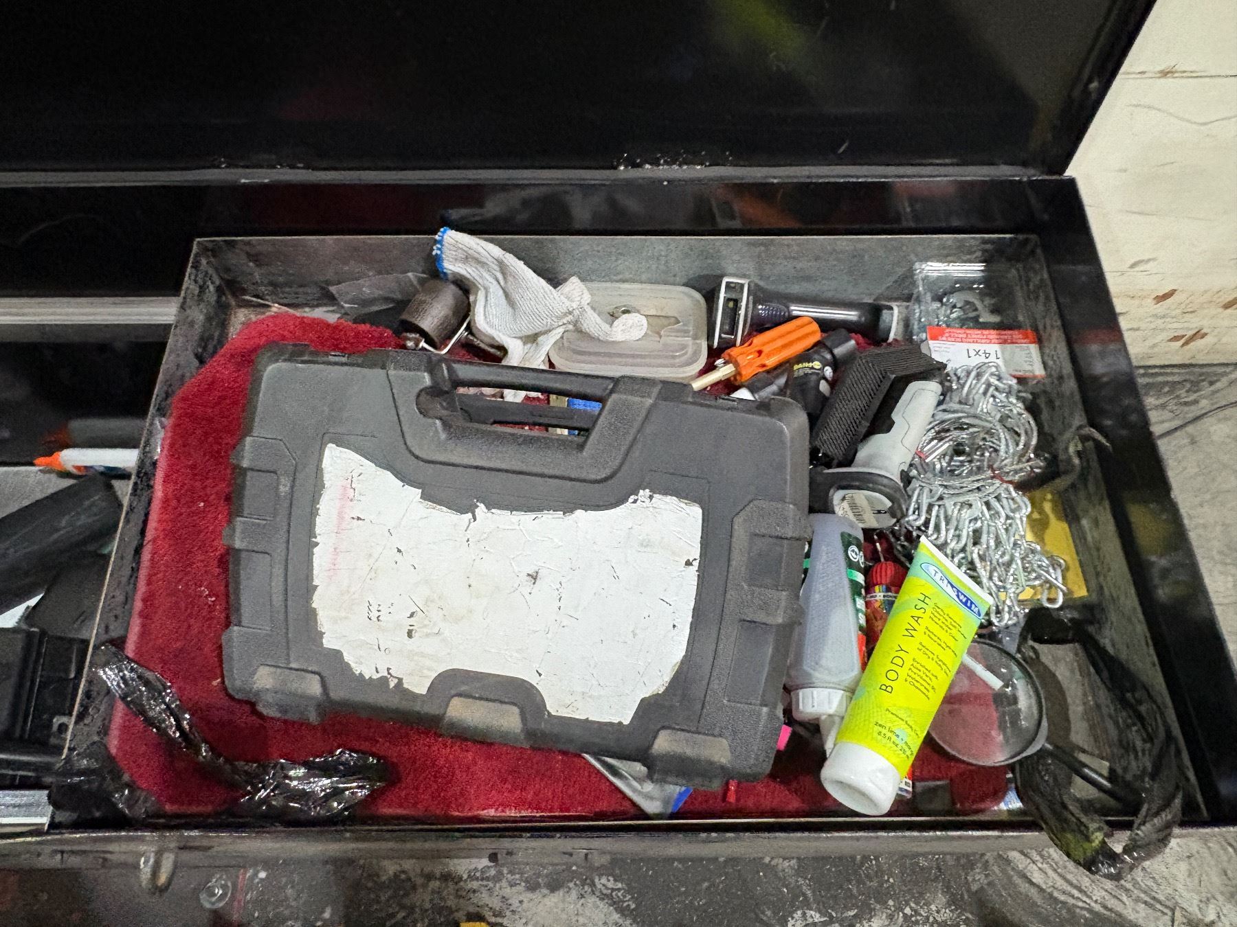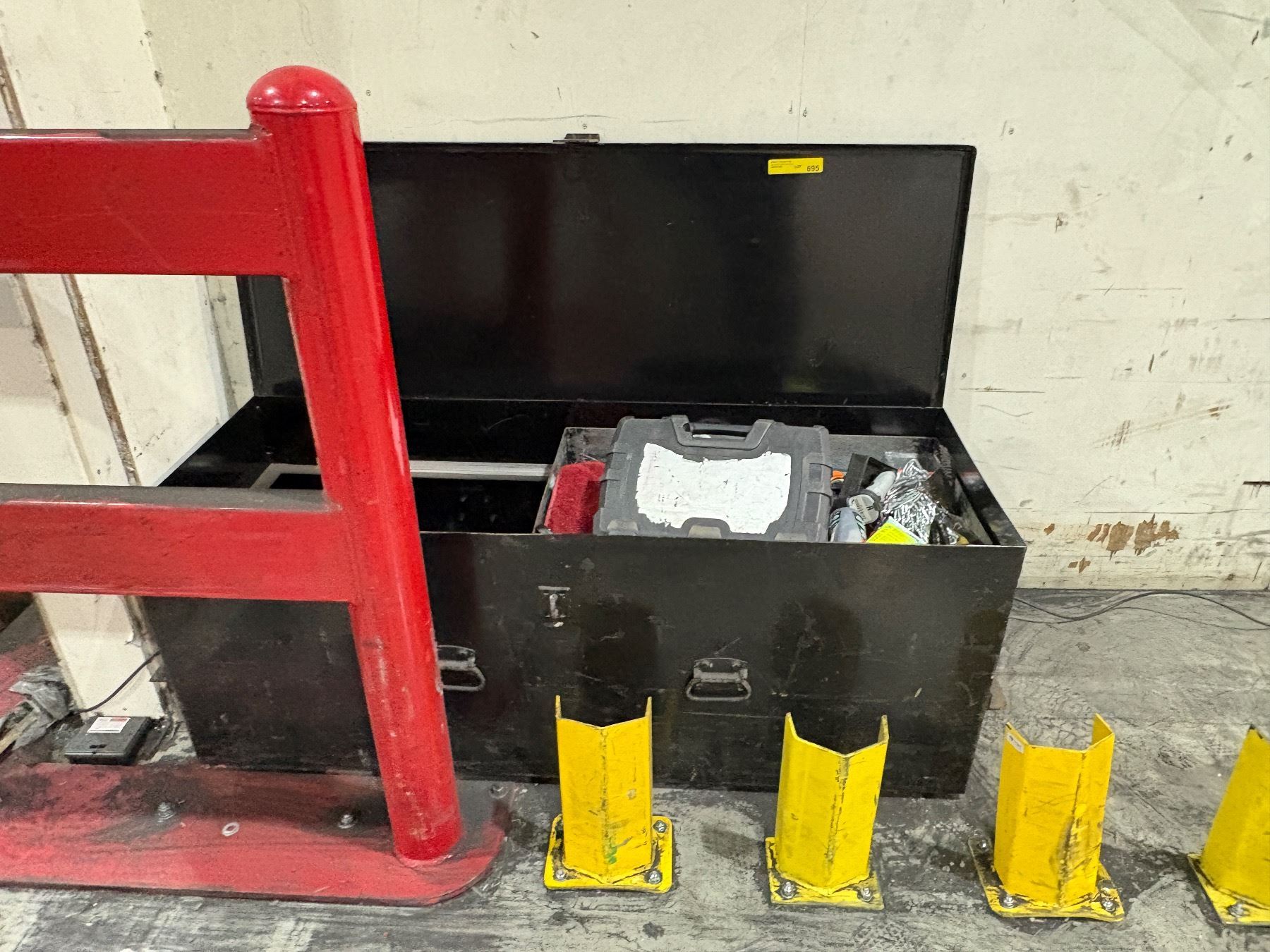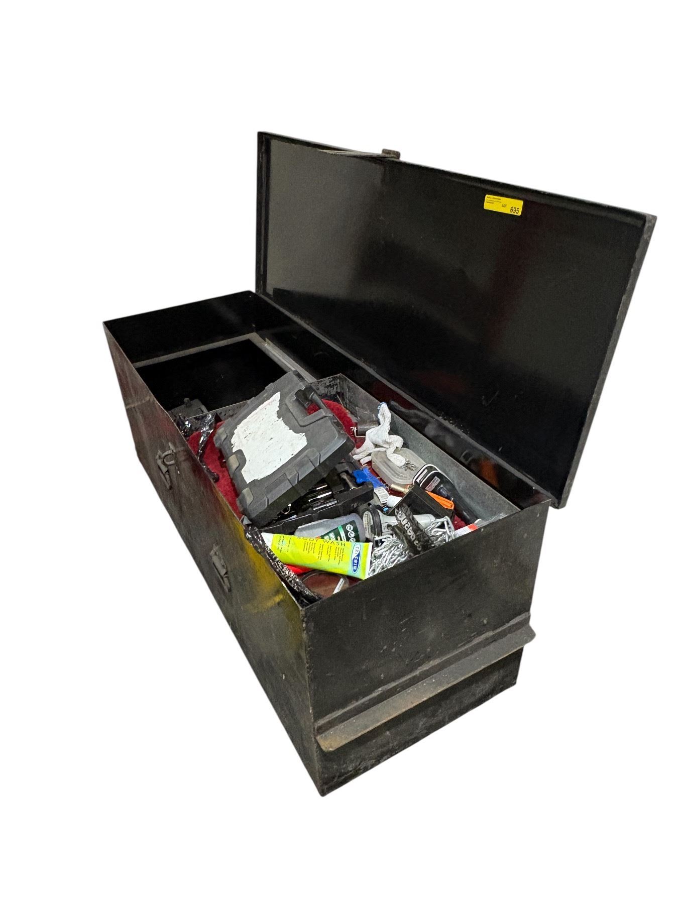Commercial heavy-duty metal tools box with contents - approx. 5ft L x 2ft D x 2.5ft H