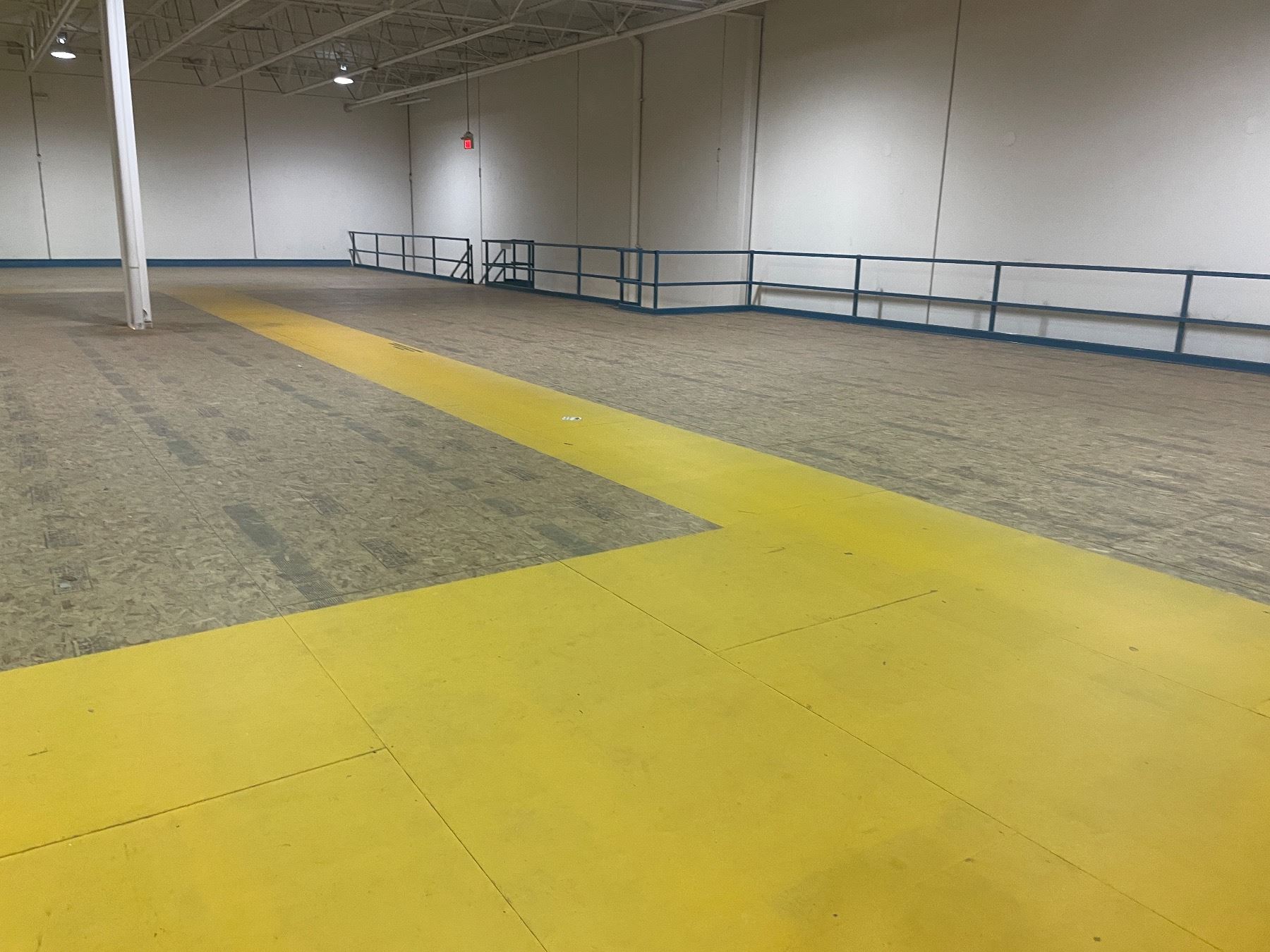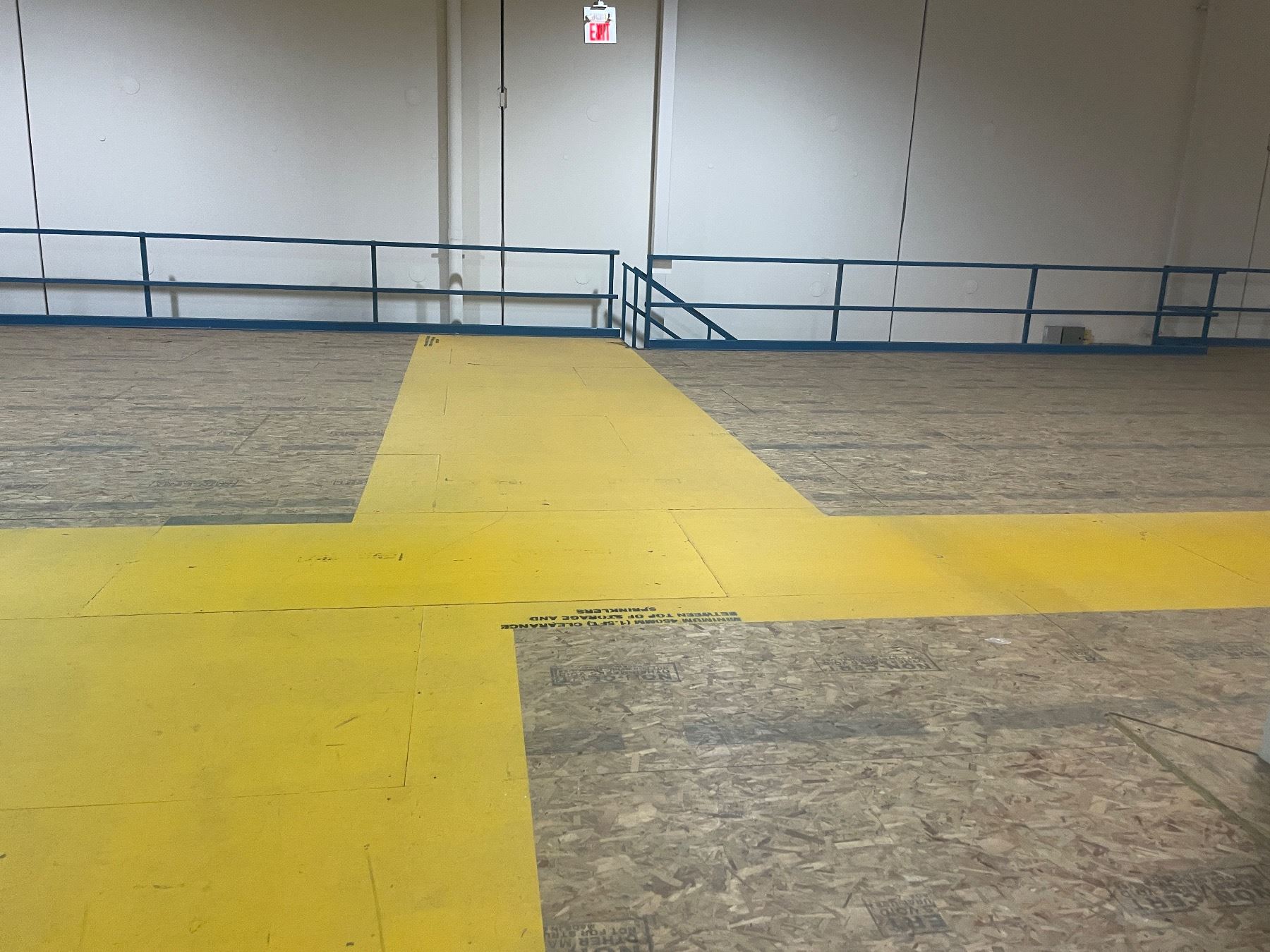 Full sprinkler system is included. Railings are welded to the platform.