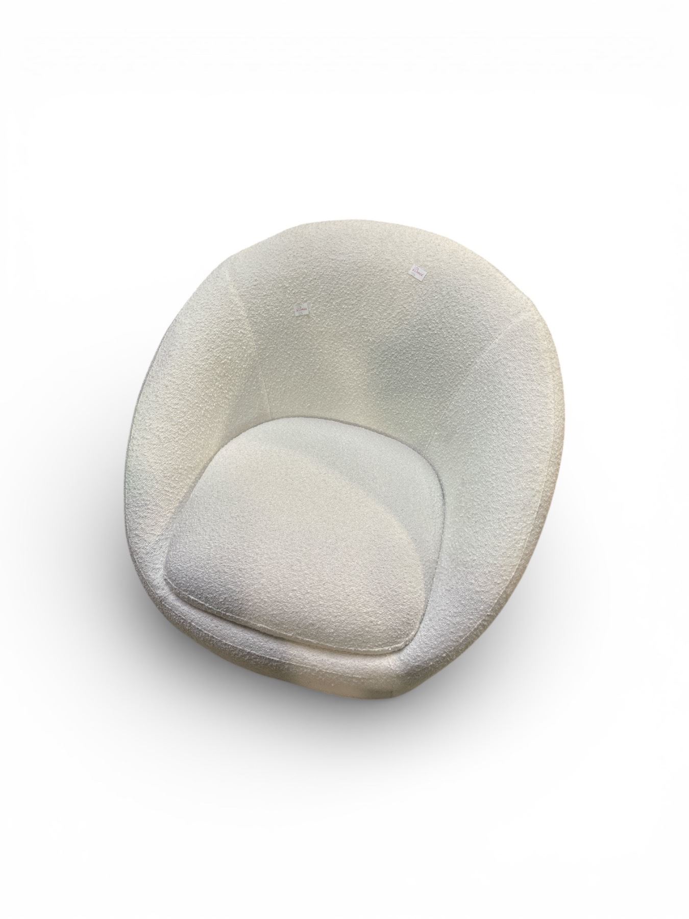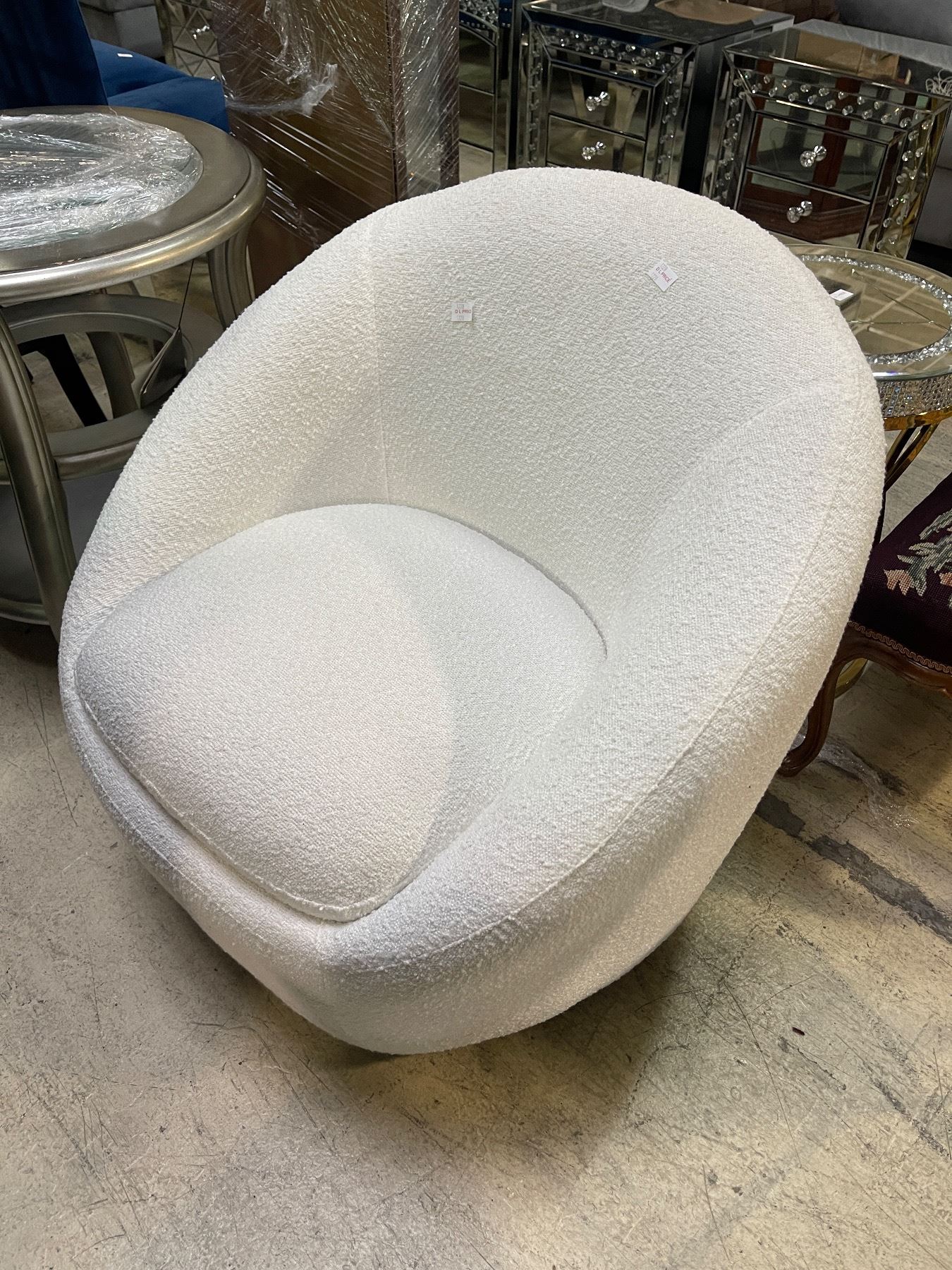 Contemporary Ivory Boucle Barrel Accent Chair, Approx. H29" x W31"