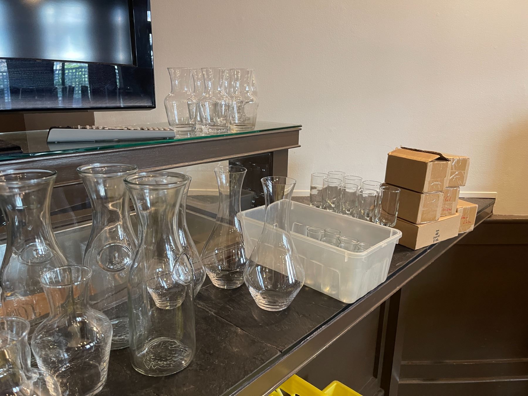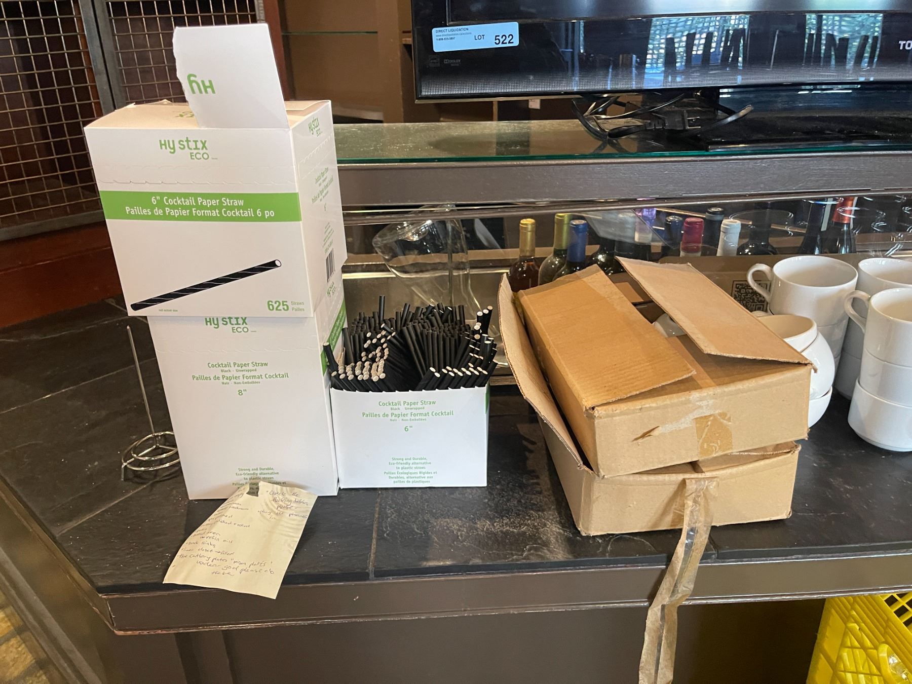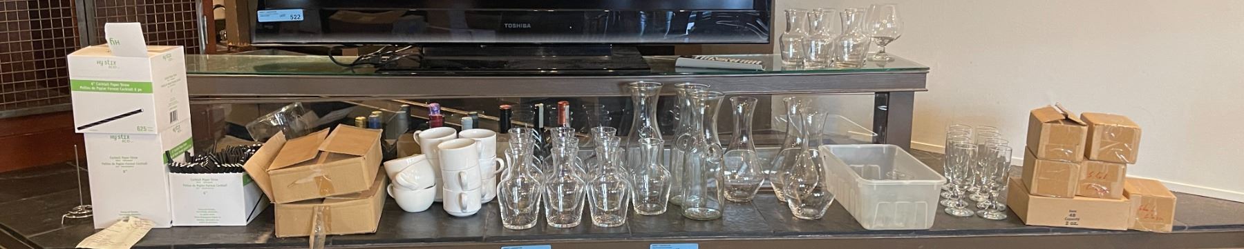 Contents on bar - Wine crafts glasses coffee cups, straws, etc.