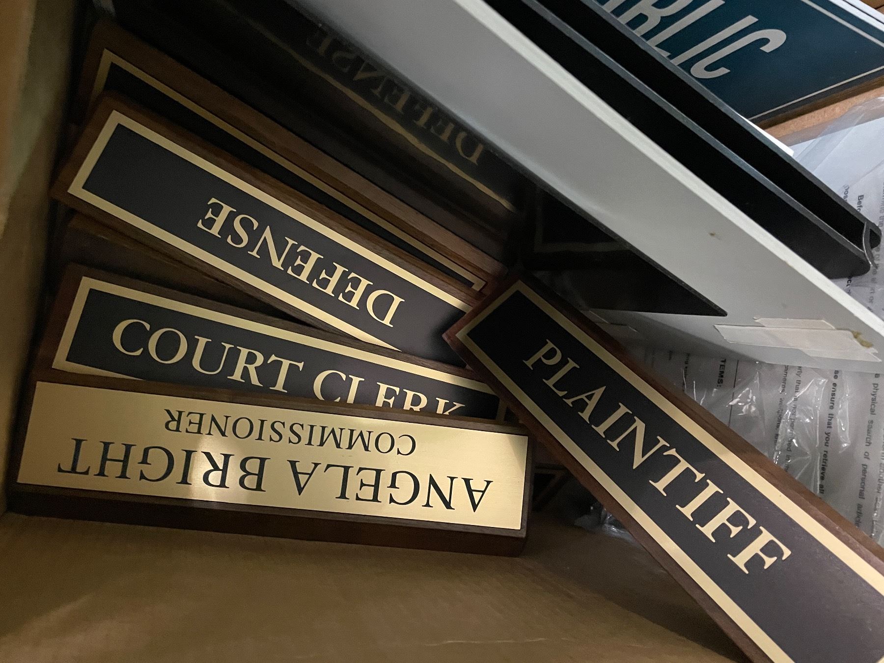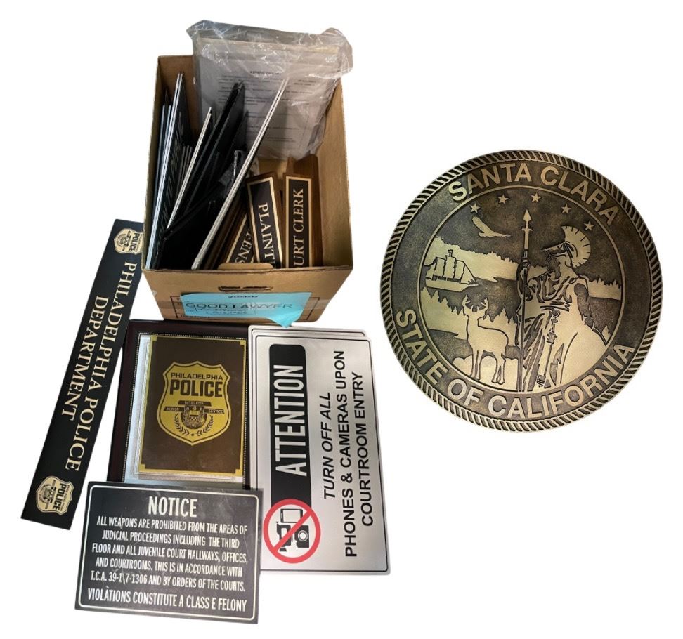 Courtroom Signage Movie Props - Courtroom Entry Notices, Nameplates, Wall Plaques, and More