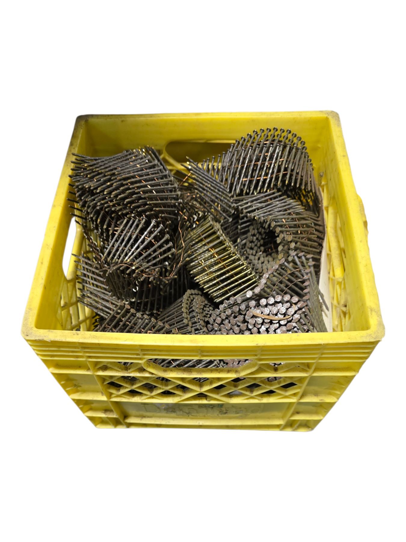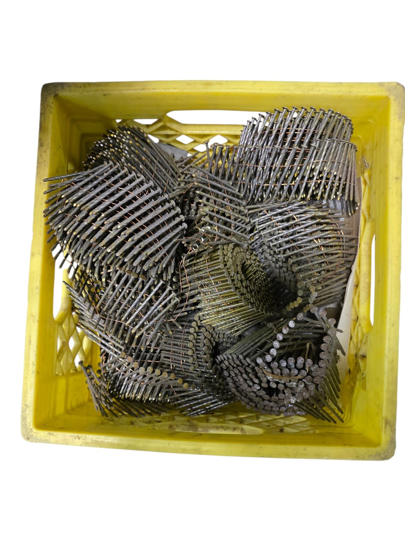 Crate full of Industrial Coils of Collated Framing Nails