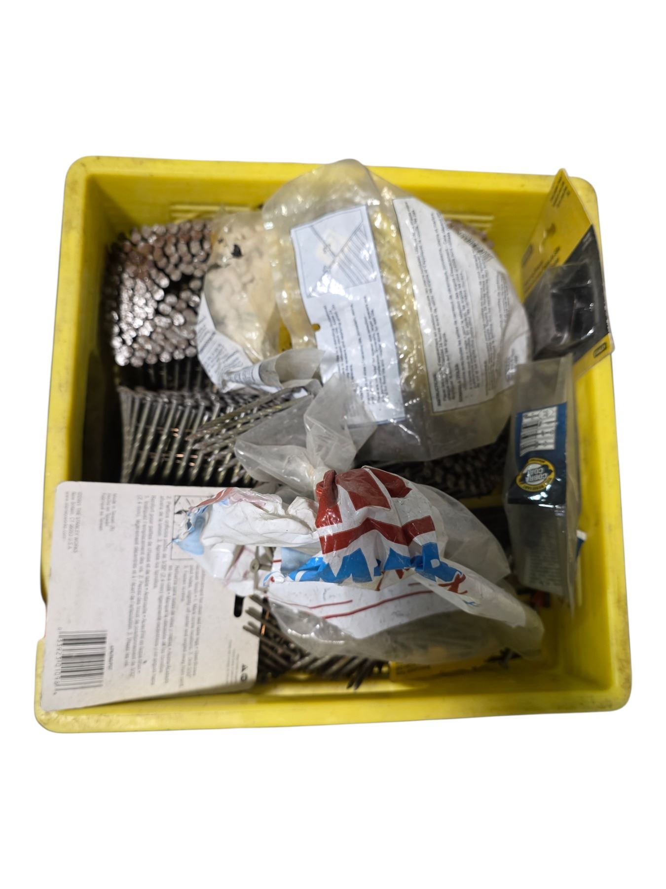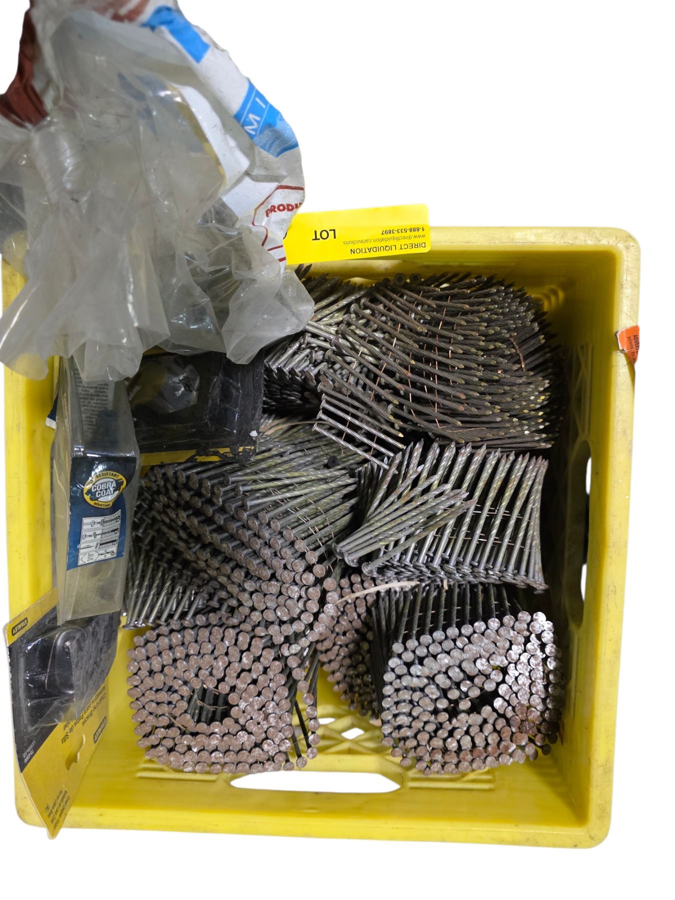 Crate full of Industrial Coils of Collated Framing Nails