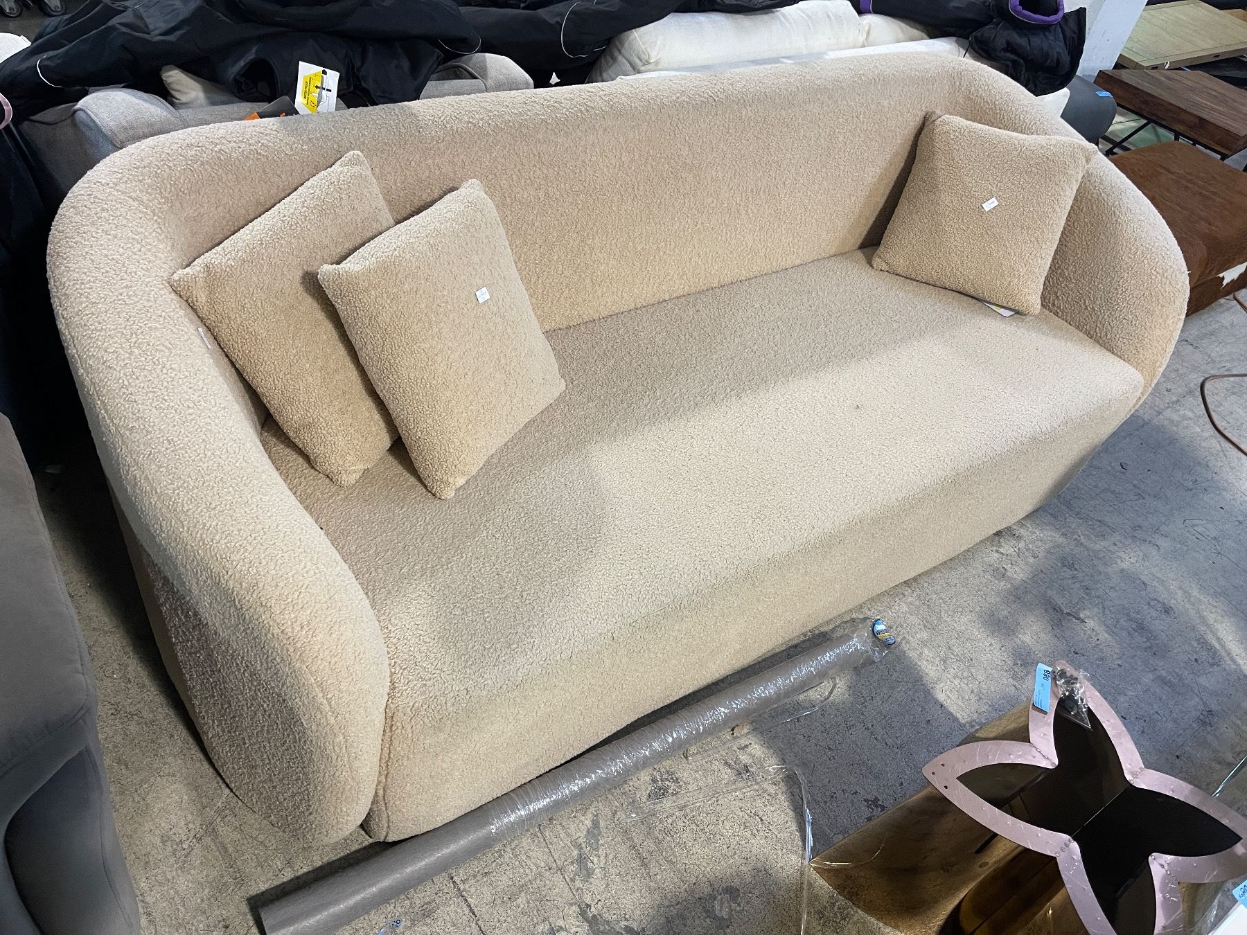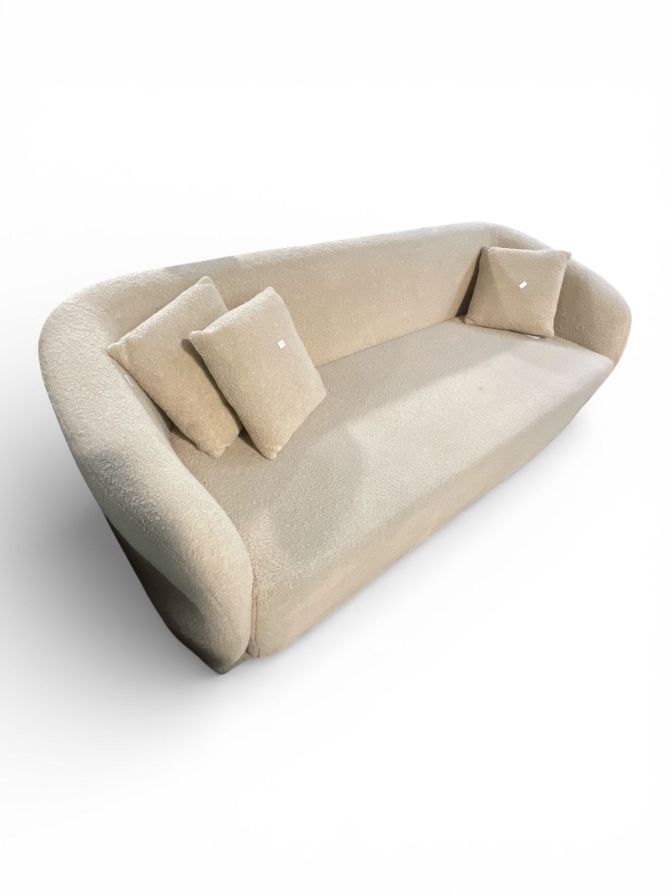 Cream Boucle Curved Sofa, Approx. H32.5" x 85" x 35"