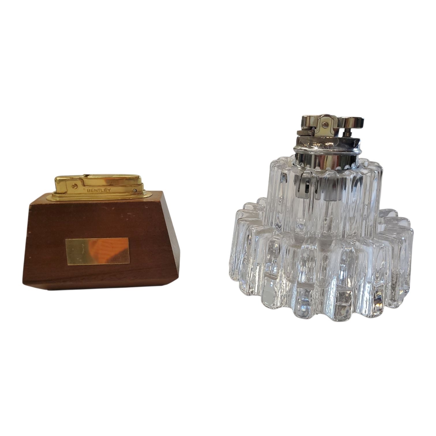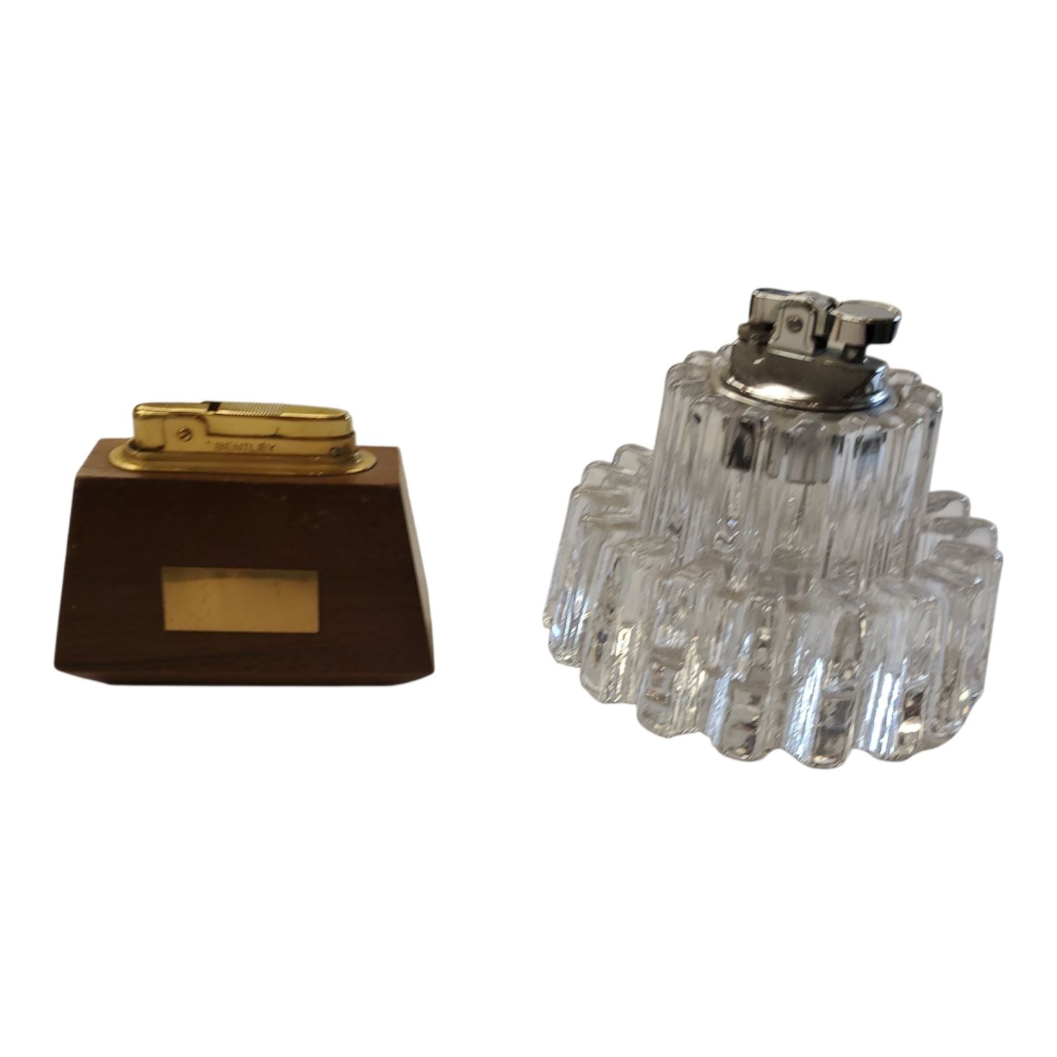 Crystal Table Lighter with Matching Ashtray + Wood Bentley Lighter