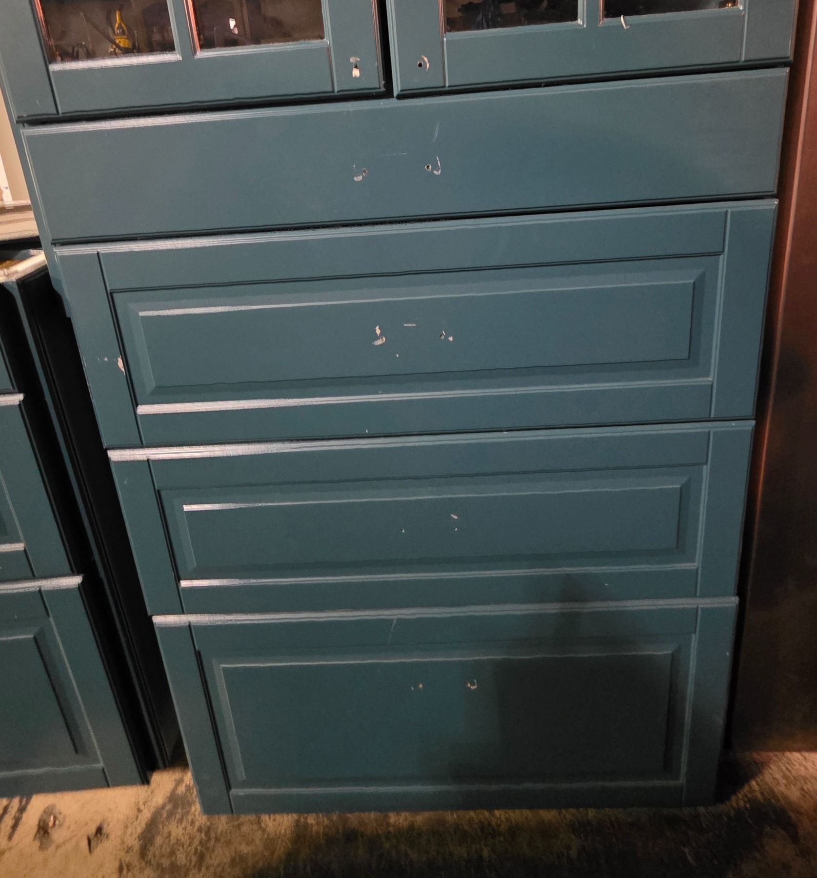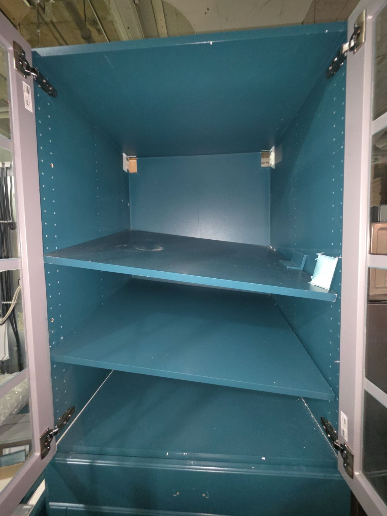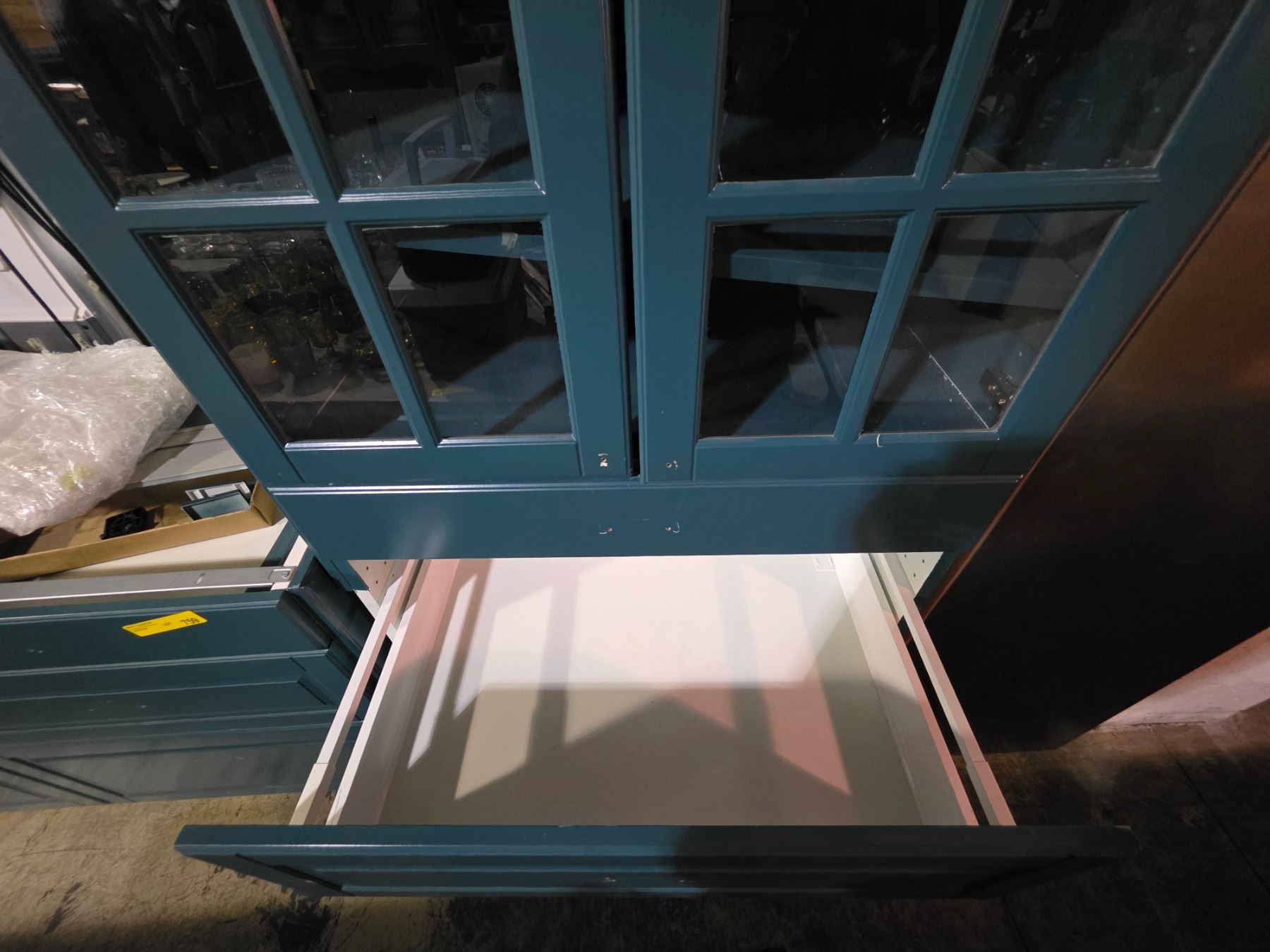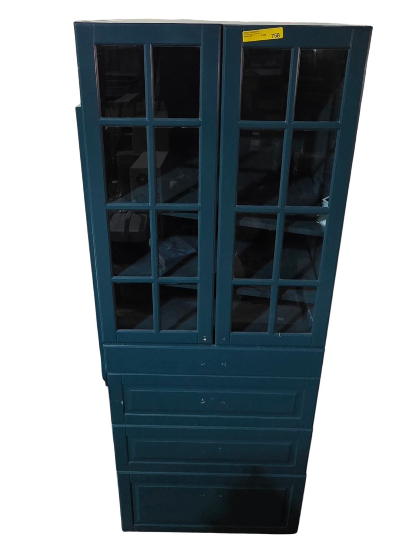 Dark Blue Glass Display Kitchen Cabinet - approx. 30" x 80" H (Handles are missing)