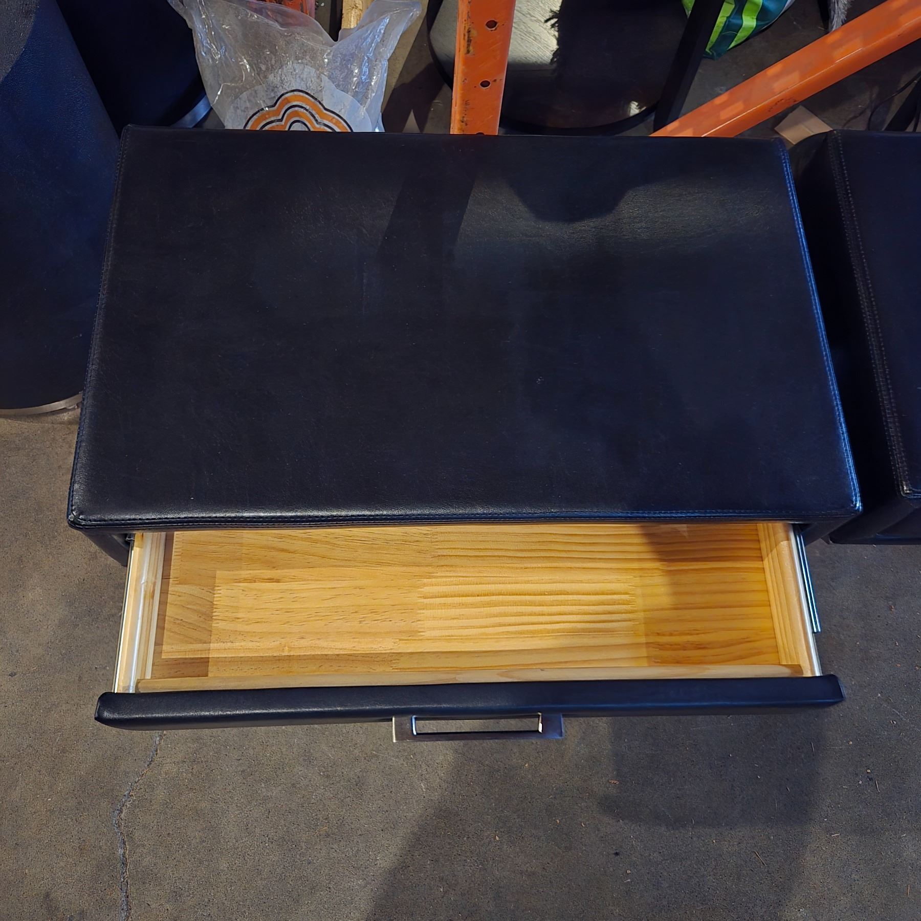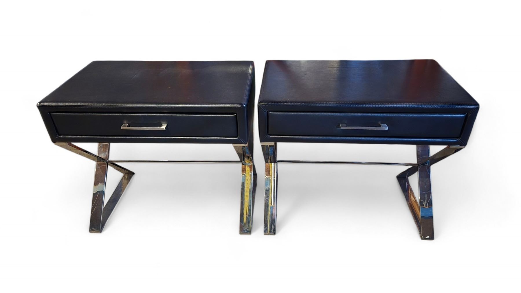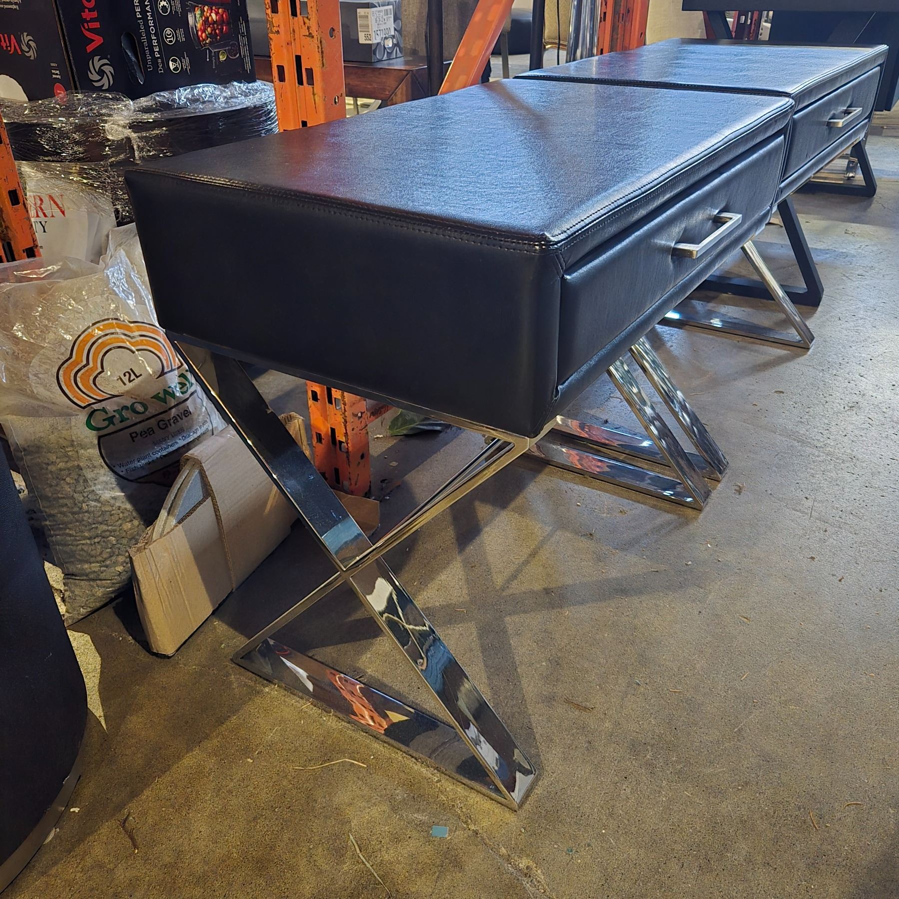 Dark Brown / Black Leather End Tables w/ Drawer & Chrome Legs - 28x17x25"