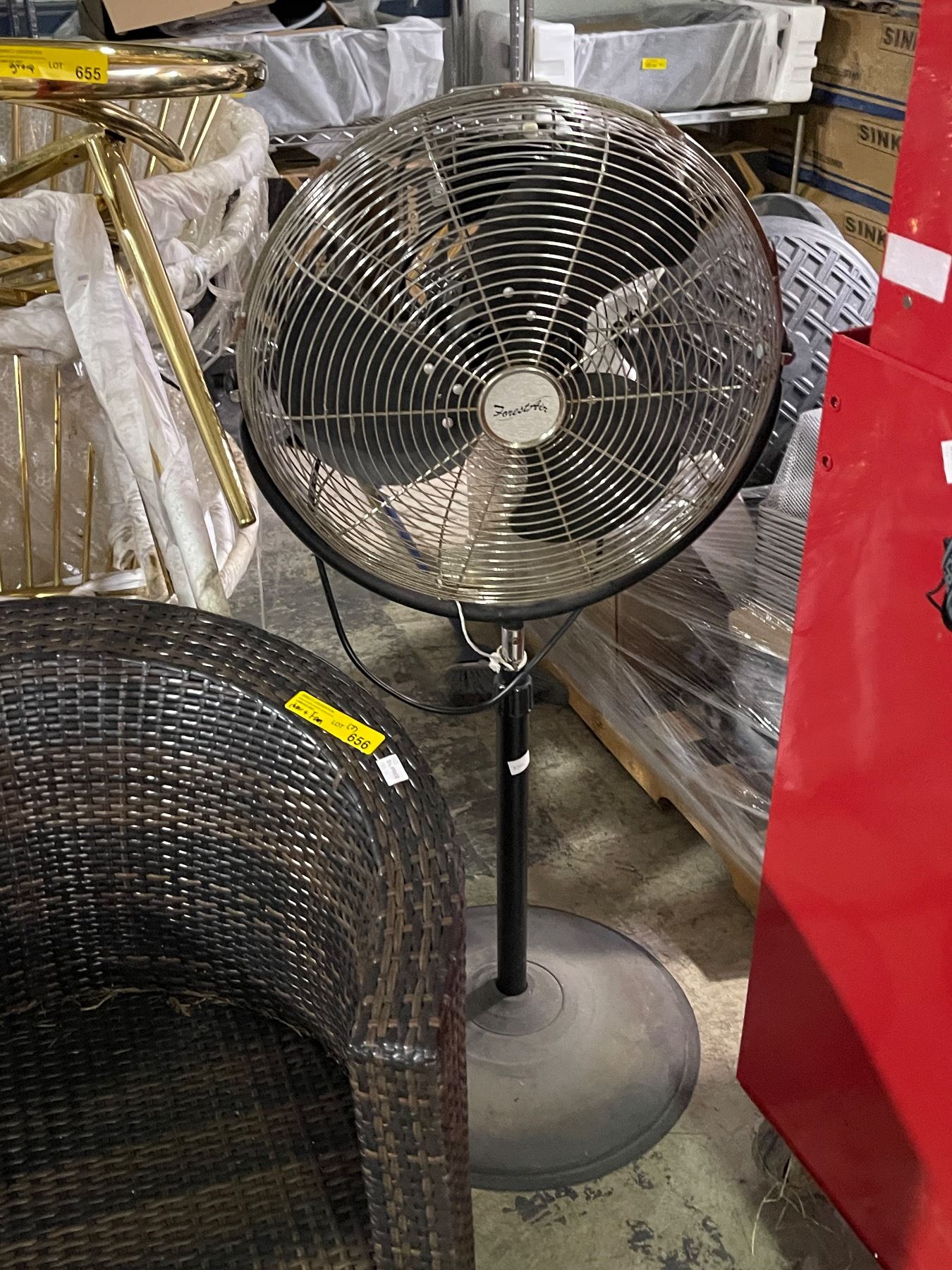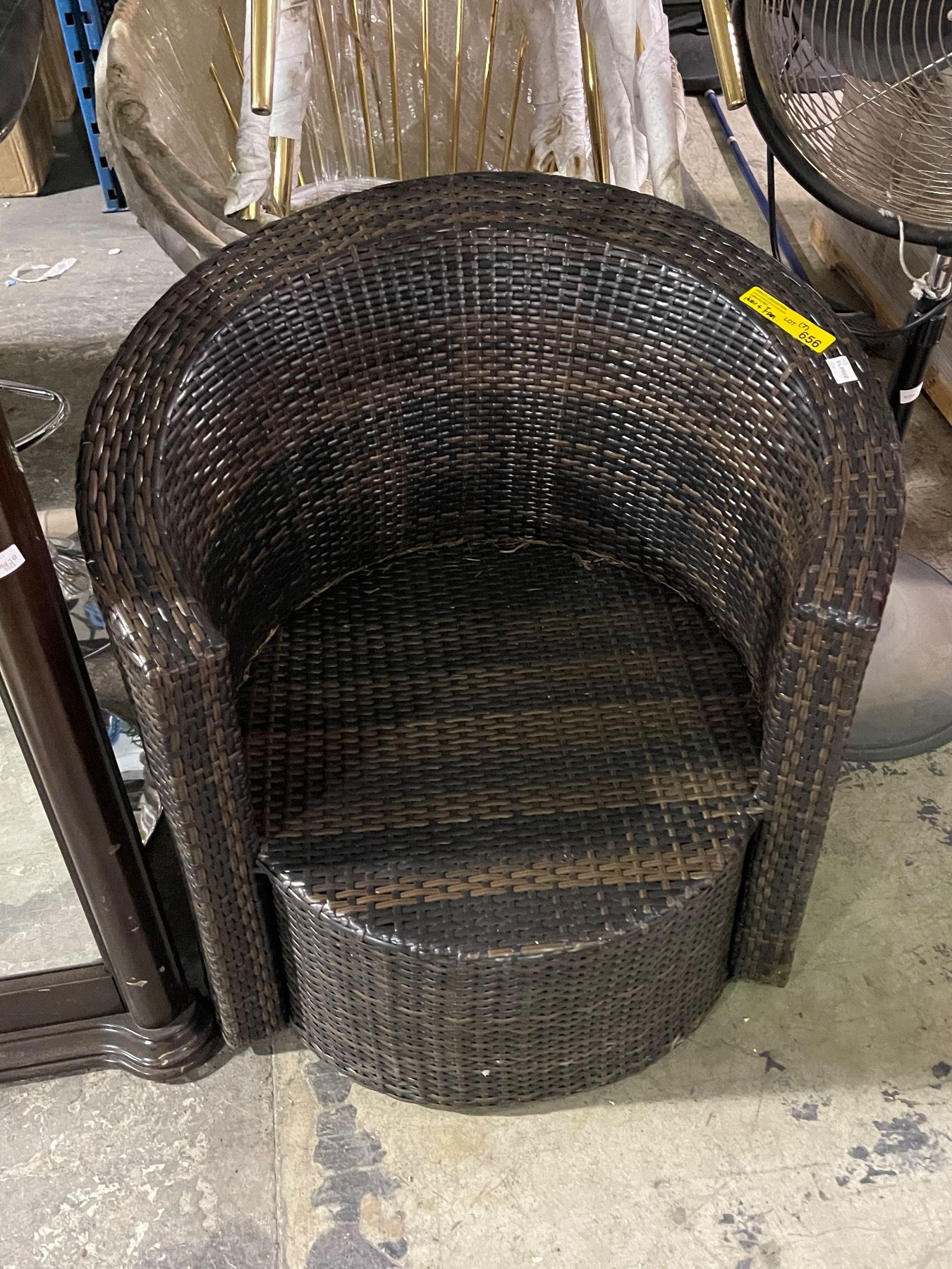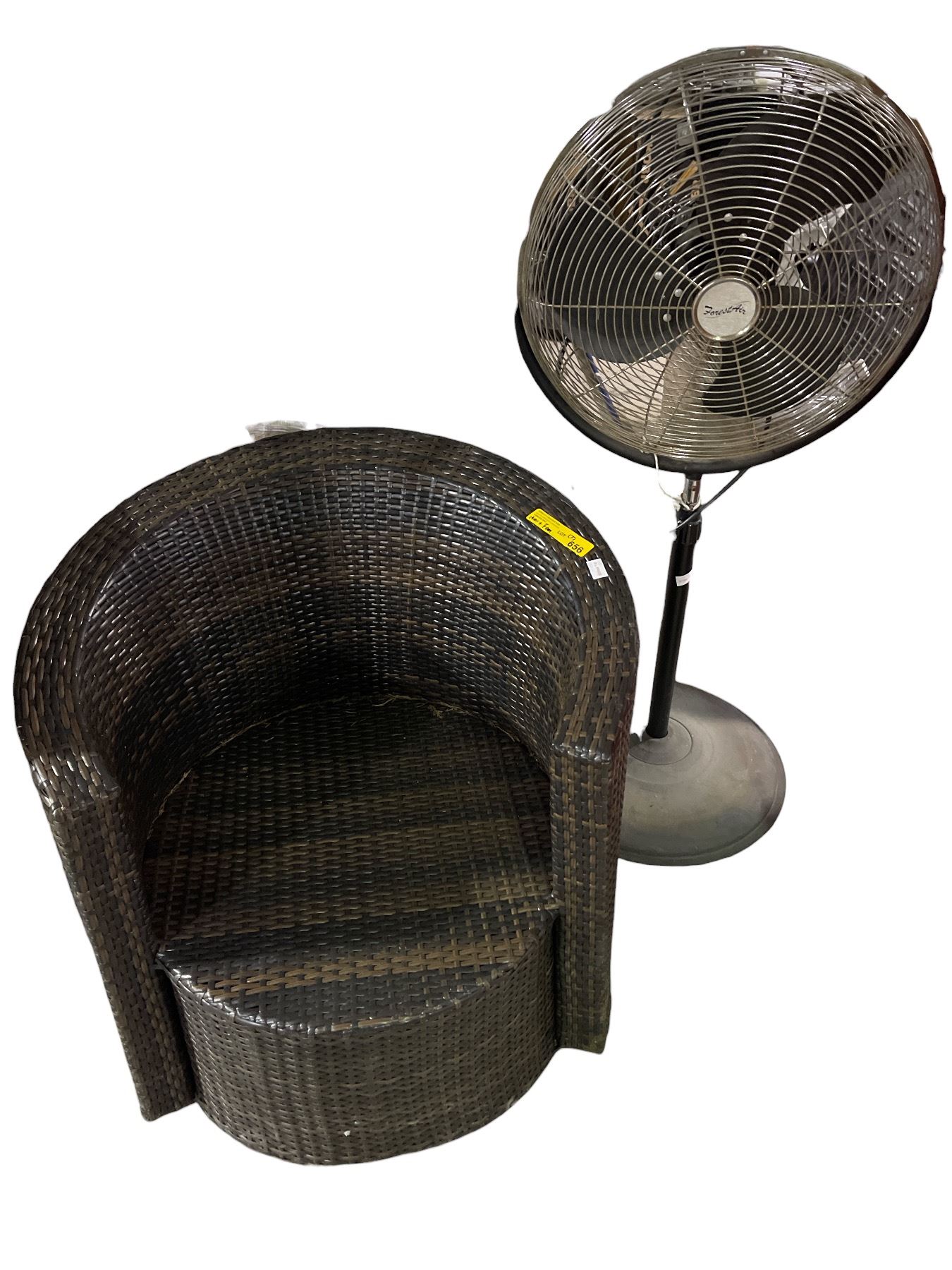 Dark Brown Rattan Curved Outdoor Chair and A.C. Electric Fan - As Is