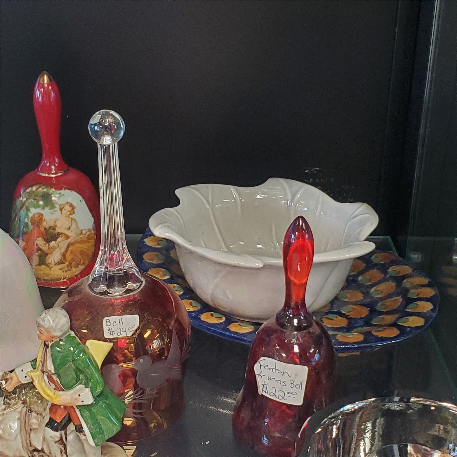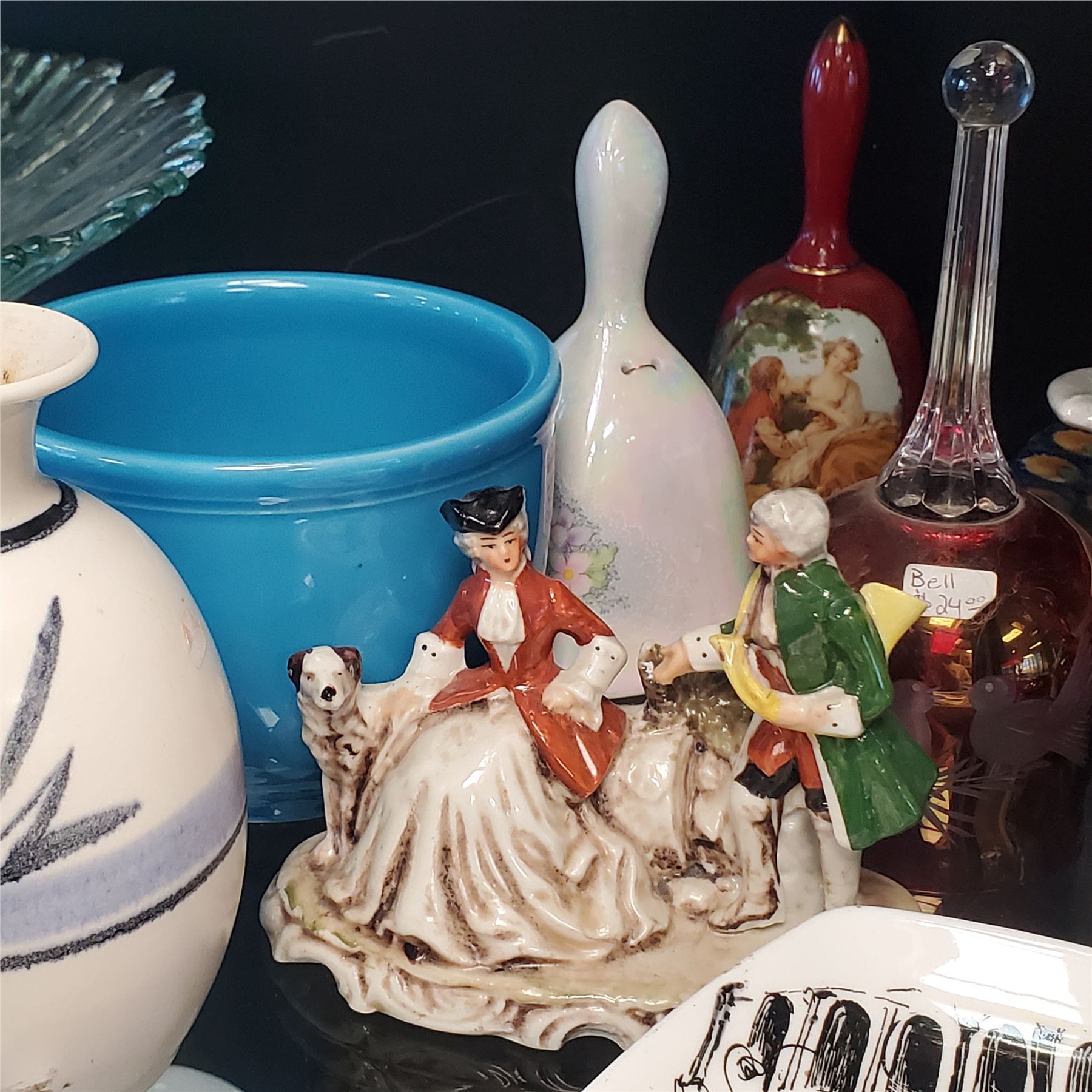Collection of decorative collectables featuring glass, pottery, and ceramics from makers including Homer Laughlin, Limoge, and Fenton. Includes assorted styles, designs, and pieces. Item is as pictured.