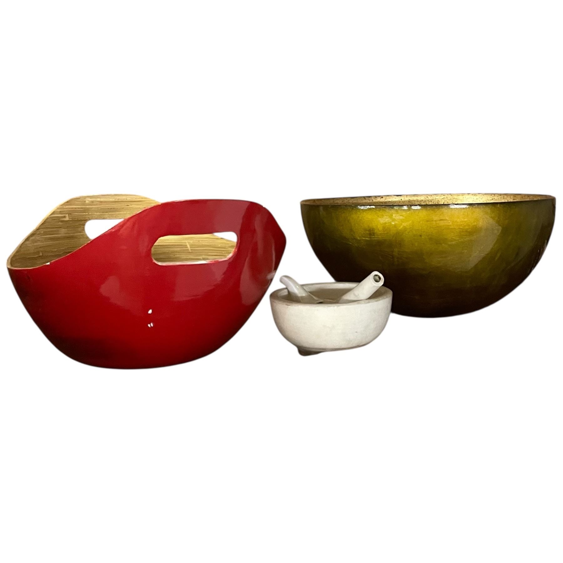 Decorative Collectibles: Large Bowls, Silverplate Items and Mortar & Pestle