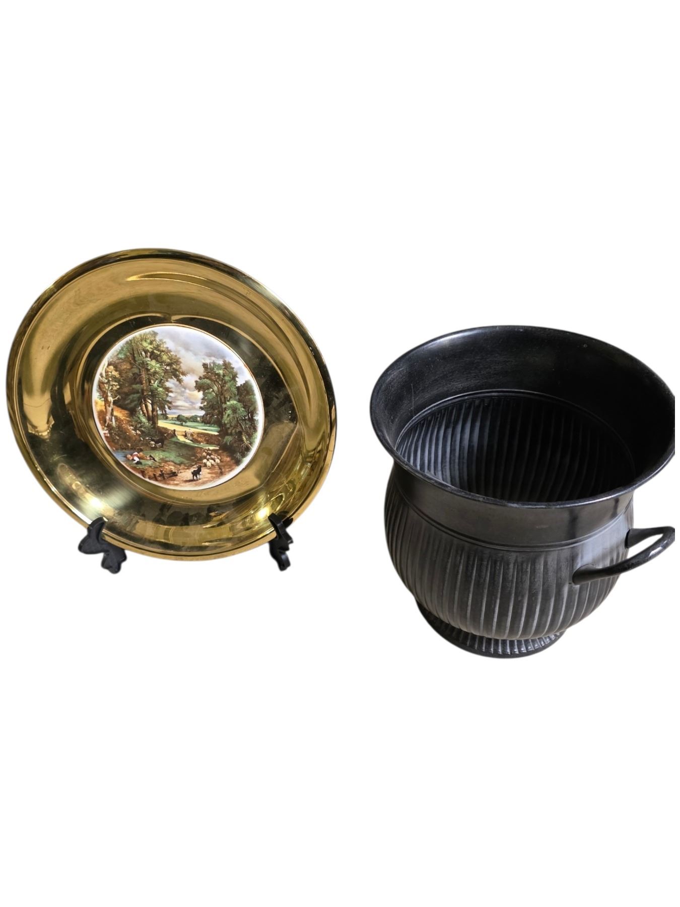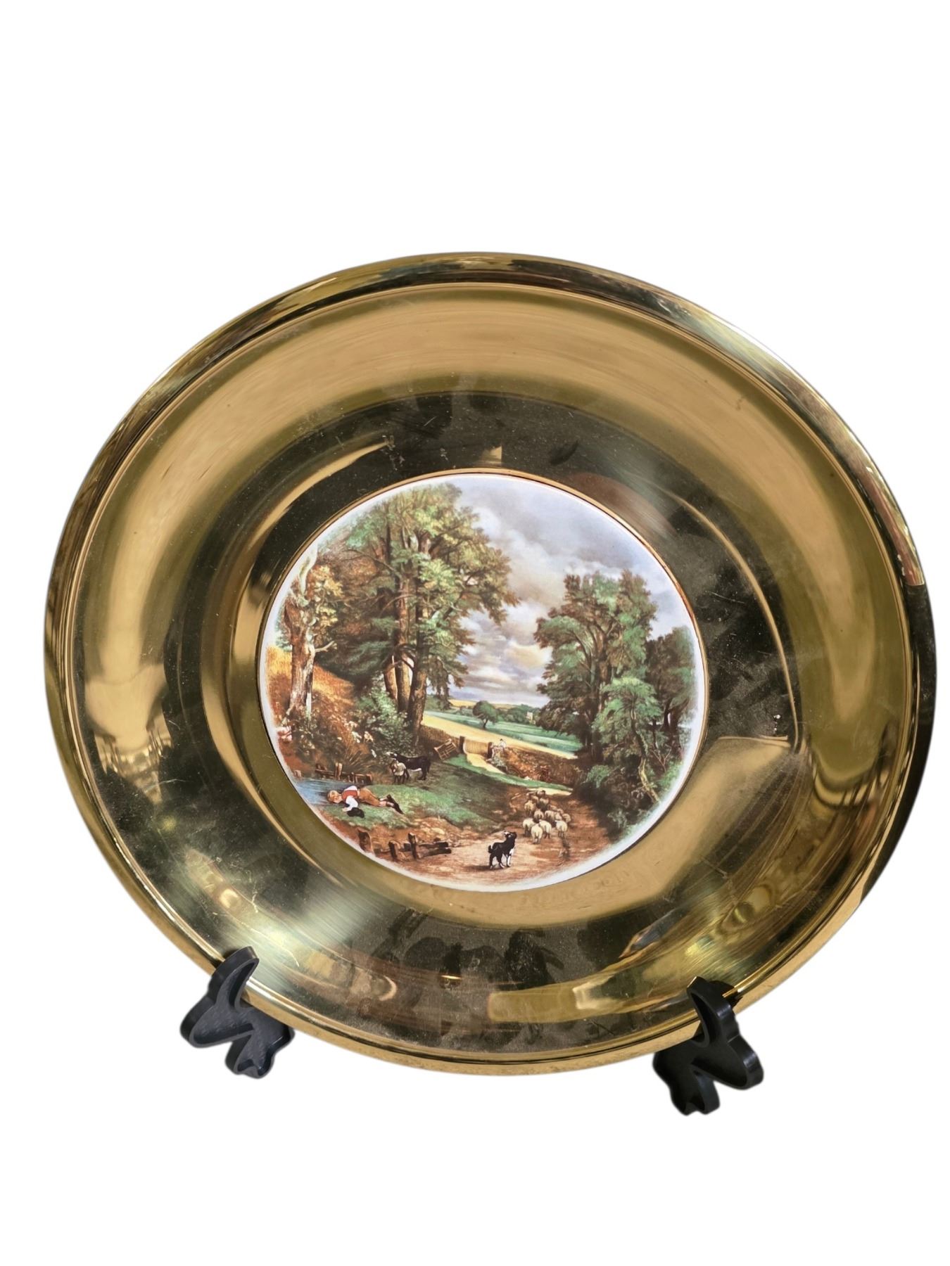 Decorative Gold-Tone Plate with Landscape Scene