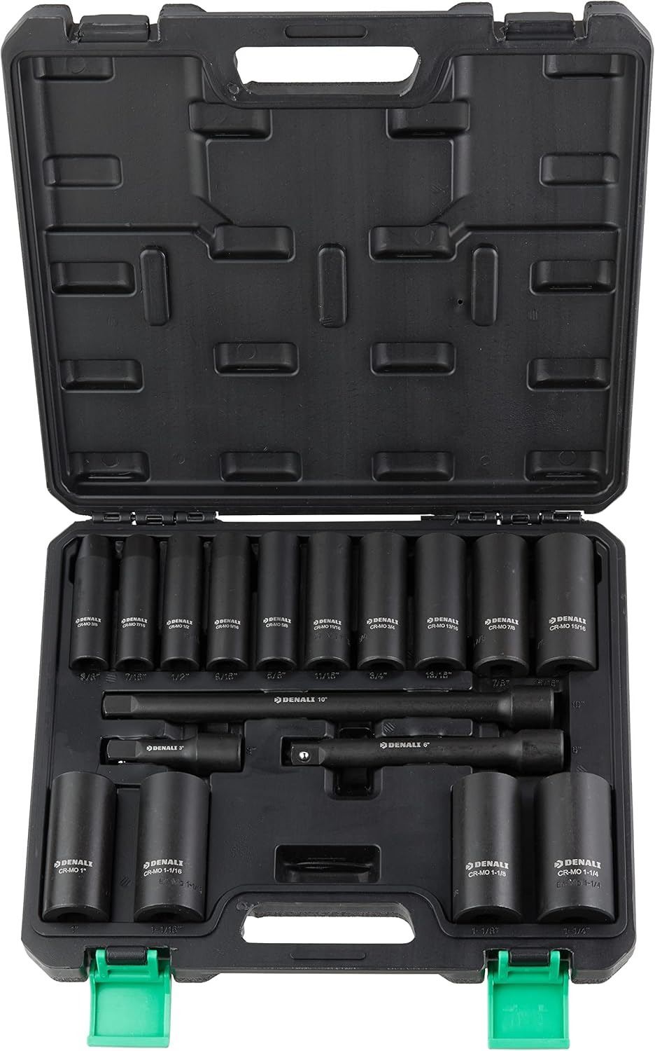 Denali 1/2" Drive SAE Deep Impact Socket Set with Carrying Case (17-Piece)
