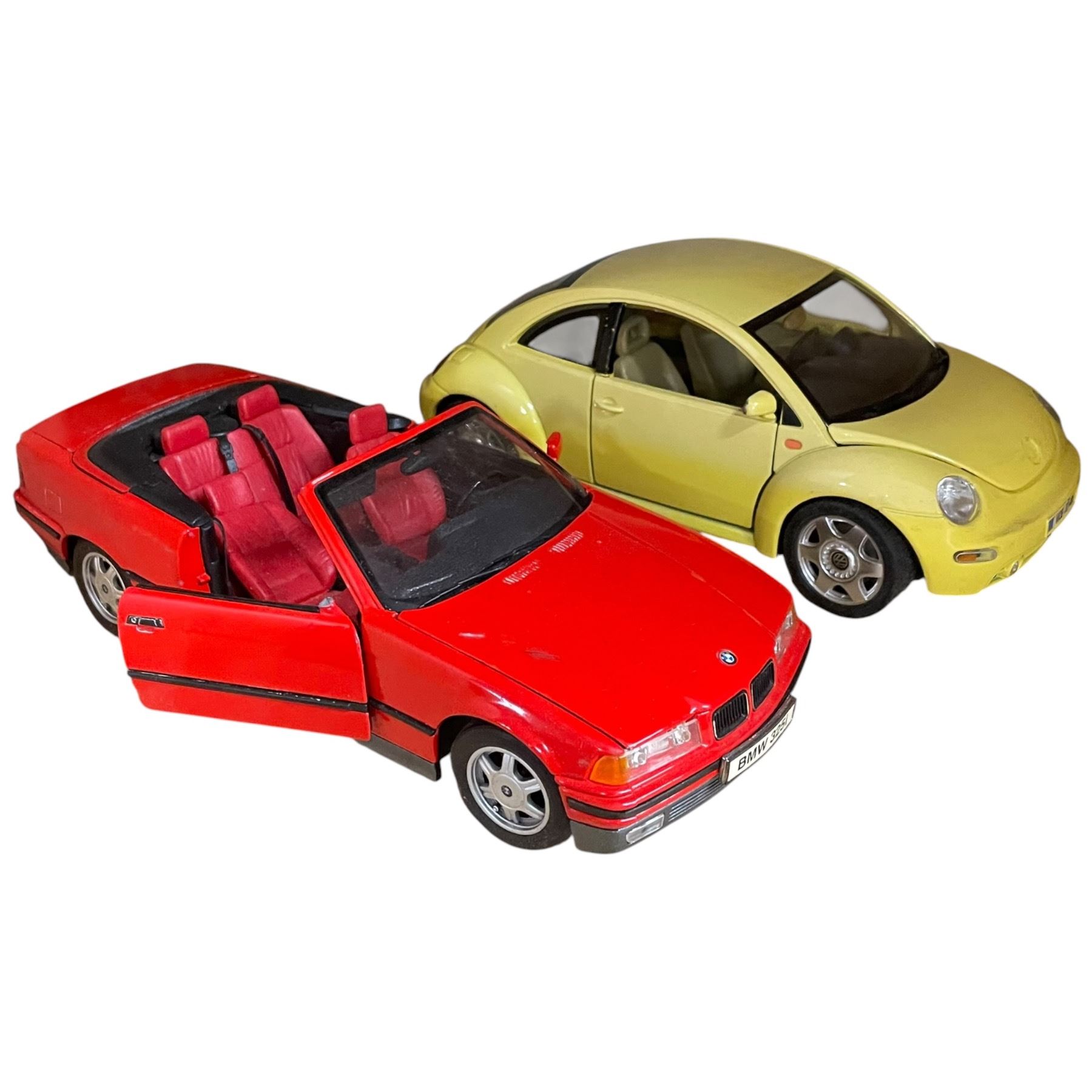 Diecast BMW 325i and 1998 Volkswagen Beetle