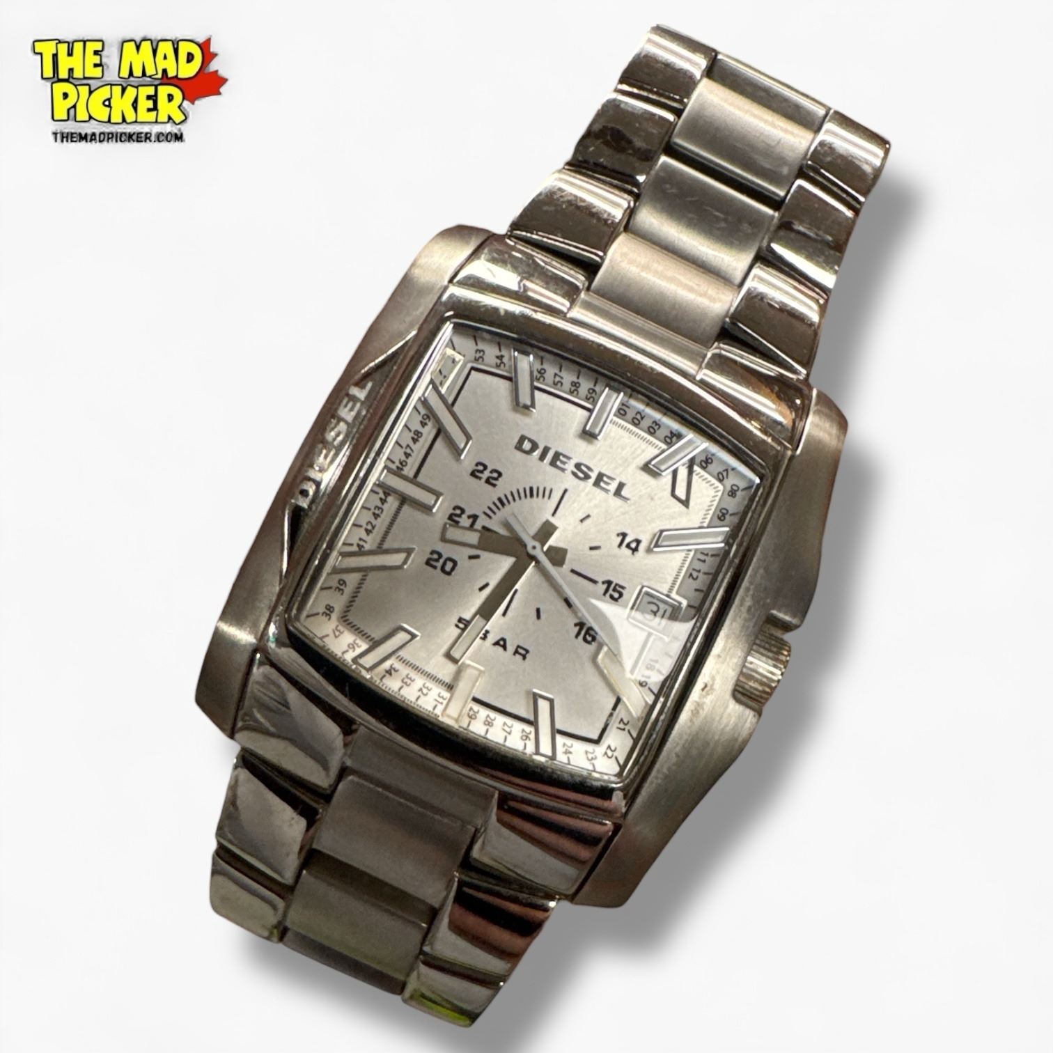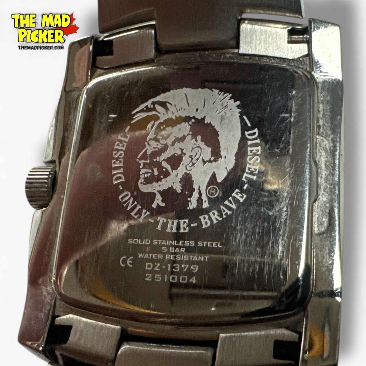Diesel DZ1379 watch featuring a stainless steel case and bracelet. Quartz movement with a black dial and silver-tone hour markers. Water-resistant up to 5 bar (50 meters). Includes date function and bold, modern design. Suitable for everyday wear.