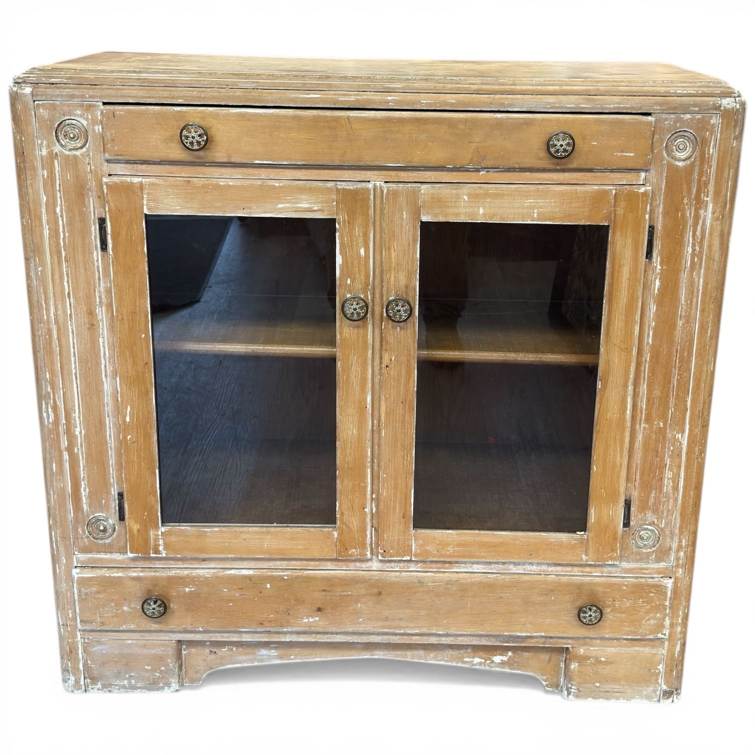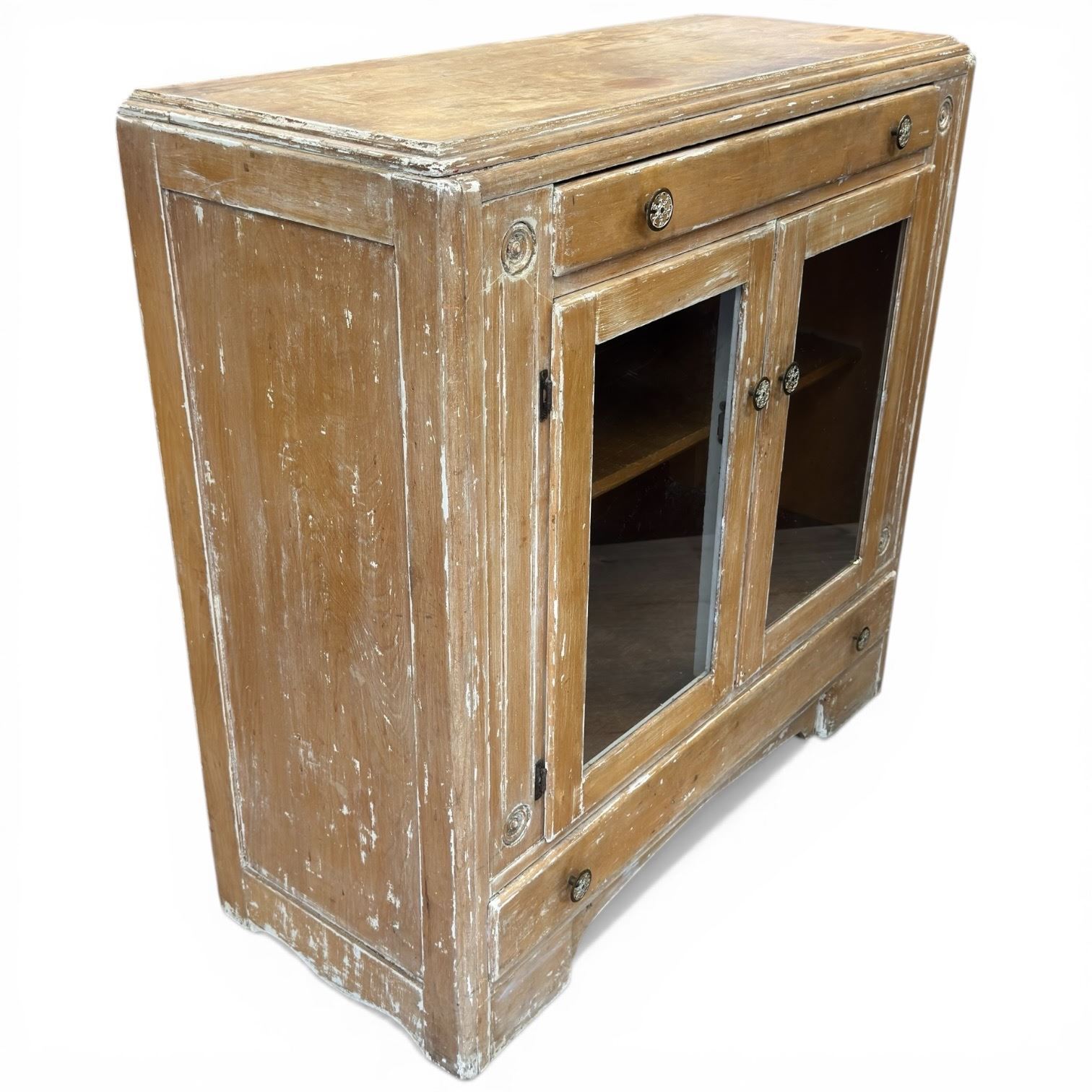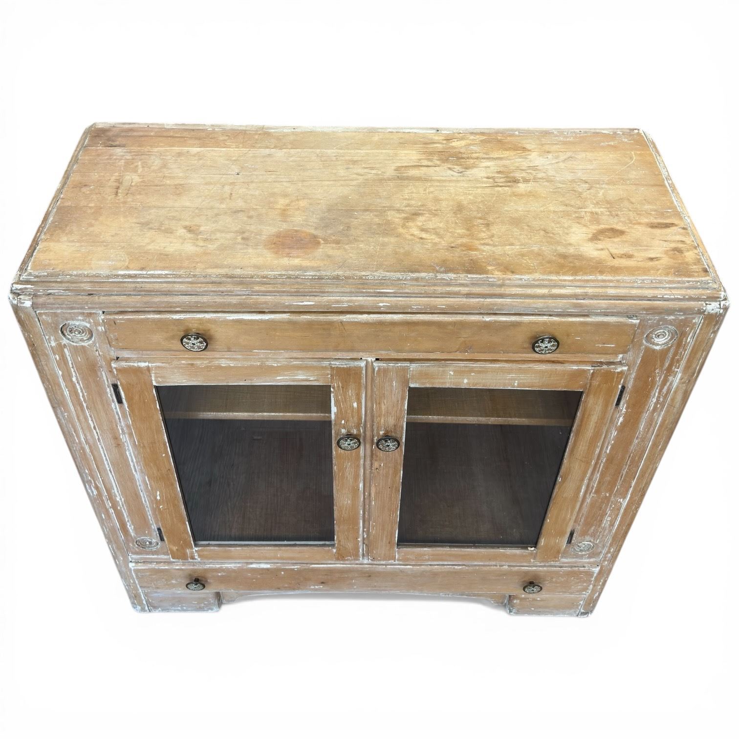 Distressed Wood Display Cabinet with Glass Doors (39" x 17" x 39" tall)