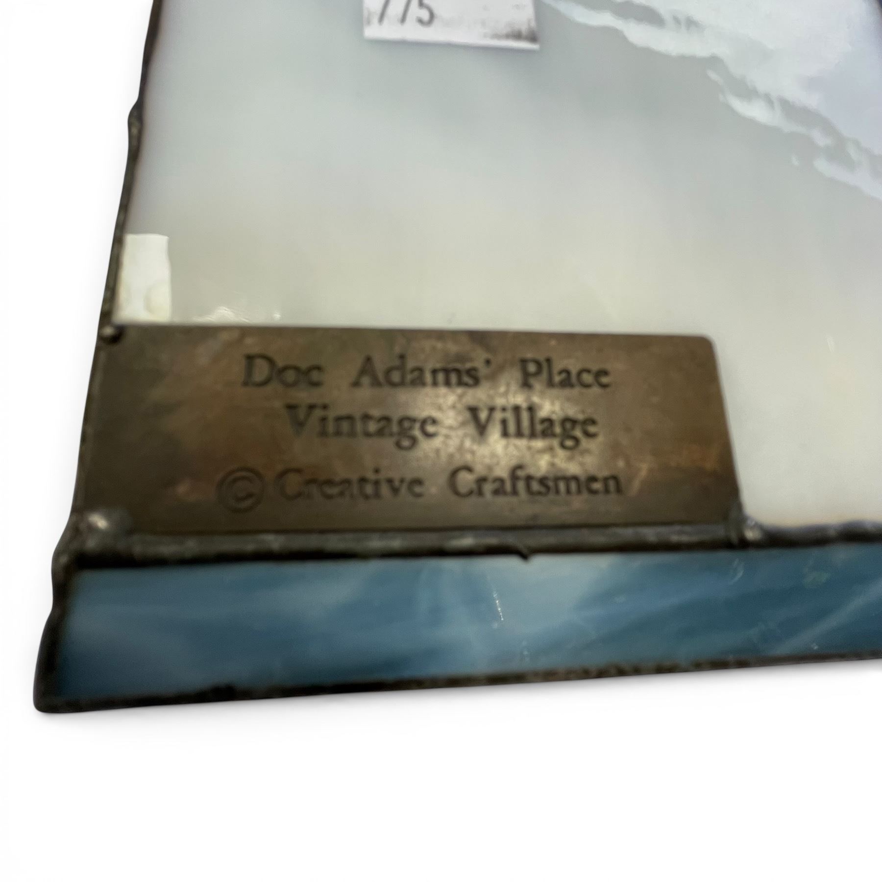 Doc Adams House stained glass piece handcrafted by Creative Craftsman. The item features vivid stained glass detailing and dimensions of 4.5-Inch length, 4-Inch width, and 7-Inch height. Designed as a decorative item, it can also function as a small lamp. Item is as pictured.