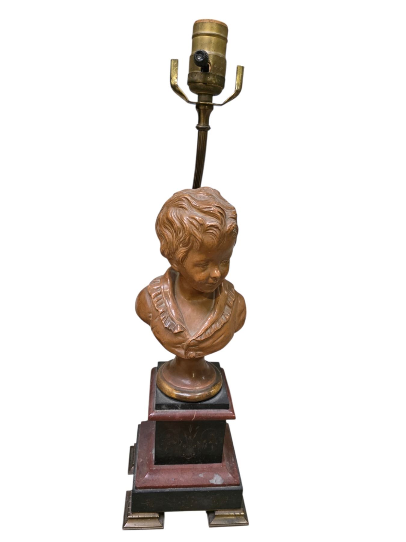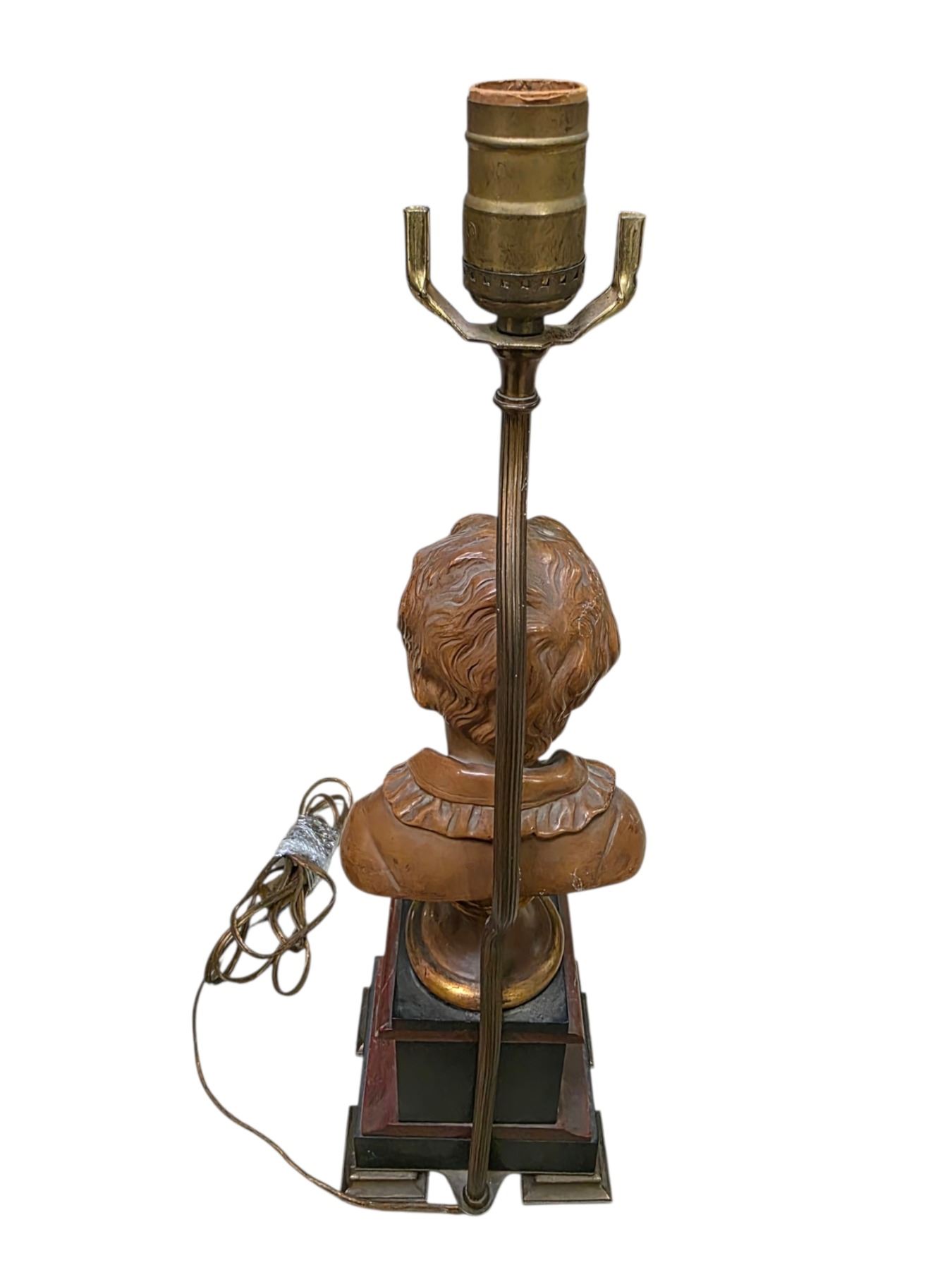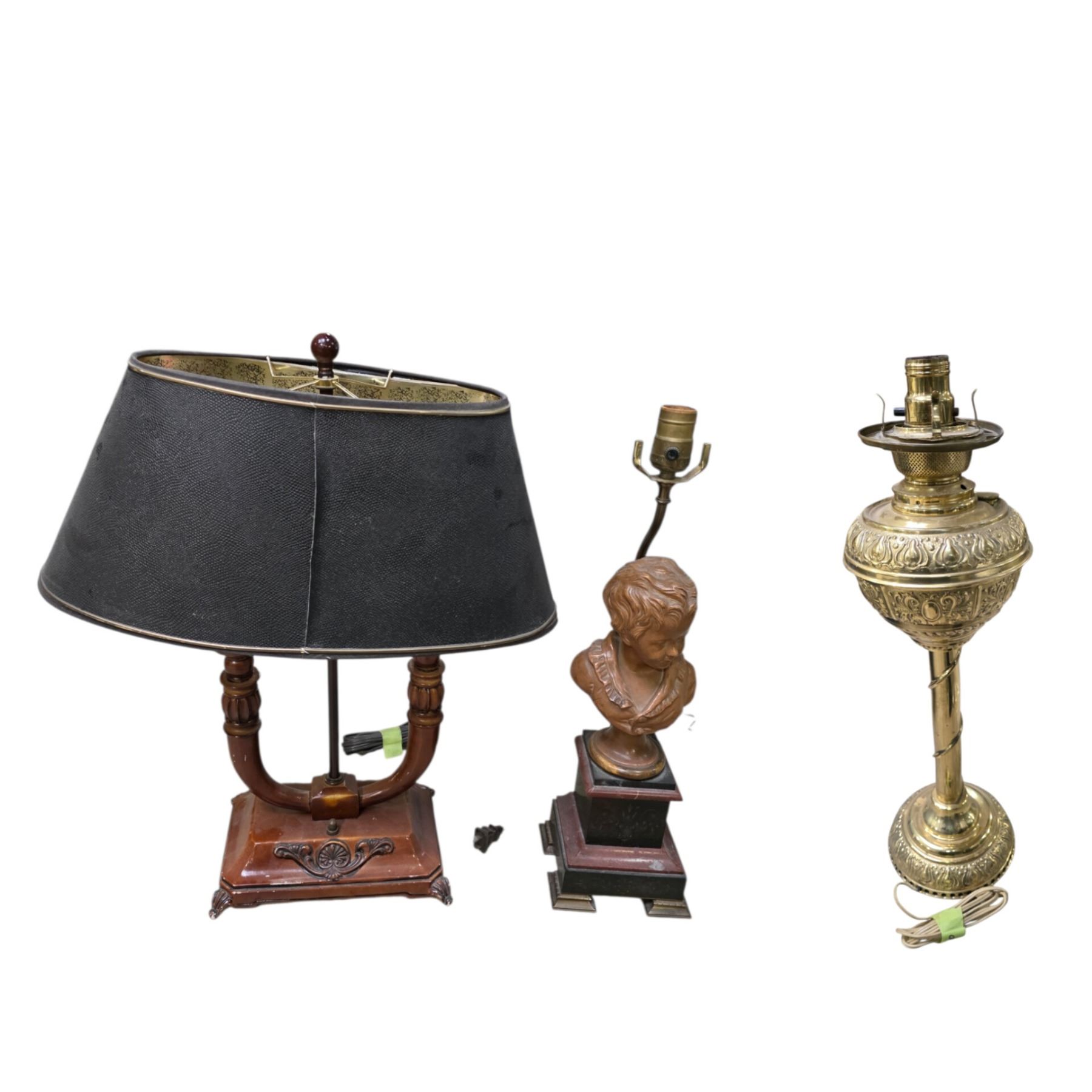 Double-Socket Desk Lamp, Gold-toned and Figural Cherub Bust Lamp Bases (untested)
