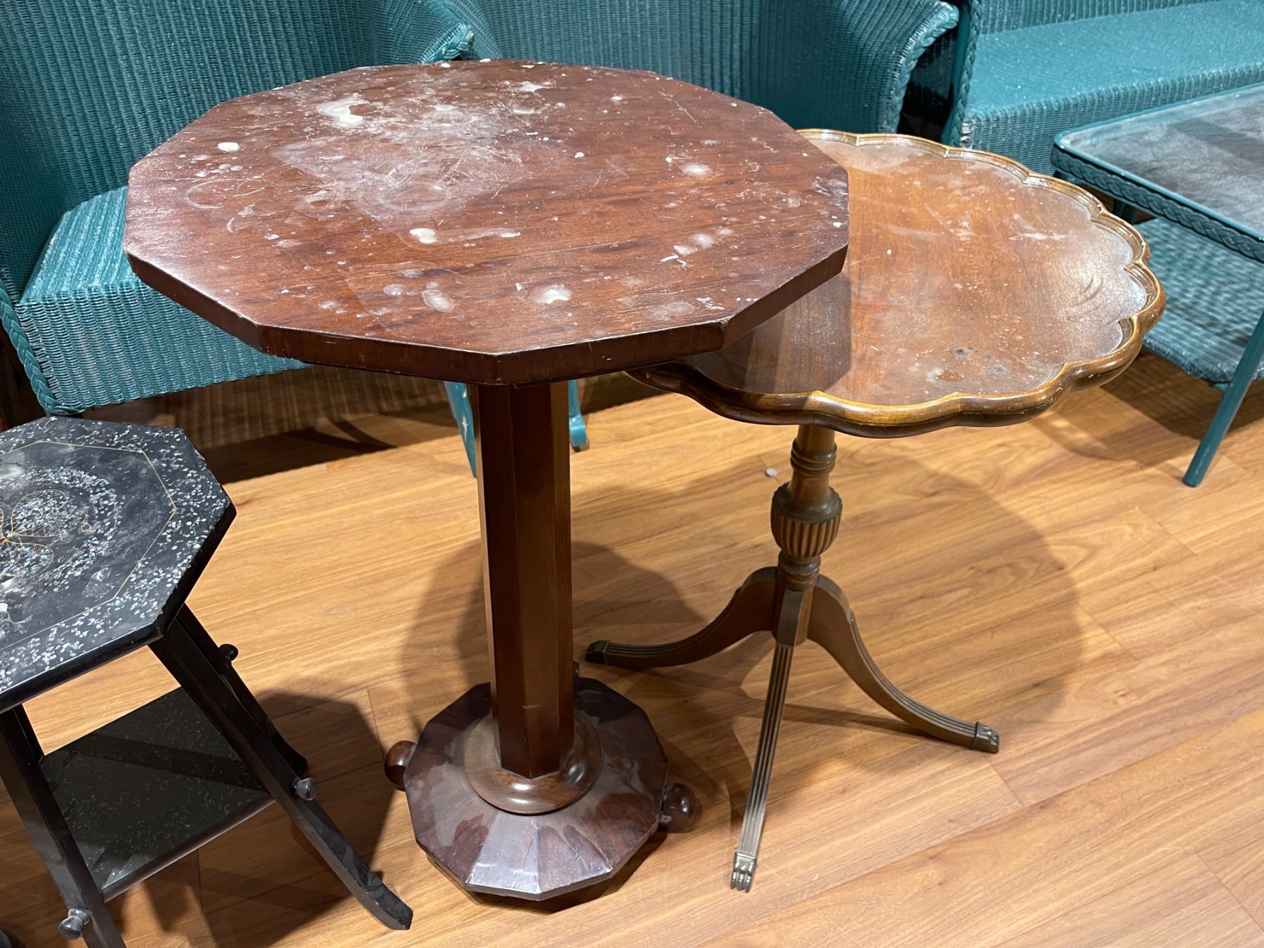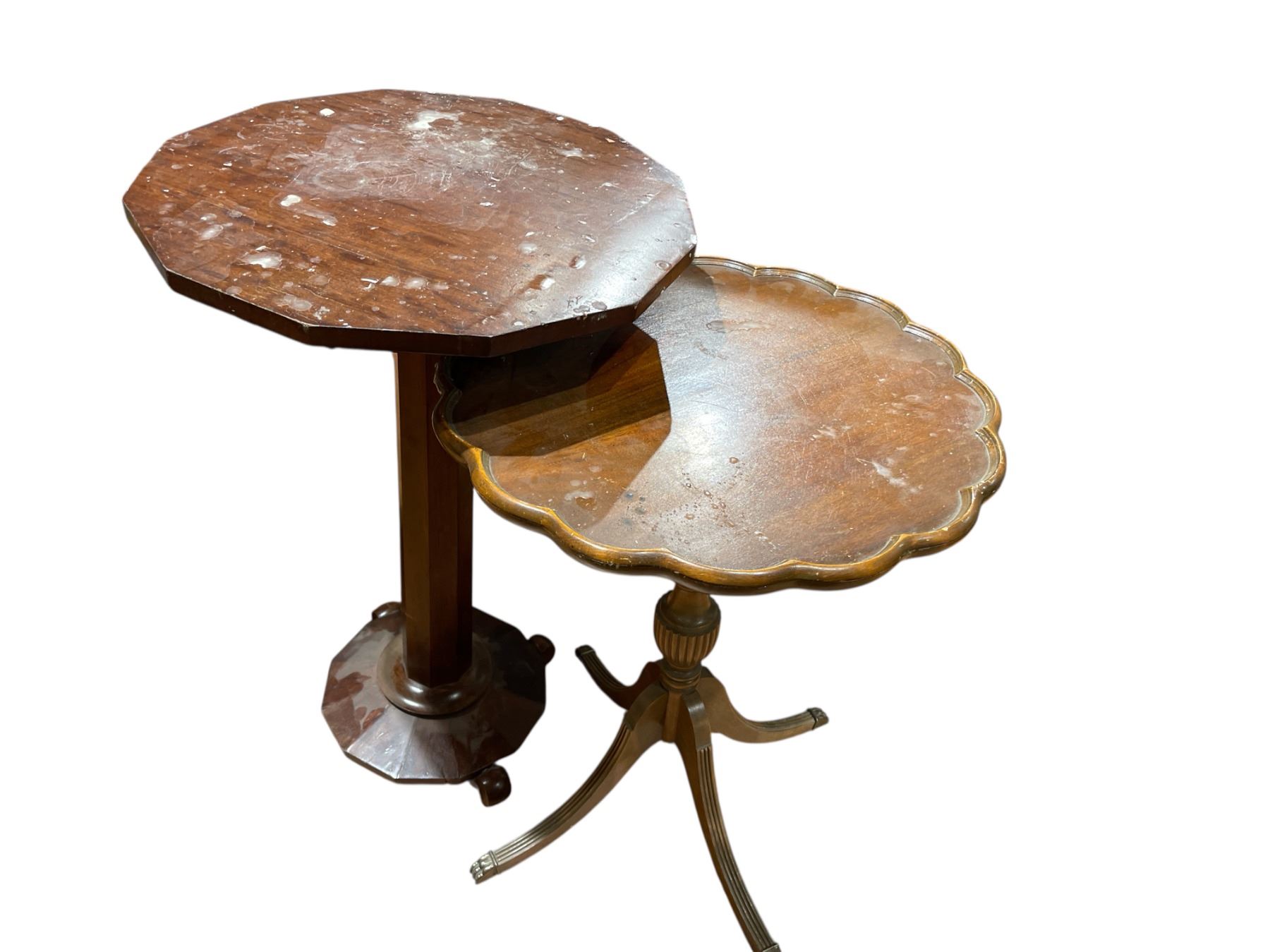 Duncan Phyfe Piecrust Accent Table & Mahogany Accent Table (Duncan Phyfe is 20" x 25" tall & Mahogany has damaged leg and is 26" tall x 20" diameter)