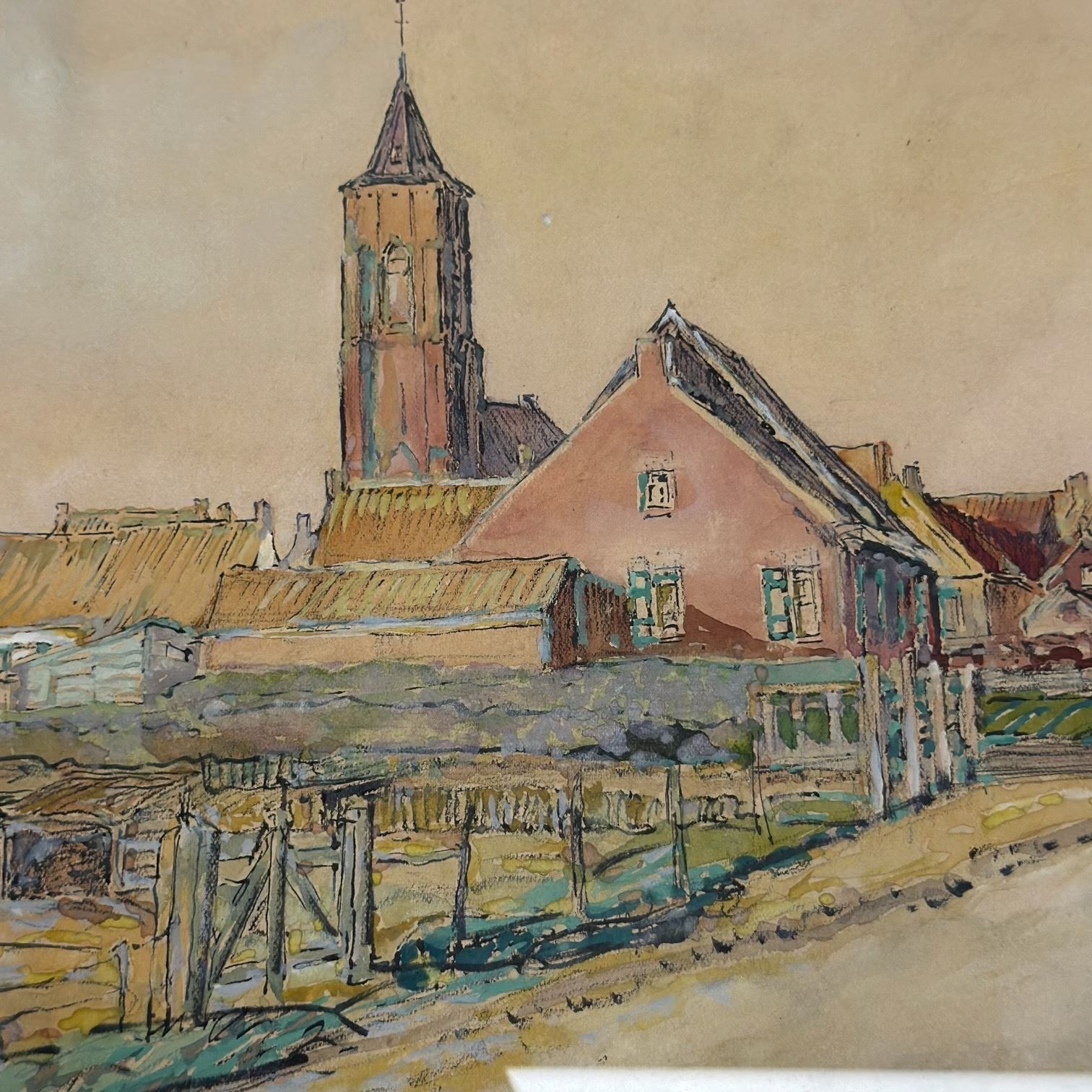 "Dutch Village Scene" Print by J. Frater (frame: 24" x 17")