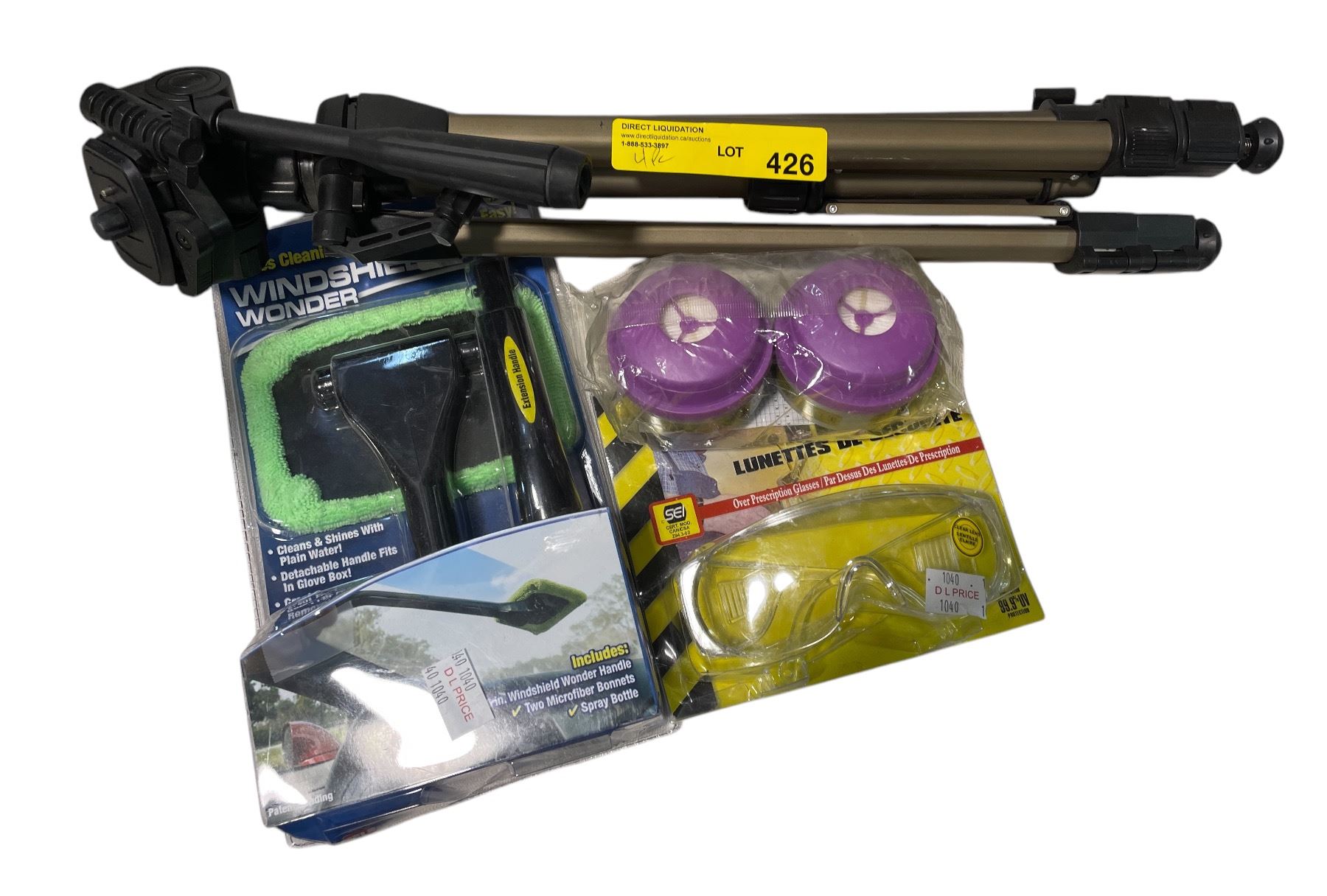 Dynex Tripod, Windshield Wonder, Safety Glasses & Honeywell Mask Filters