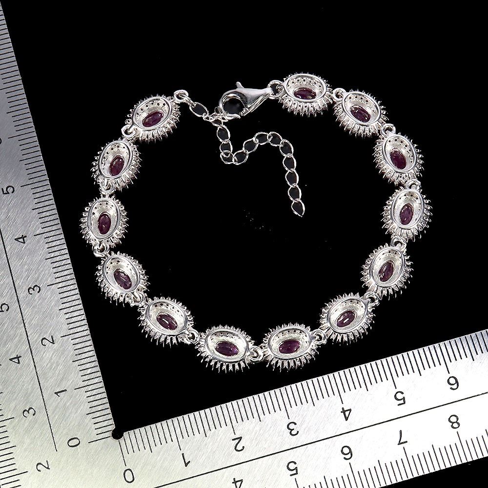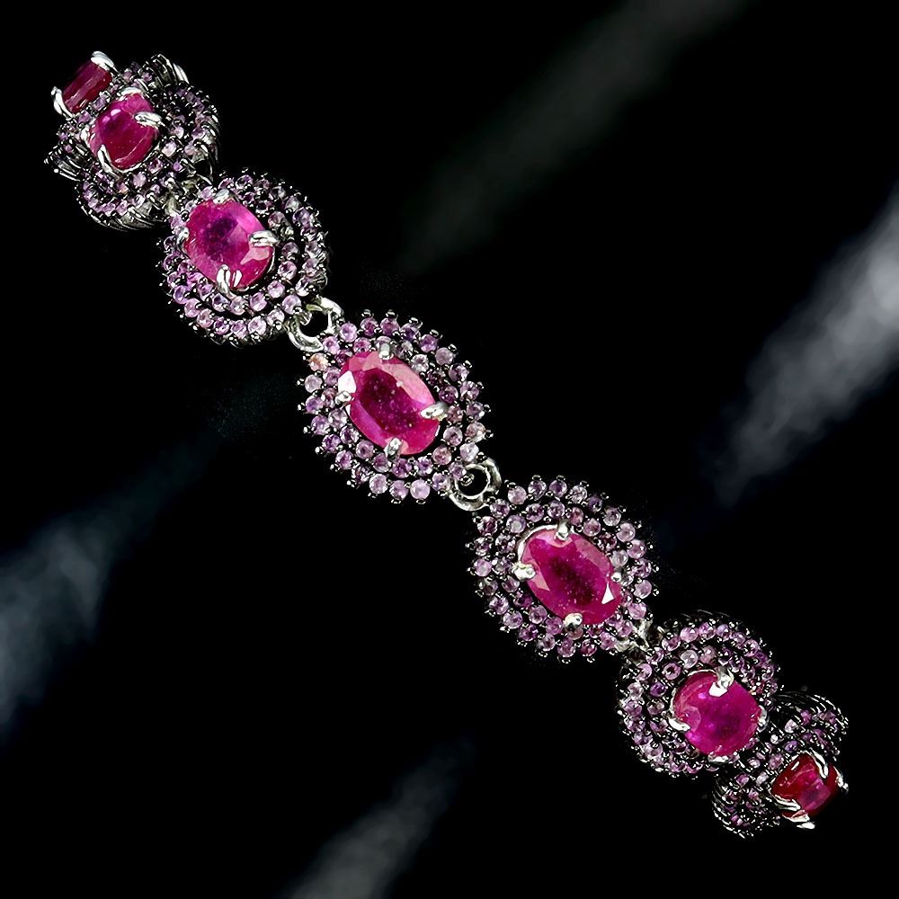 ELEGANT 6X4 OVAL CUT RUBY DIAMOND CUT AND SAPPHIRES BRACELET IN 2-TONE BLACK RHODIUM AND14K WHITE GOLD PLATED OVER 925 STERLING SILVER - 8.5 INCHES LENGTH - APPRAISED REPLACEMENT VALUE CAD 3,850