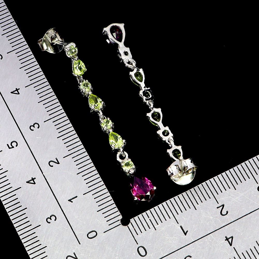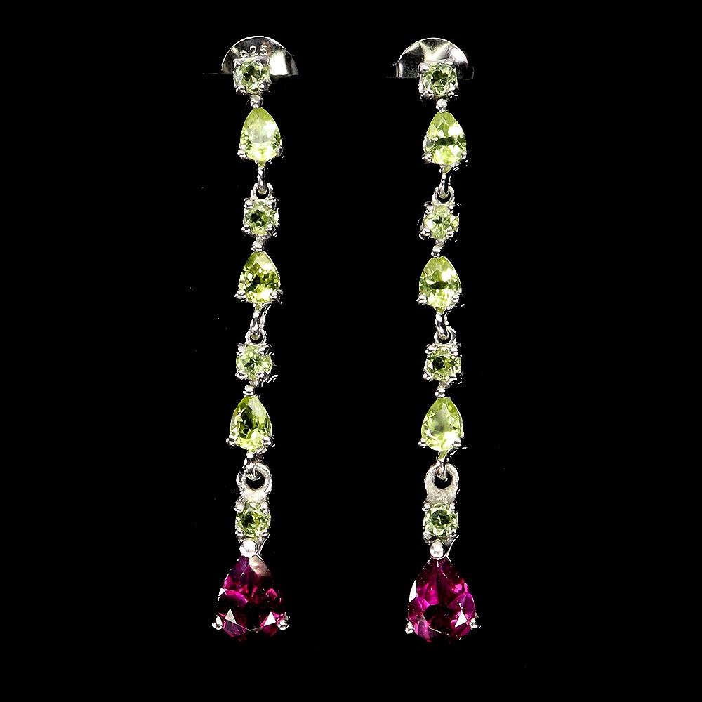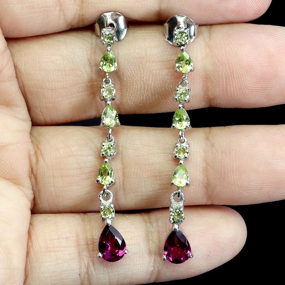 ELEGANT PERIDOT AND RHODOLITE GARNET EARRINGS IN 14K WHITE PLATED GOLD OVER 925 STERLING SILVER - APPRAISED REPLACEMENT VALUE CAD 720