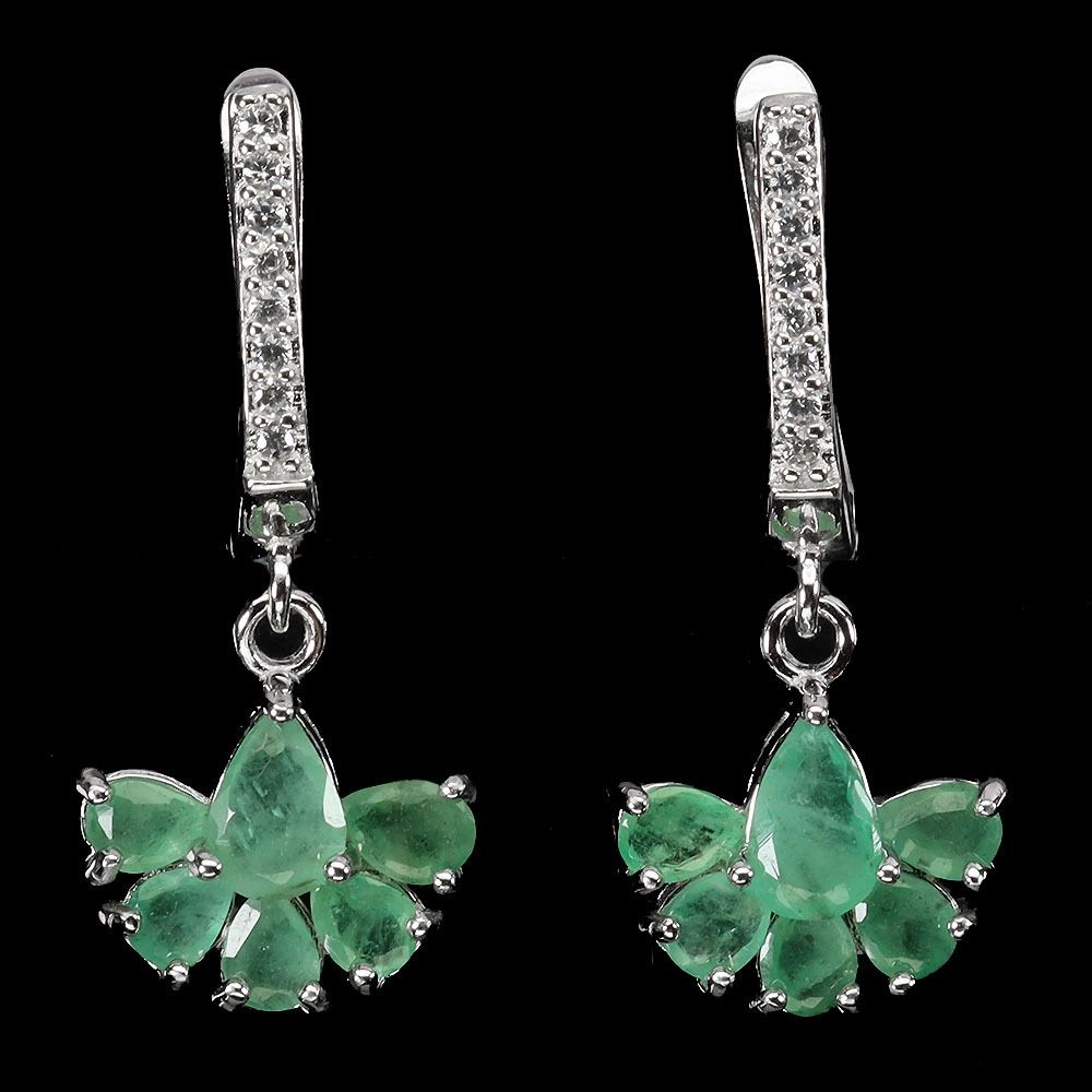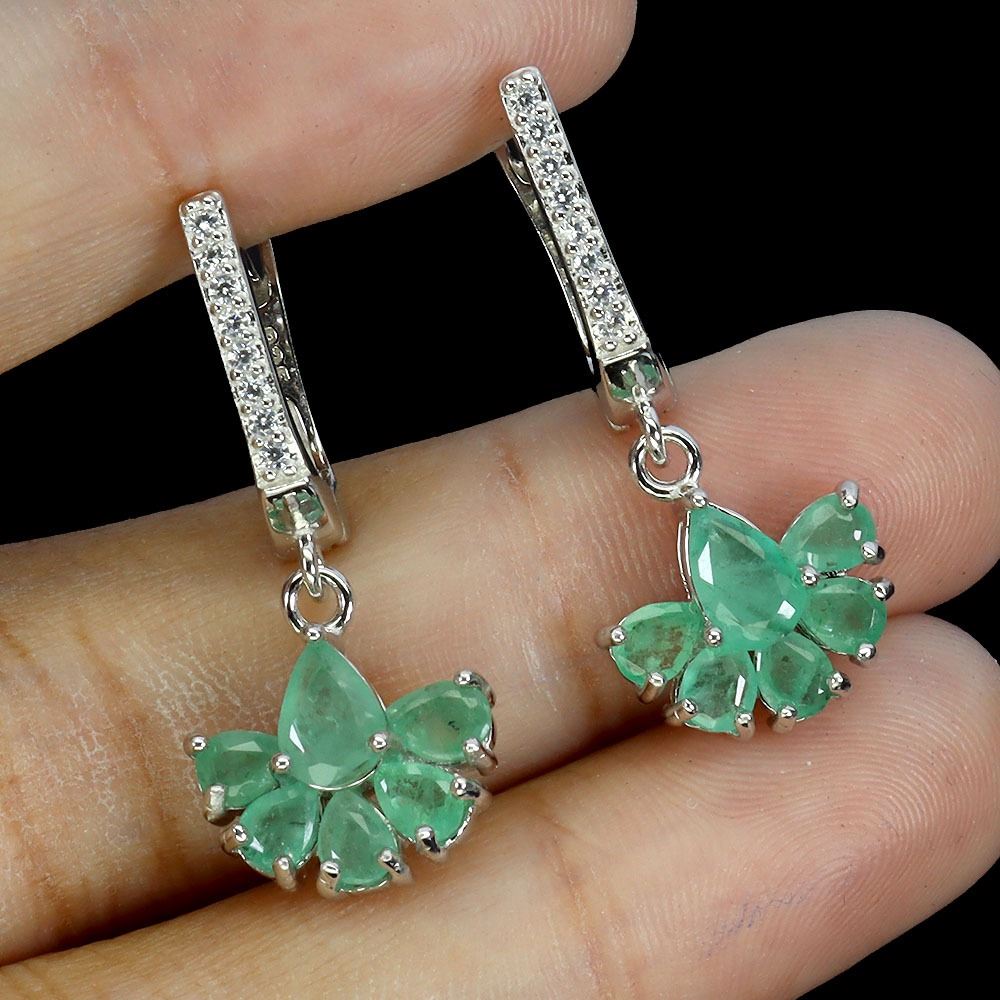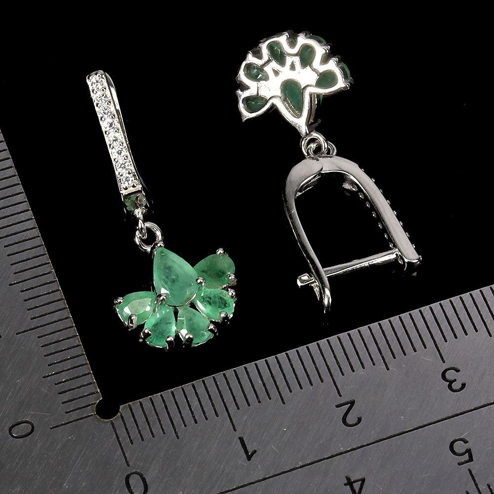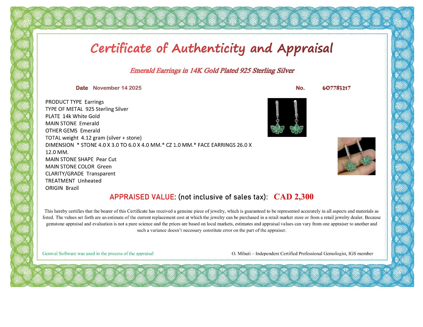 EMERALD EARRINGS IN 14K WHITE PLATED GOLD OVER 925 STERLING SILVER - APPRAISED REPLACEMENT VALUE $ 2,300