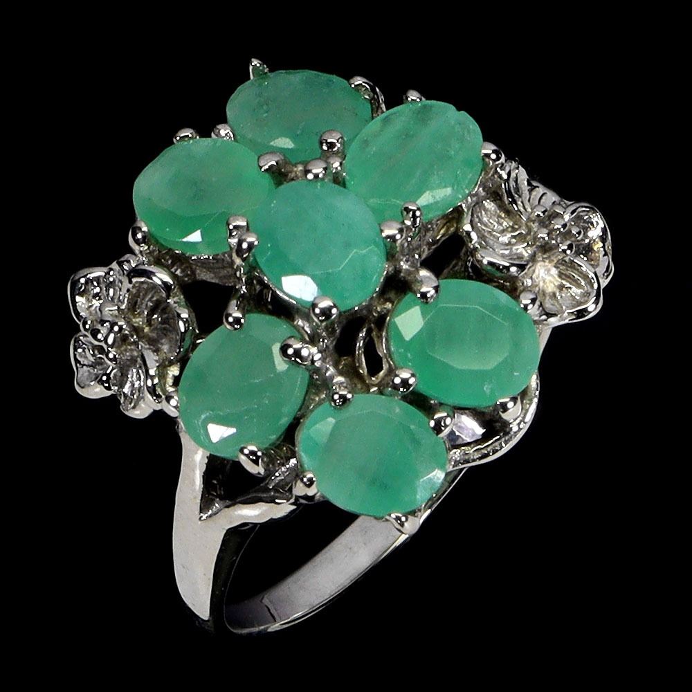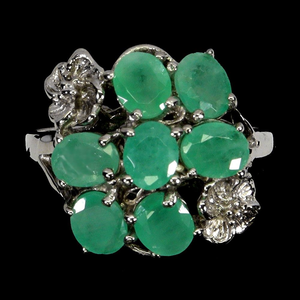 EMERALD RING IN 14K WHITE GOLD PLATED OVER 925 STERLING SILVER - SIZE 8 - APPRAISED REPLACEMENT VALUE CAD 1,150