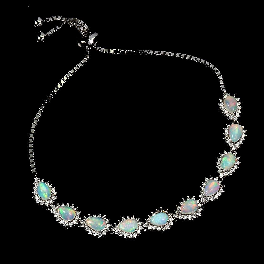 EXCEPTIONAL 6X4 mm FIRE OPAL BRACELET IN 14K WHITE PLATED GOLD OVER 925 STERLING SILVER - APPRAISED REPLACEMENT VALUE CAD 1,880