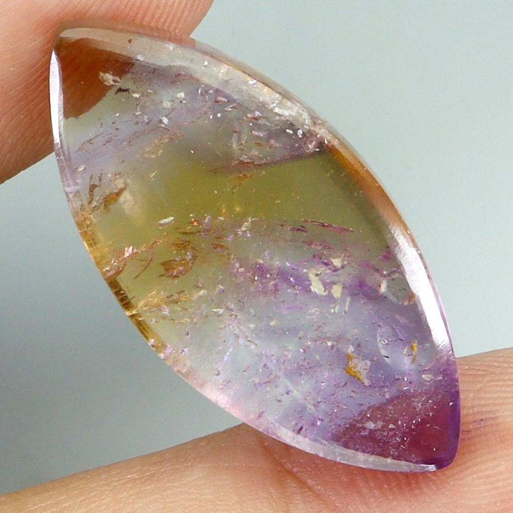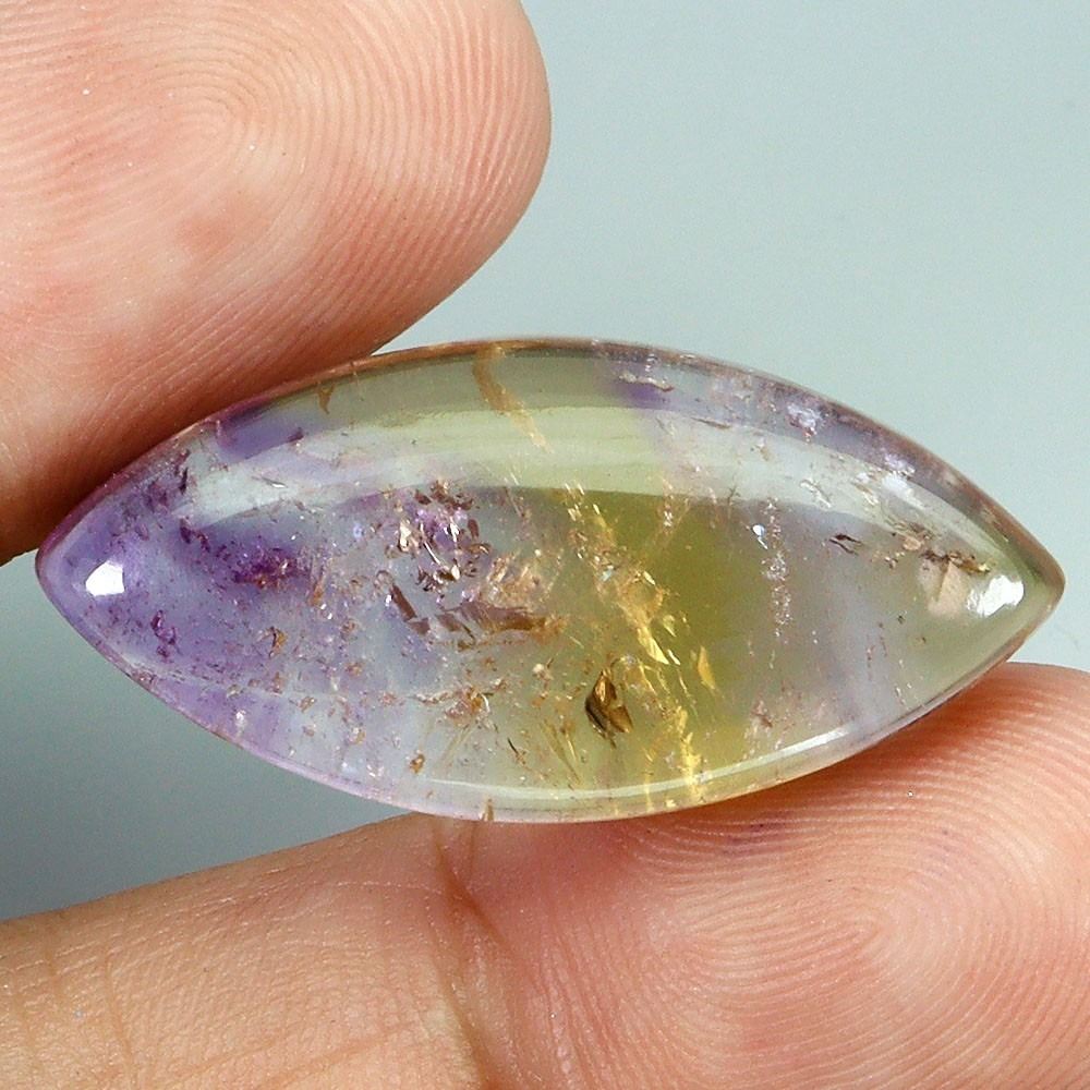 EXCEPTIONAL BIG 26.31 CARATS MARQUISE CUT CABOCHON PURPLE/YELLOW AMETRINE (AMETHYST & CITRINE) FROM BRAZIL 30X15 mm - APPRAISED REPLACEMENT VALUE CAD 370