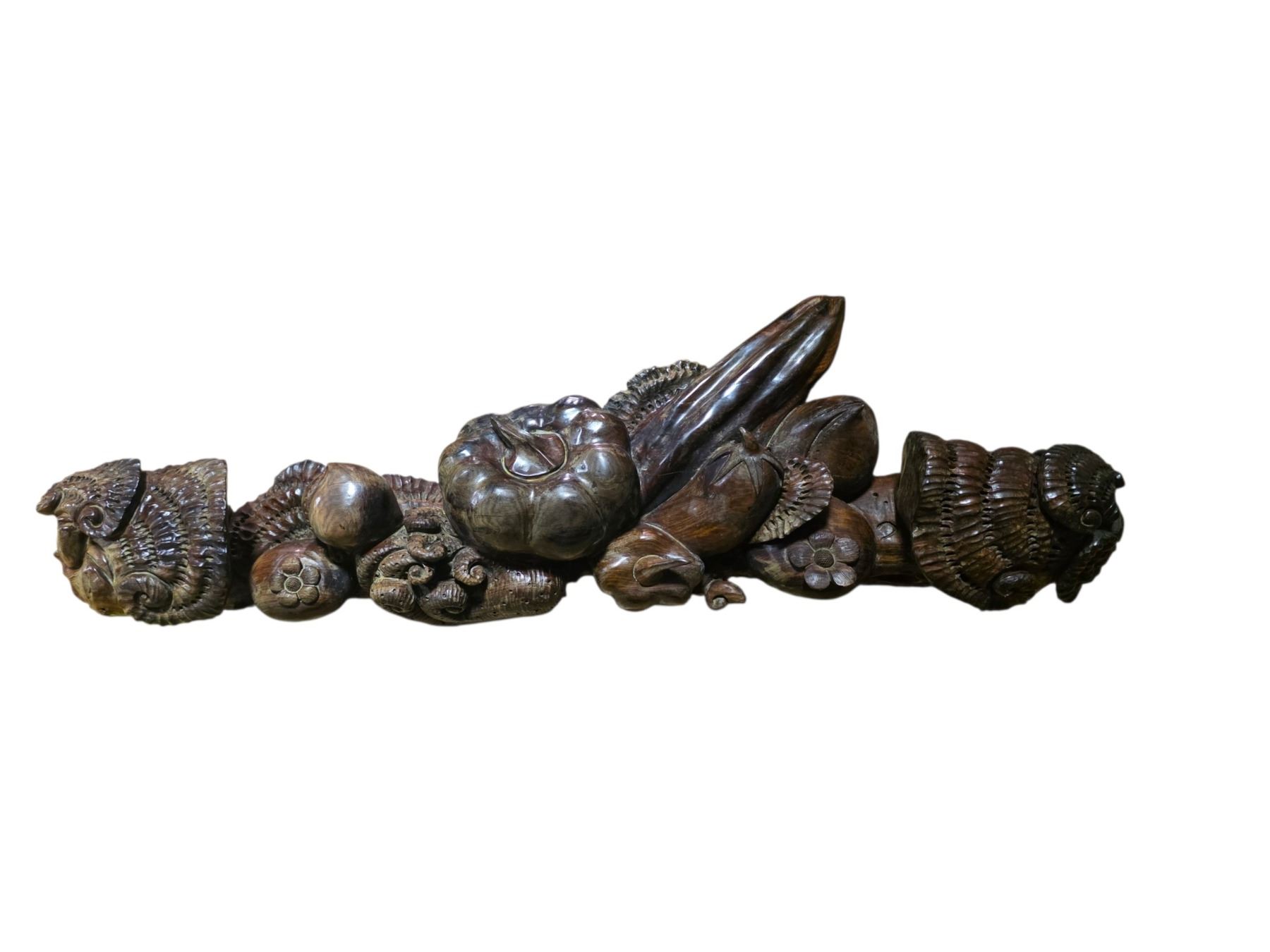 Early 20's Wood hand Carved Fruits Urn Sculpture - approx. 3ft long