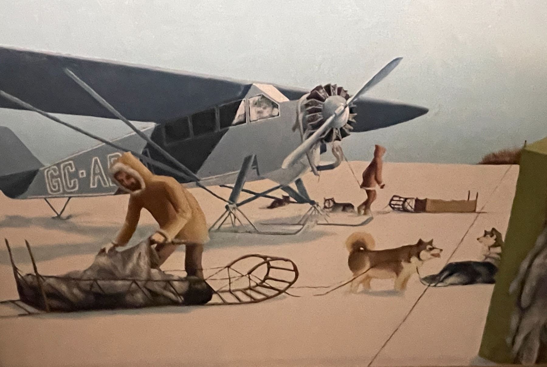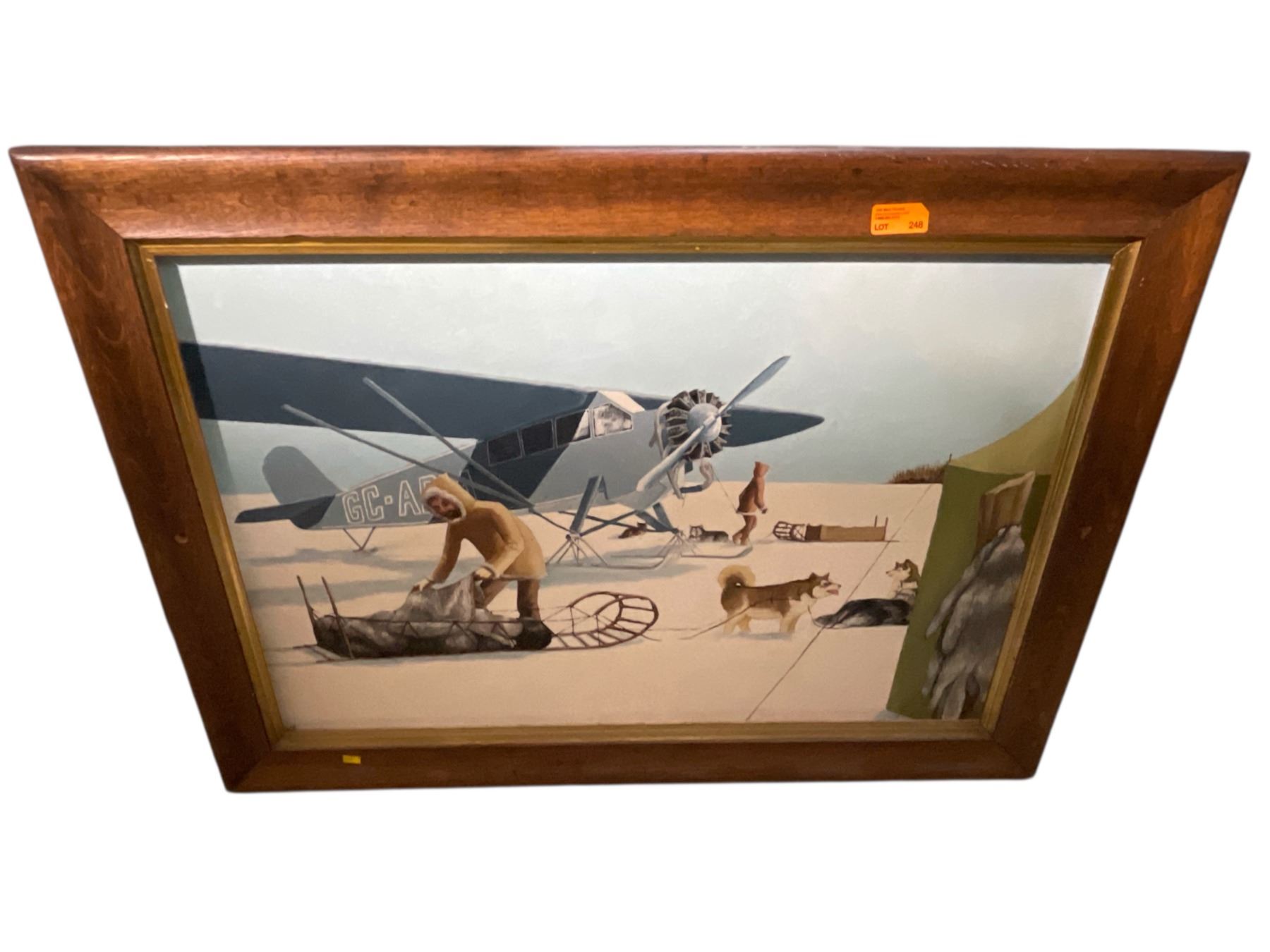 Early Aviation Scene, Oil on Canvas, Hung in the 1970s Vancouver "Air Affair" Restaurant, H30.5" x W41.5" with Frame