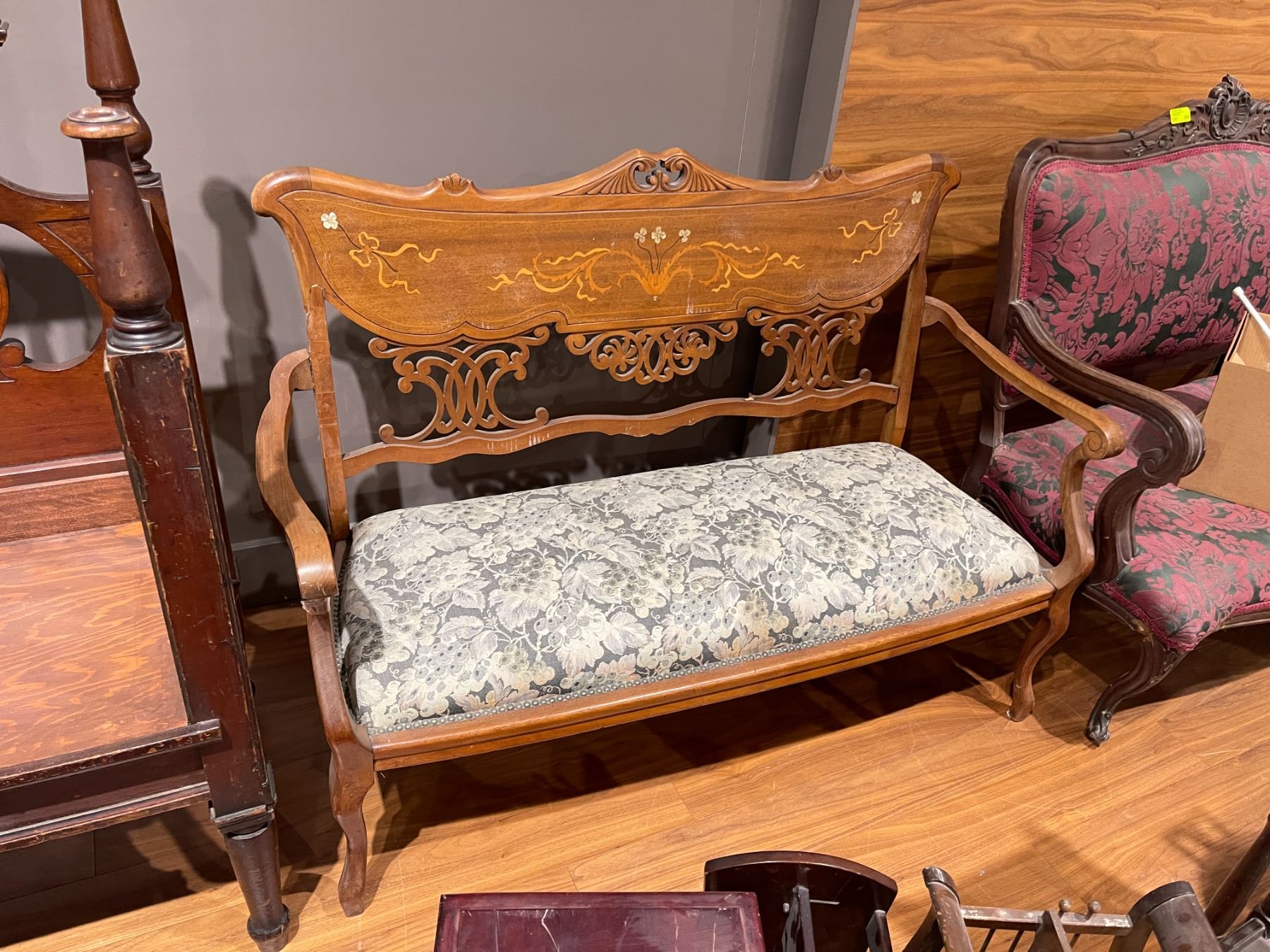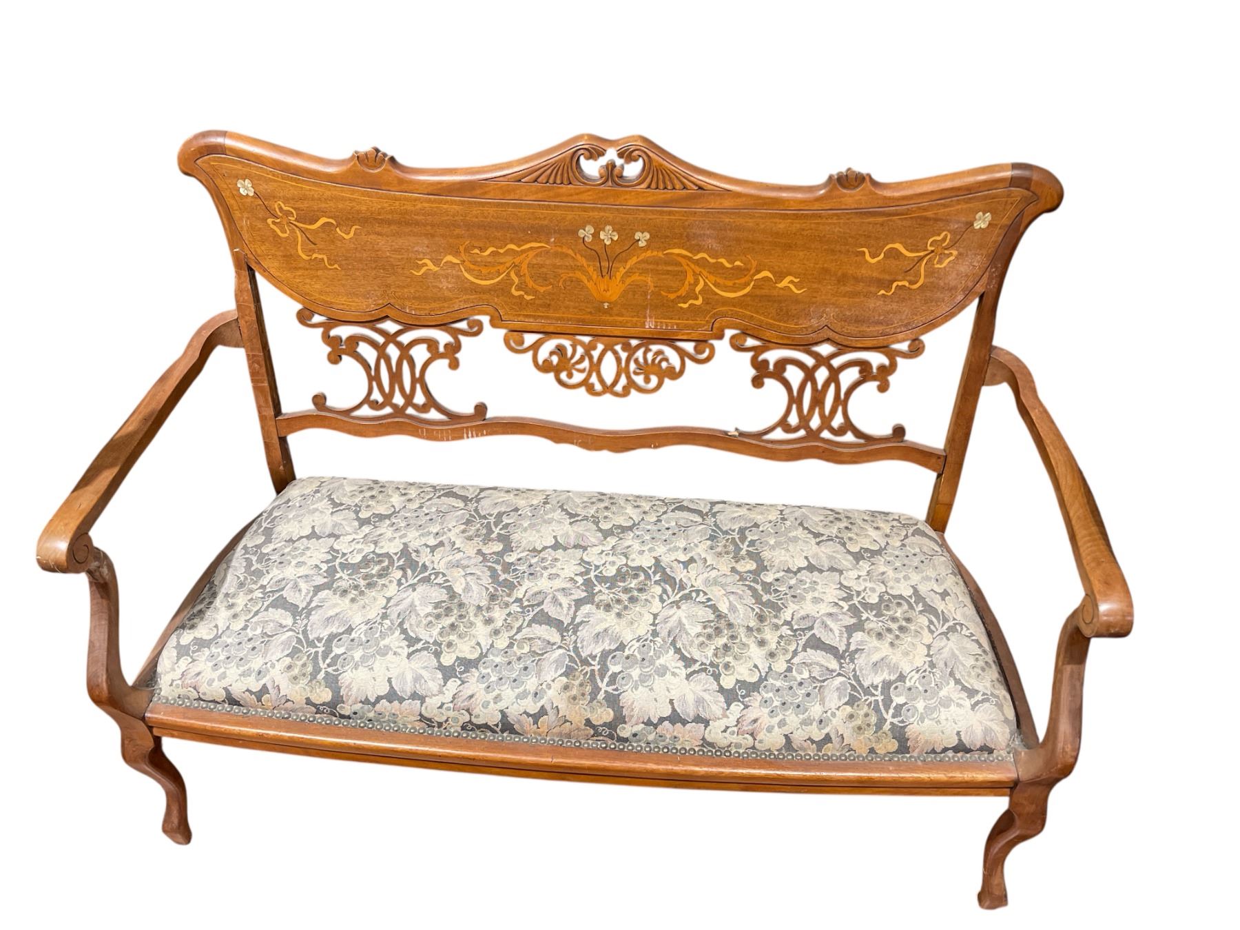 Edwardian Sette with Floral Marquetry Inlay * Some minor repairs (20" x 20" x 50" x 36" tall at the back)