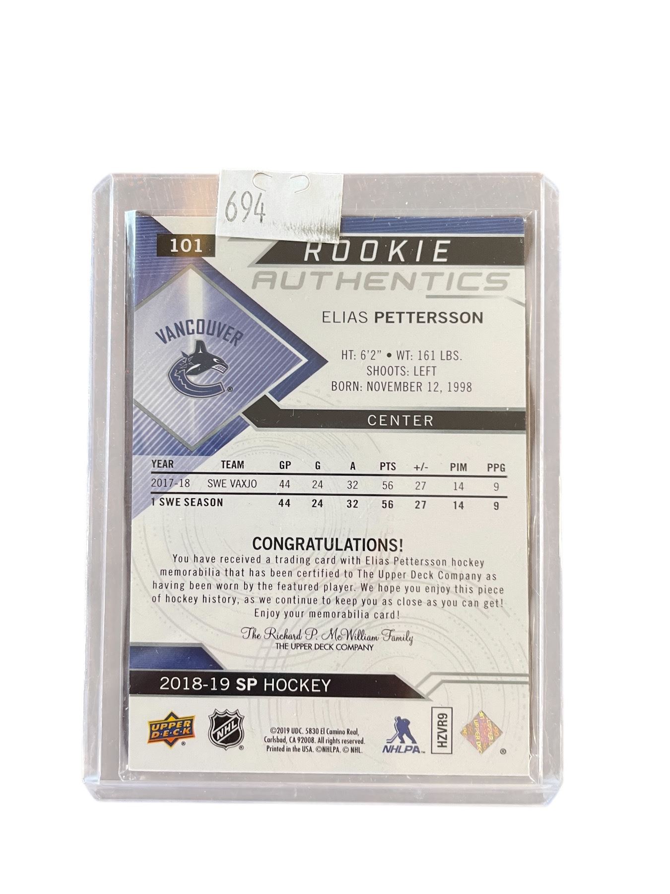 Elias Petterson 2019 Upper Deck Jersey Patch Hockey Card