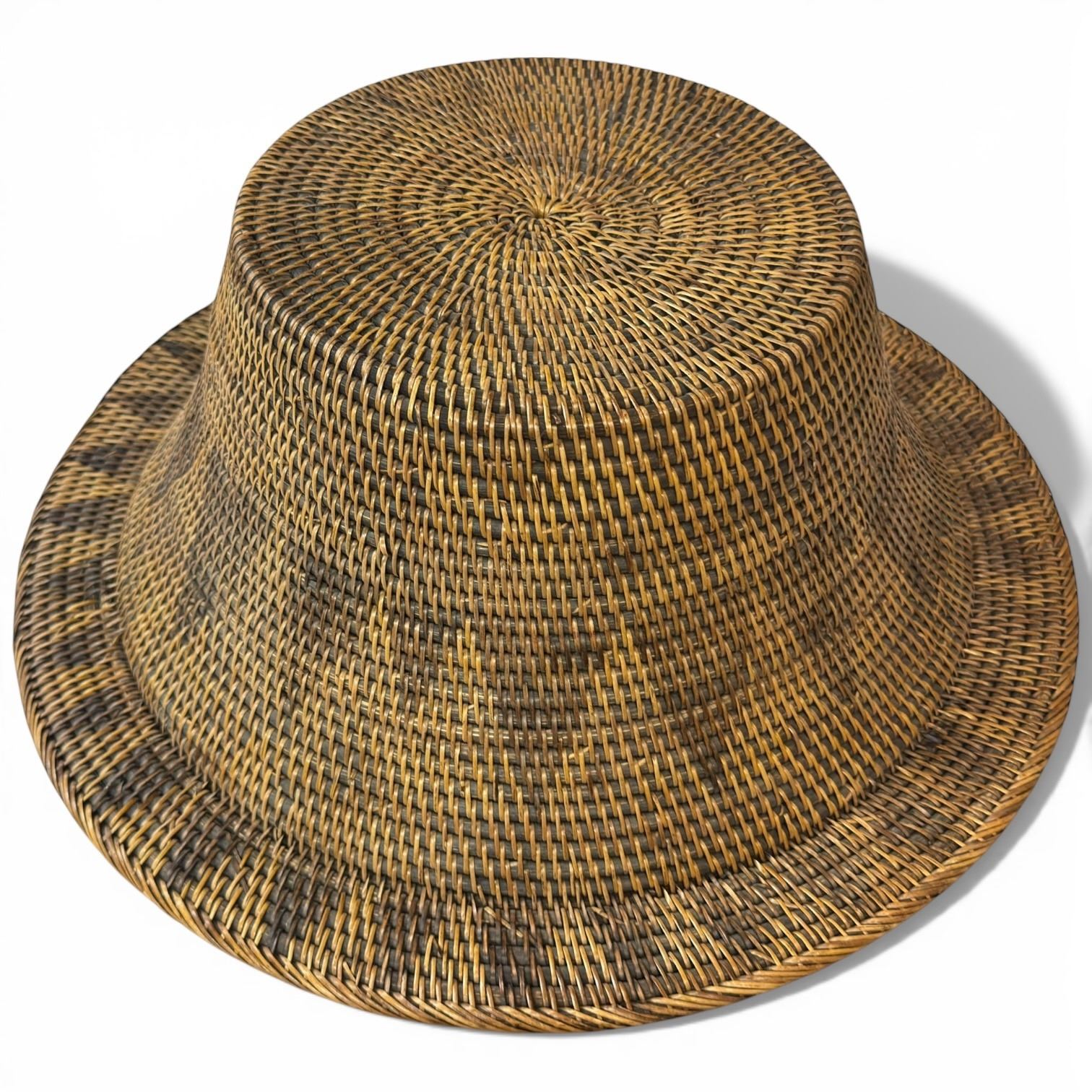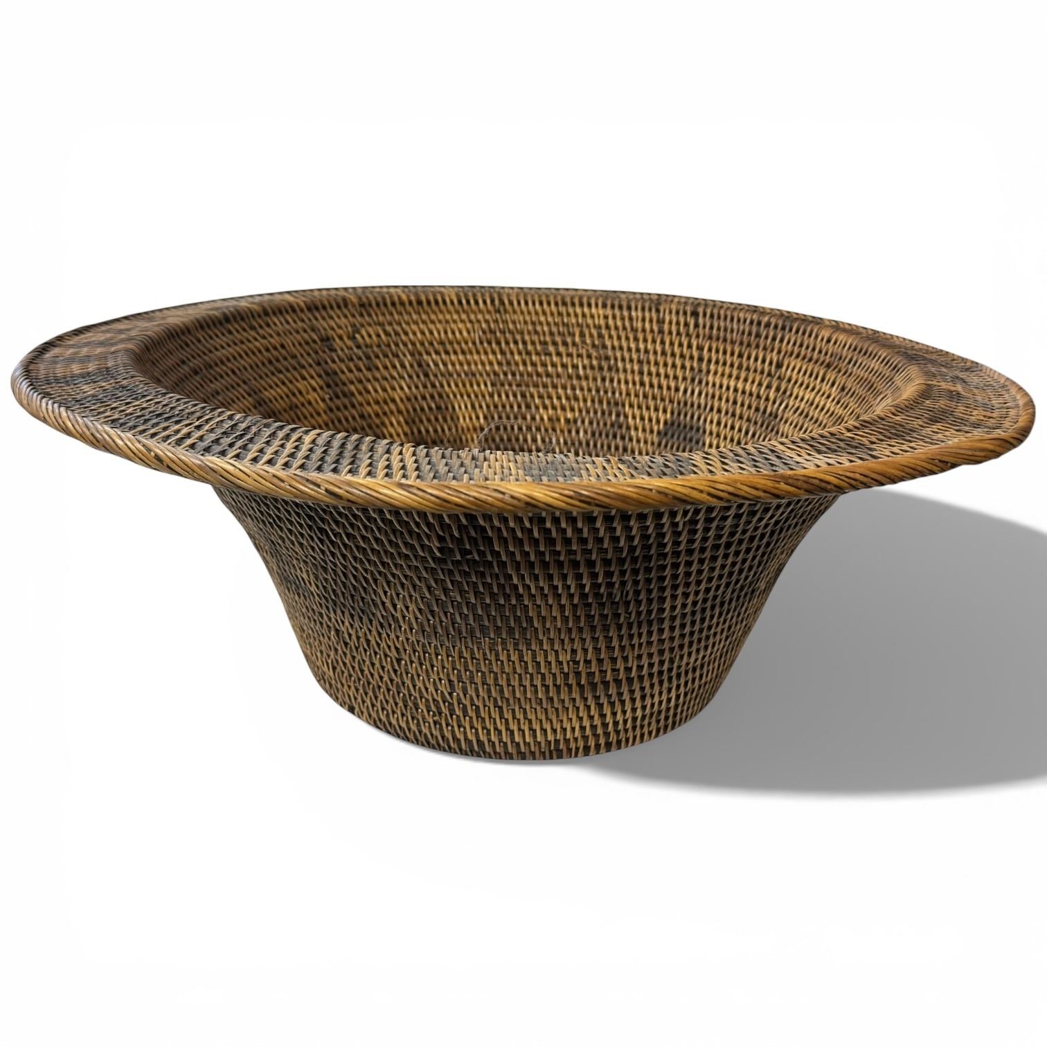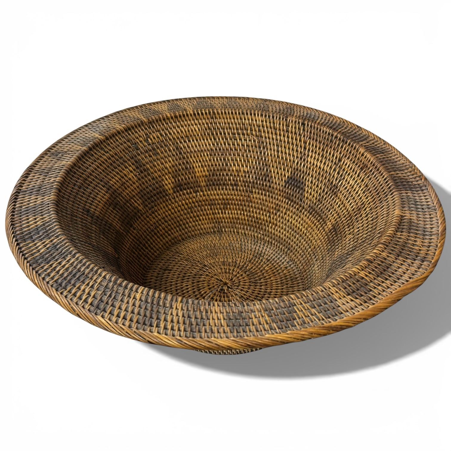 Ethnic Design Woven Rattan & Wicker Basket with a Round Body and Wide Brim (9" deep, 21" wide at the brim & 13" wide at the base)