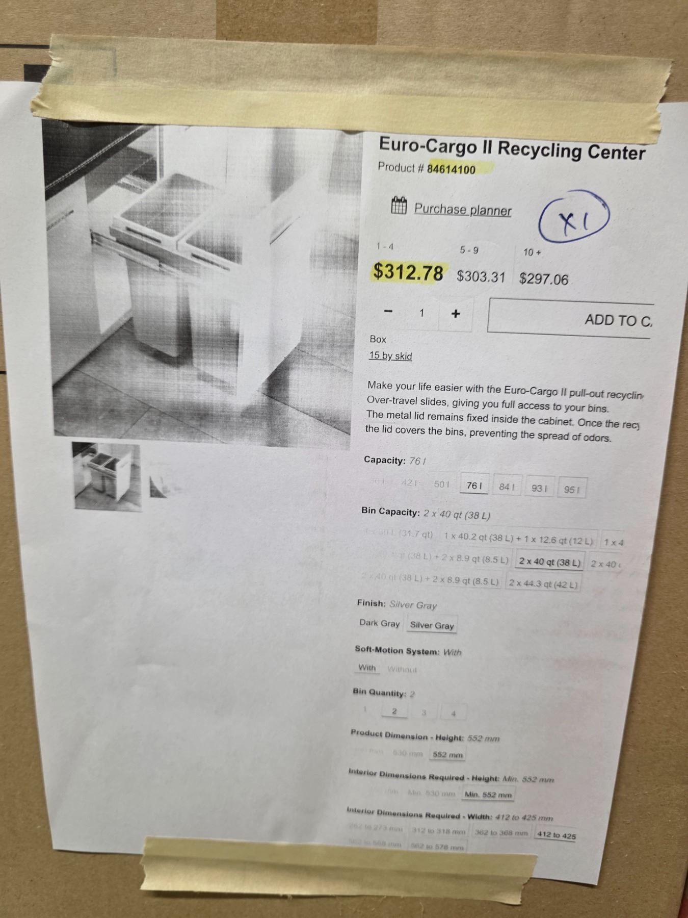Euro-Cargo under cabinet recycling center (Double Bin) - Wholesale Value: $310