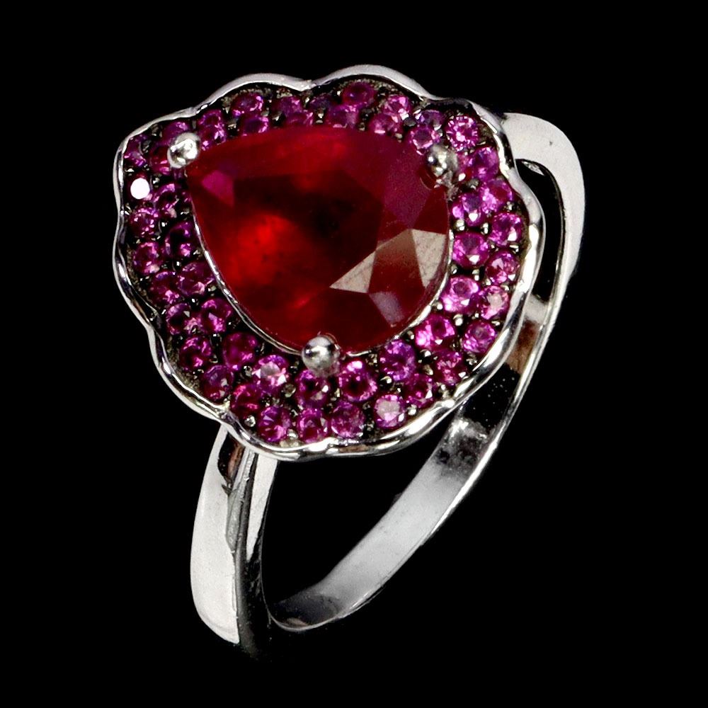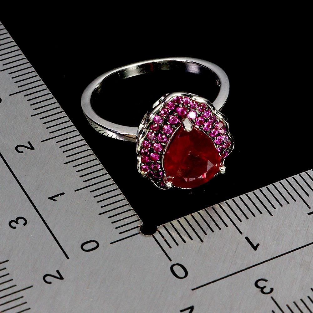 FANTASTIC 9X7 mm RUBY AND PINK SAPPHIRE RING IN 14K WHITE GOLD PLATED OVER 925 STERLING SILVER - SIZE 7 - APPRAISED REPLACEMENT VALUE CAD 780