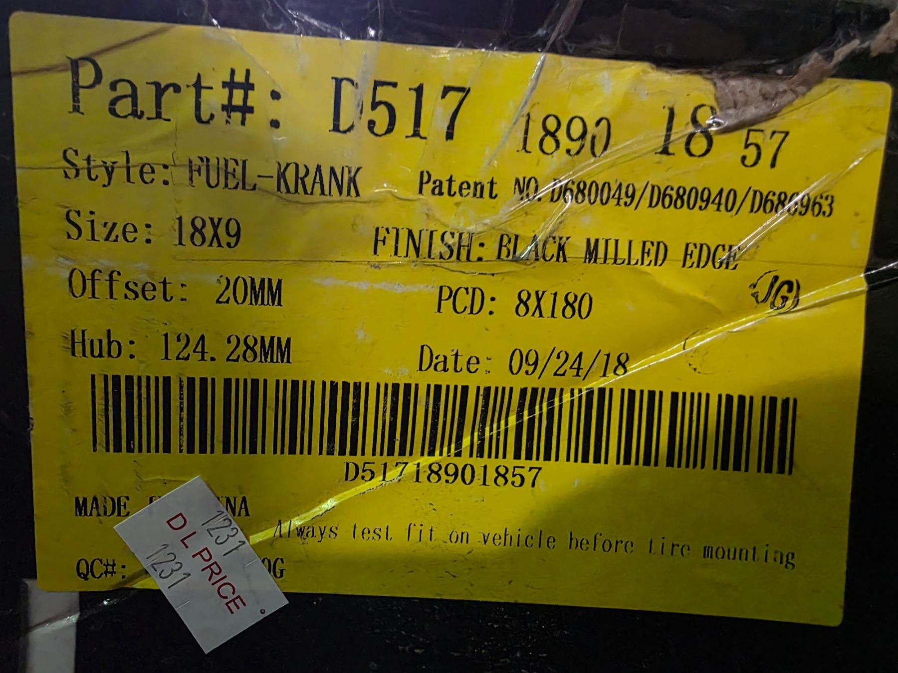 FUEL Off-Road “Kranks†Wheel Rim - 18x9 Black Milled Edge