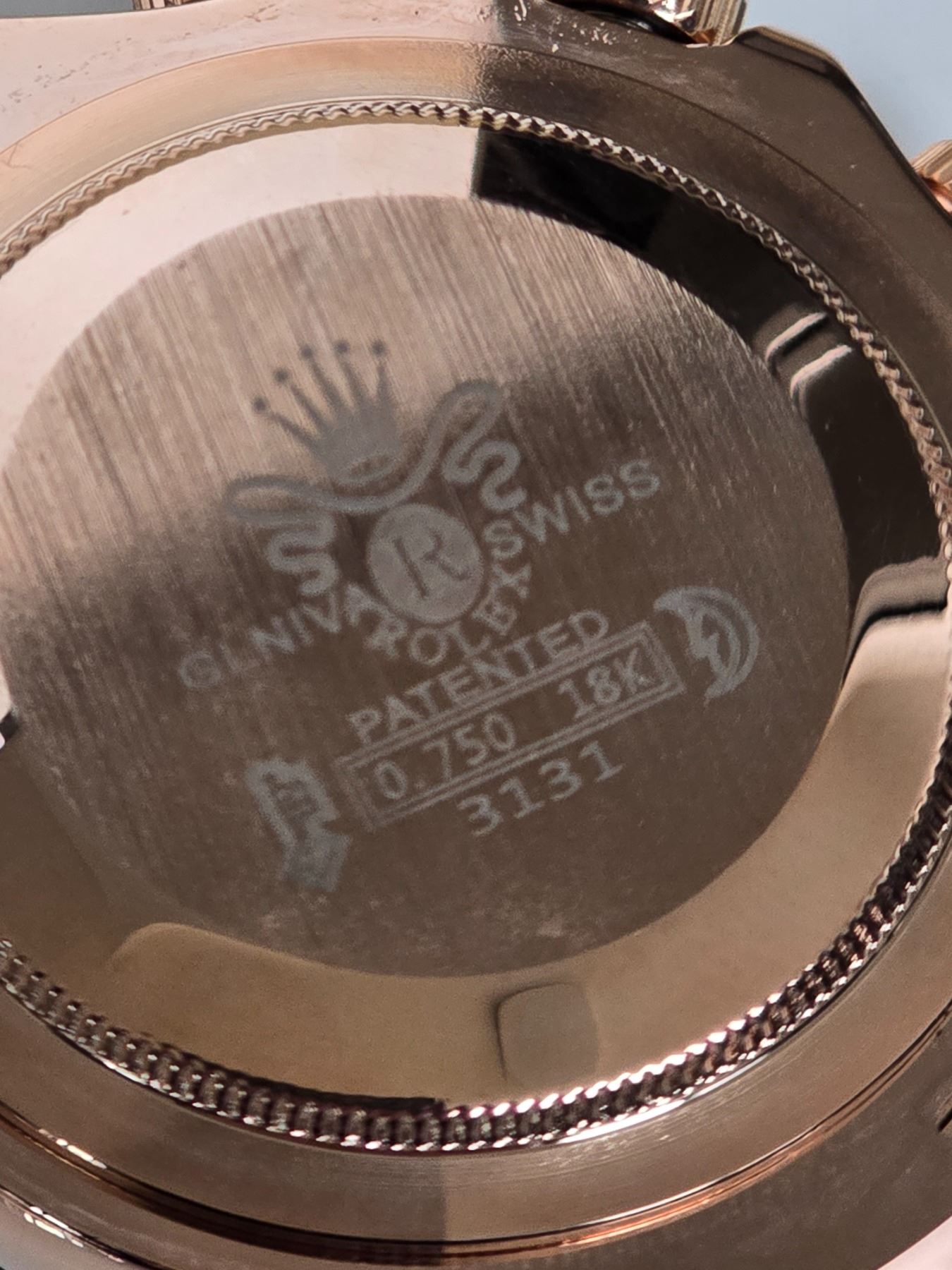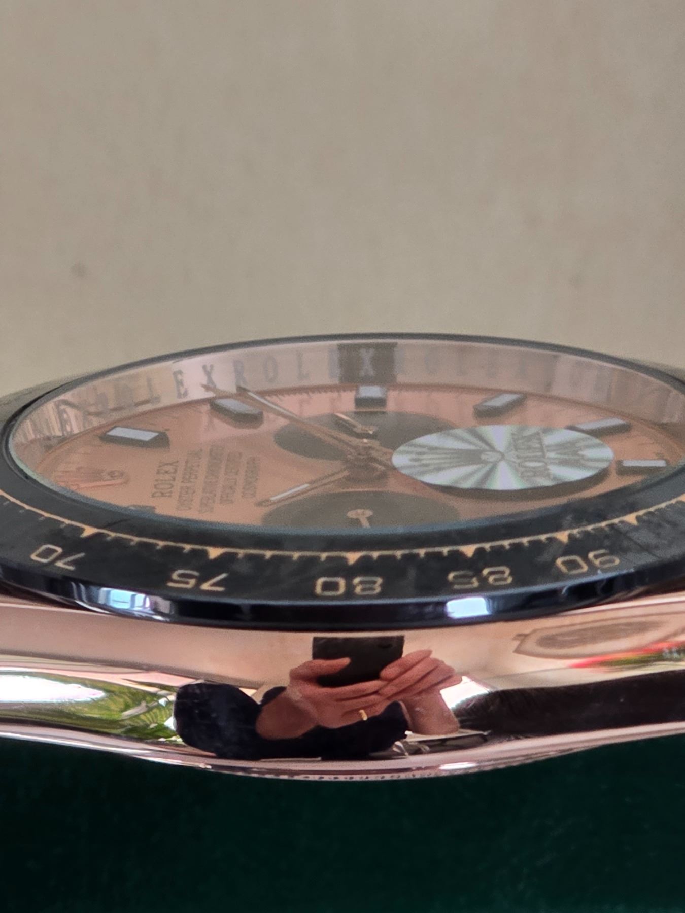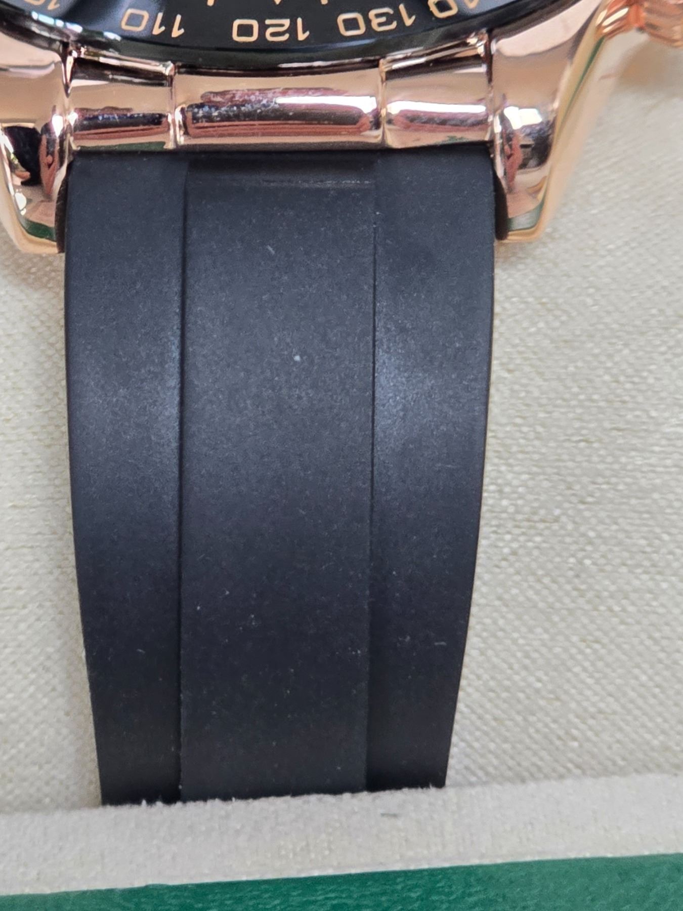 FULLY AUTOMATIC BRAND NEW ROLEX DAYTONA REF# 116523 40 MM HIGH END AAA REPLICA WATCH. EVEROSE GOLD DIAL, WITH BLACK SUB-DIALS, BLACK BEZEL. EVEROSE GOLD CASE AND CROWN. BLACK OYSTERFLEX BRACELET. FULL SET WITH BOX, PAPERS AND BAG.