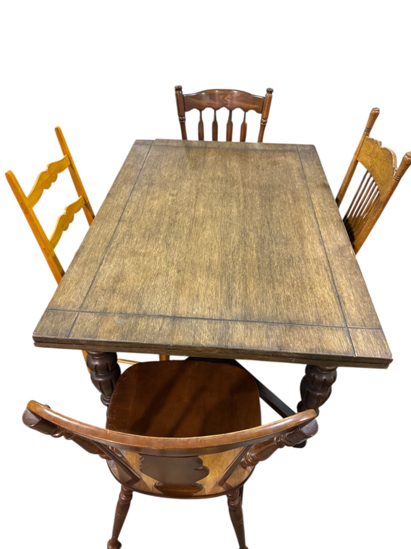 Farmhouse Vintage Mid-Century Solid Wood Dining Table - includes 4 Vintage Chairs (approx. 38" x 56")