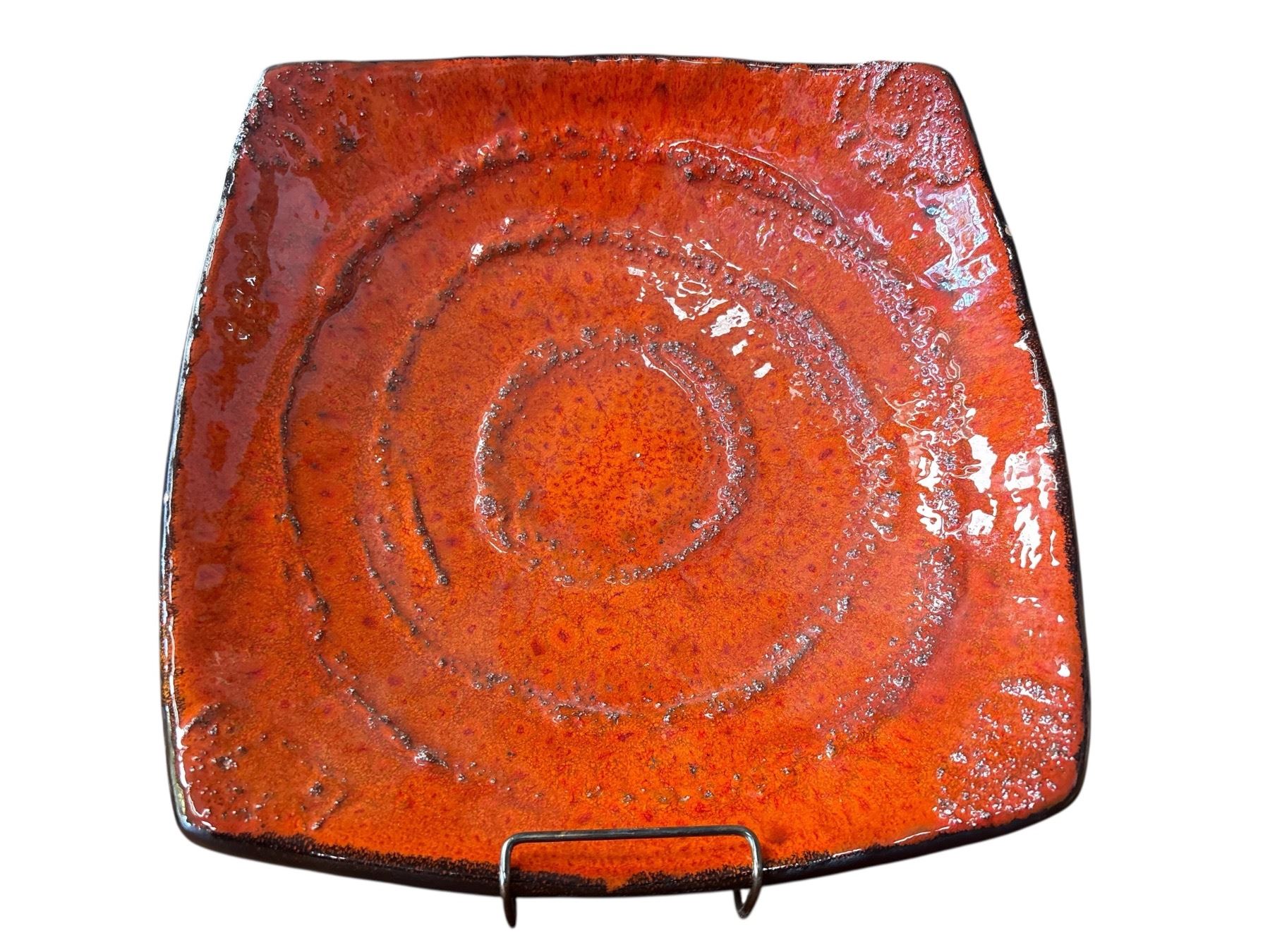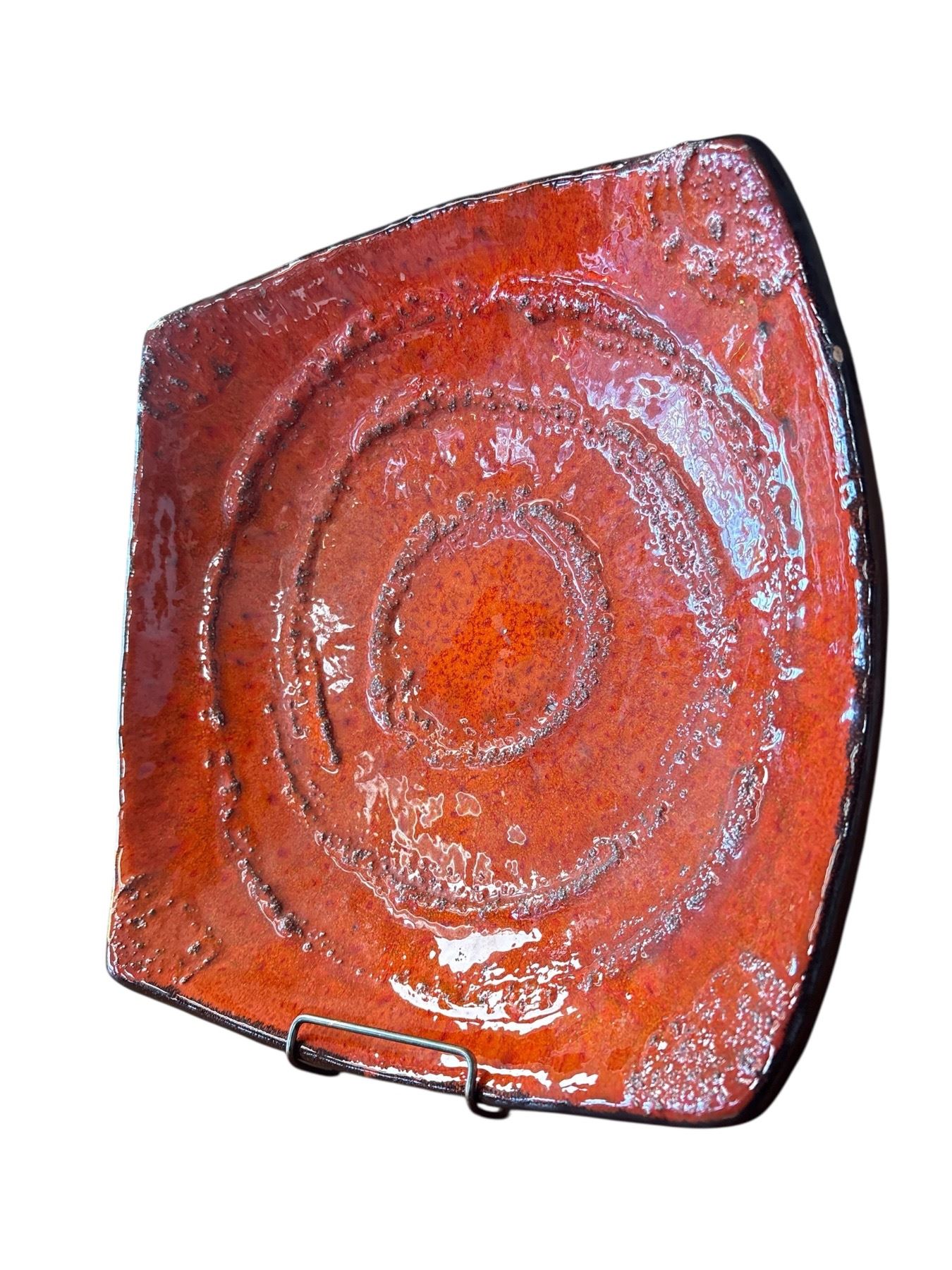 Fat Lava bowl made from studio pottery with striking texture and finish. Measures 12x12 inches. Characteristic volcanic glaze associated with mid-century design. Known for visually captivating forms and bold colors. Item is as pictured.