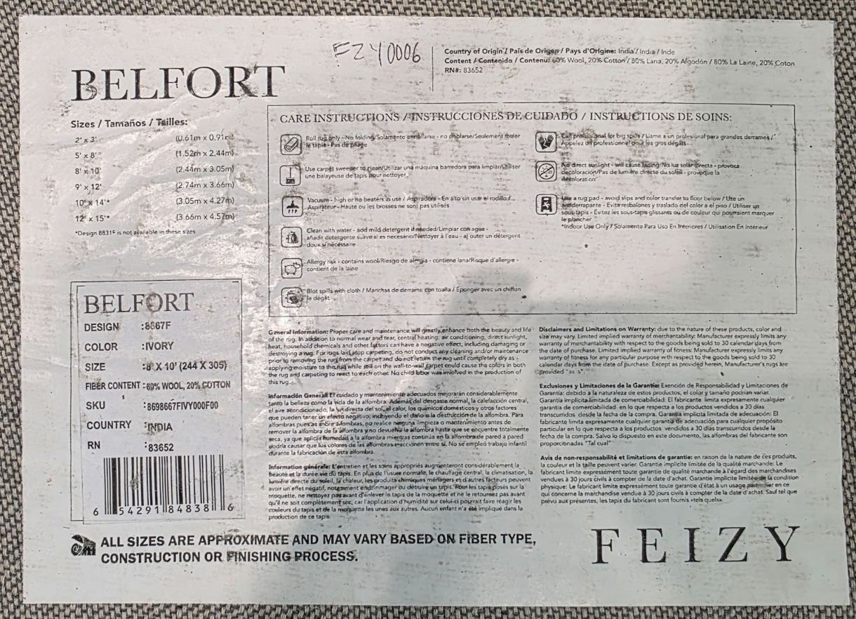 Feizy - New Belfort Collection Ivory Rug - RV: $1130 CAD - 120" x 95" (8667F / FZY0006) - Store display item