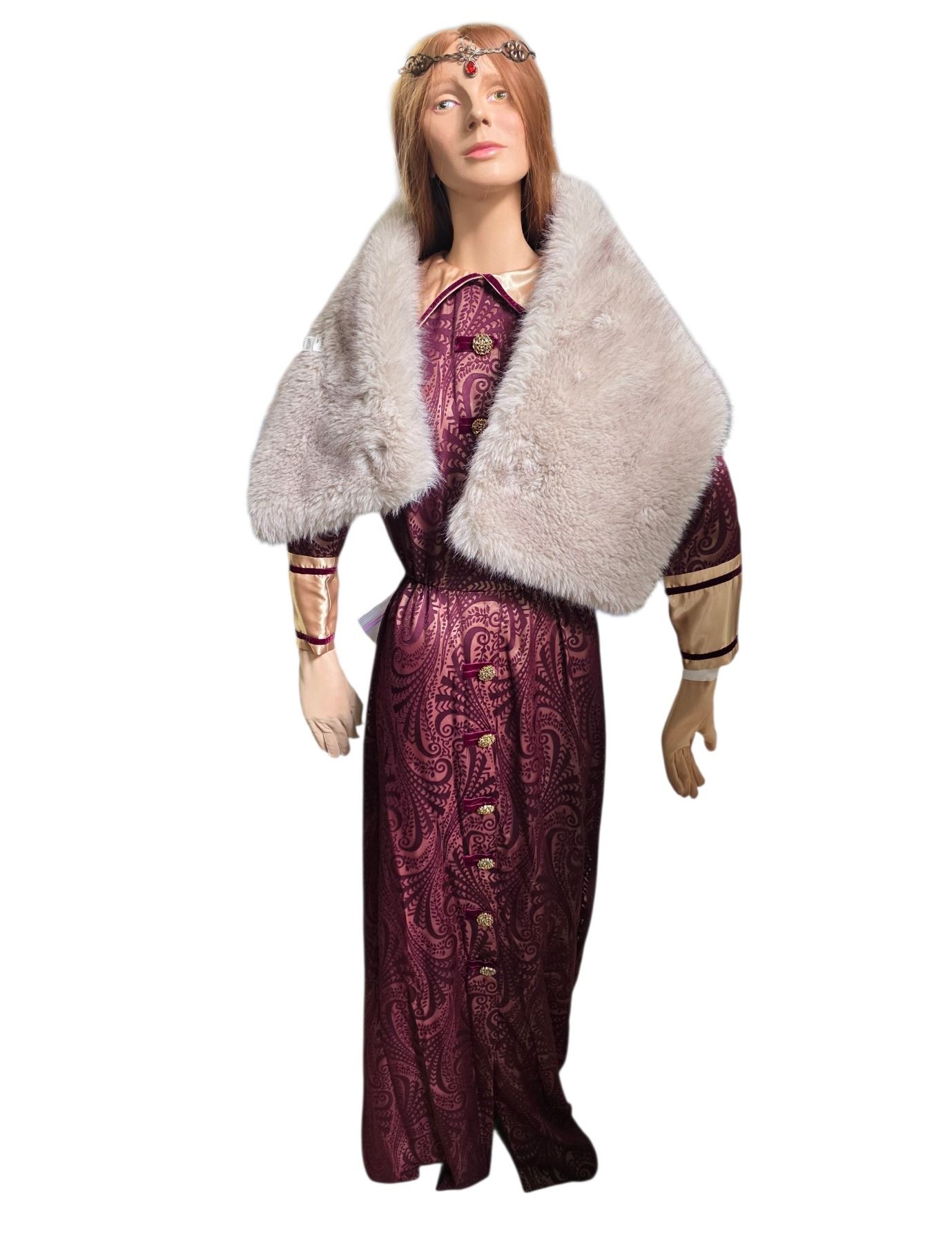 Female Mannequin with Burgundy Dress & Faux Fur Stole - From Witch Show