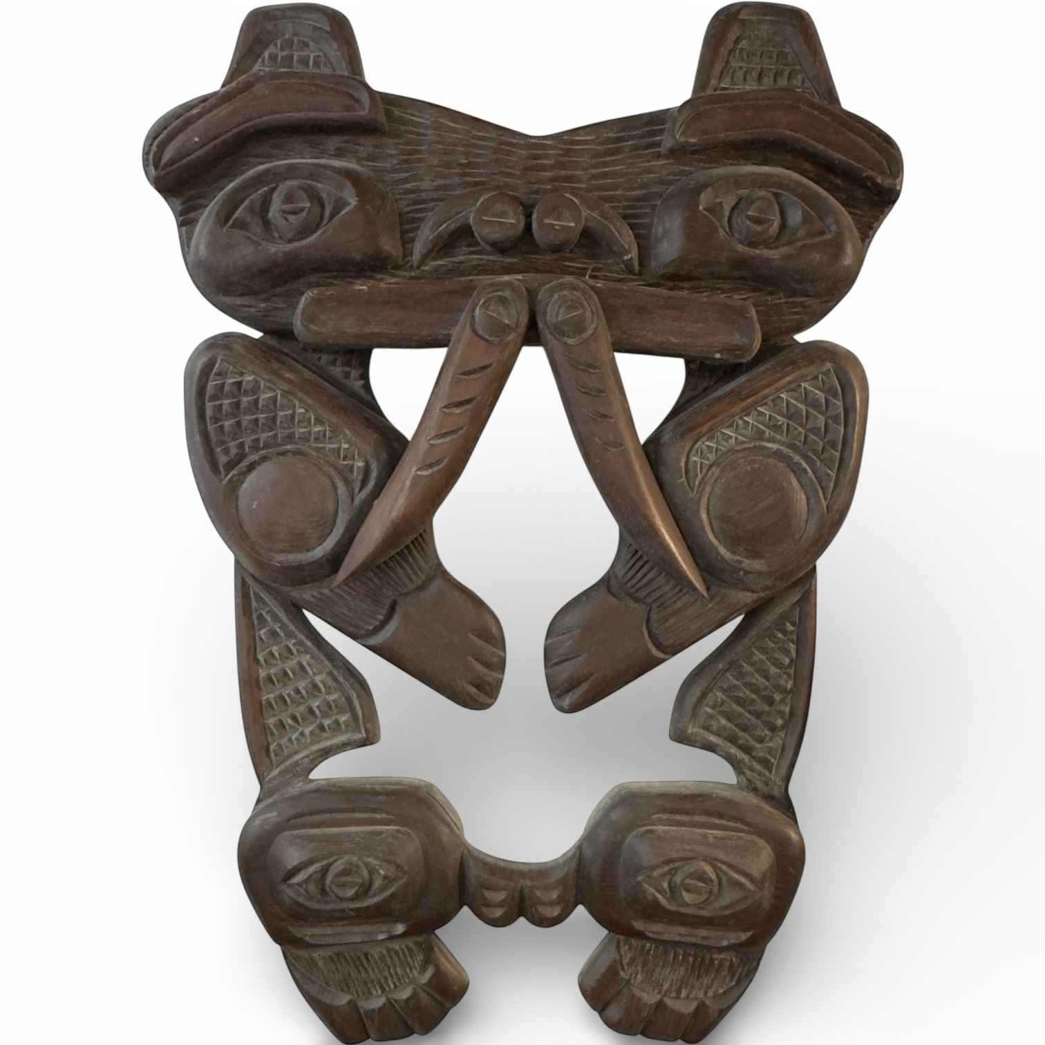 First Nations Carved Wood Wall Plaque of Walrus- Unsigned * 21" x 32"