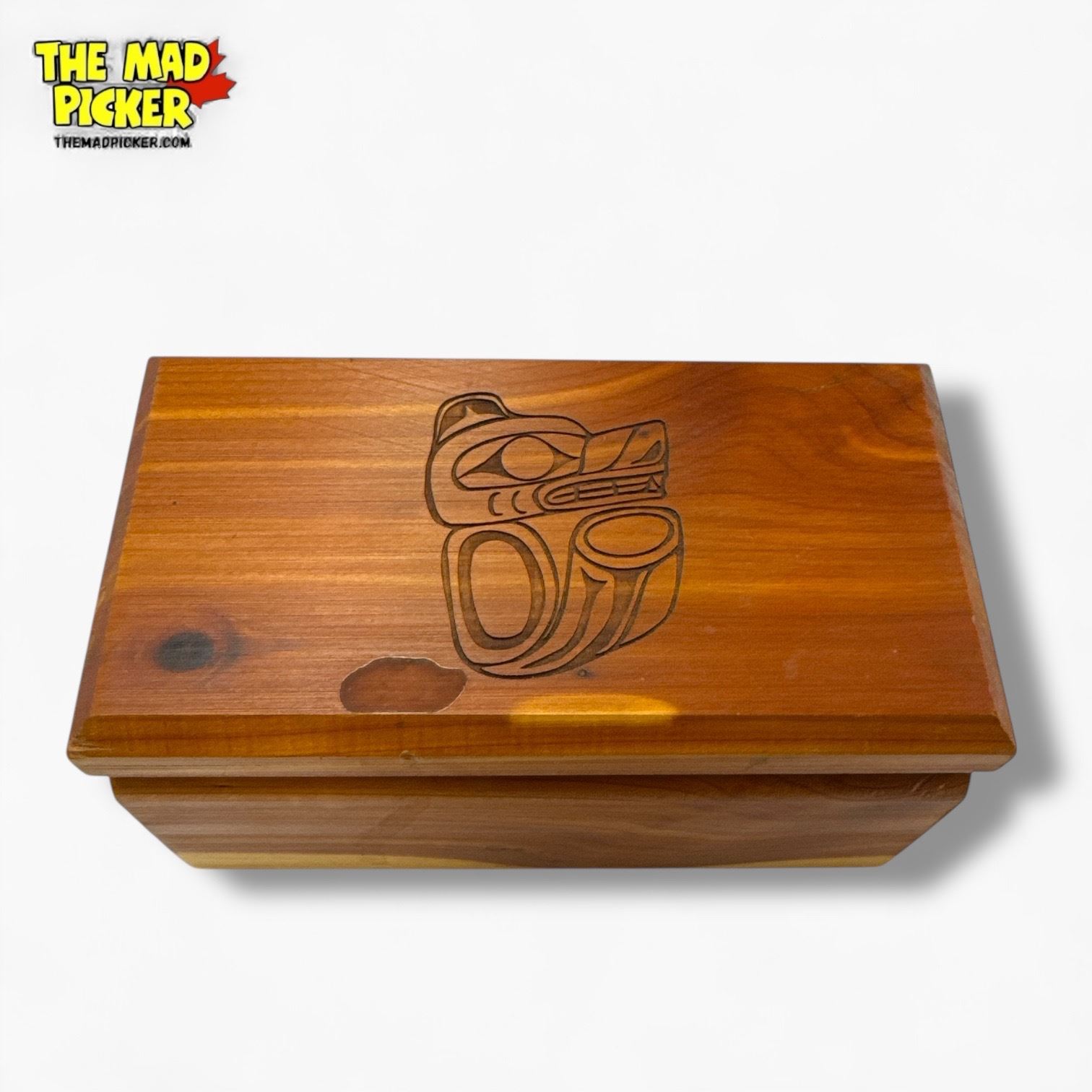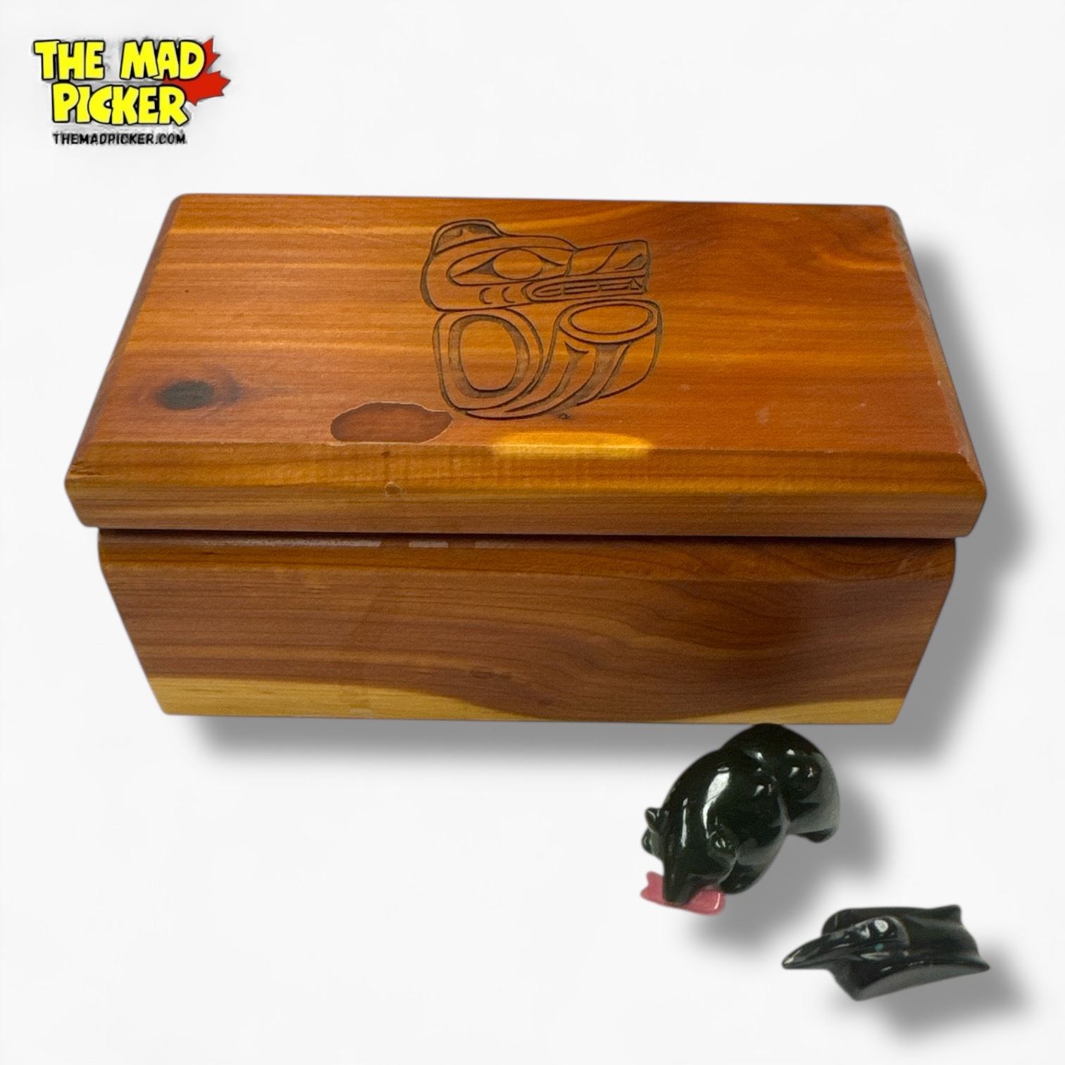First Nations Cedar "Bear" Box , 1.5" Jade Bear & 1" Zuni Raven (Box measures 4" x 6" x 3")