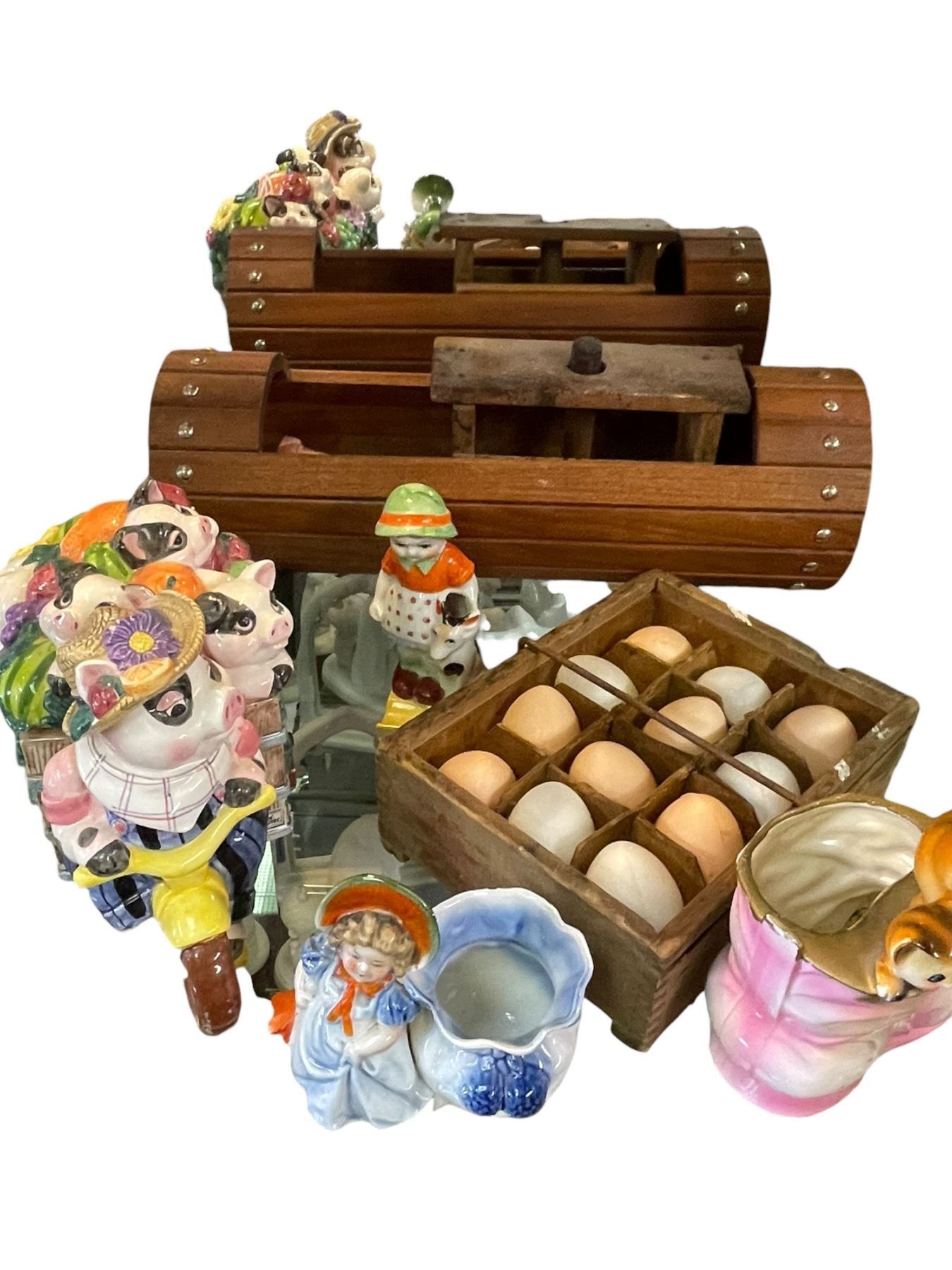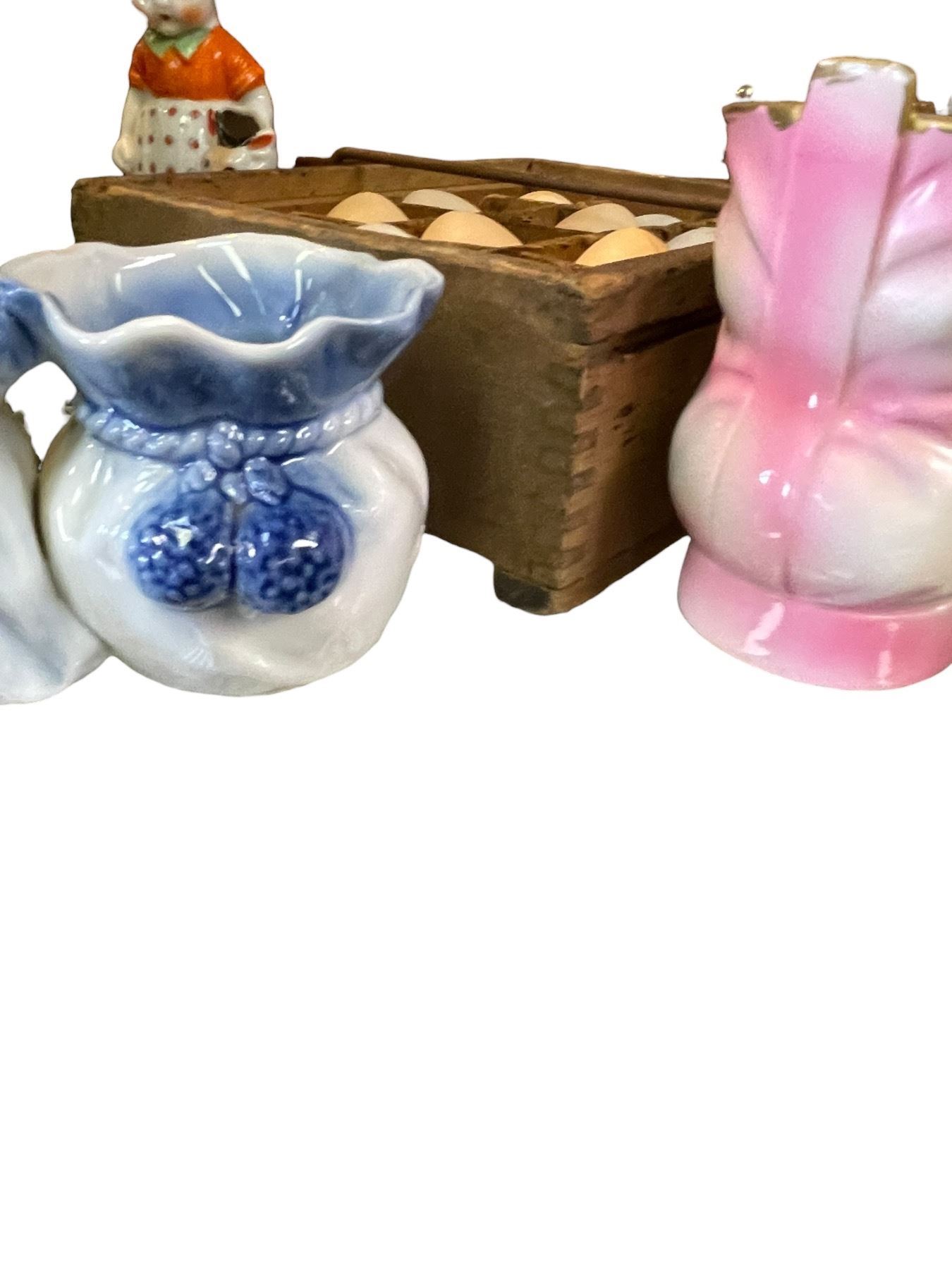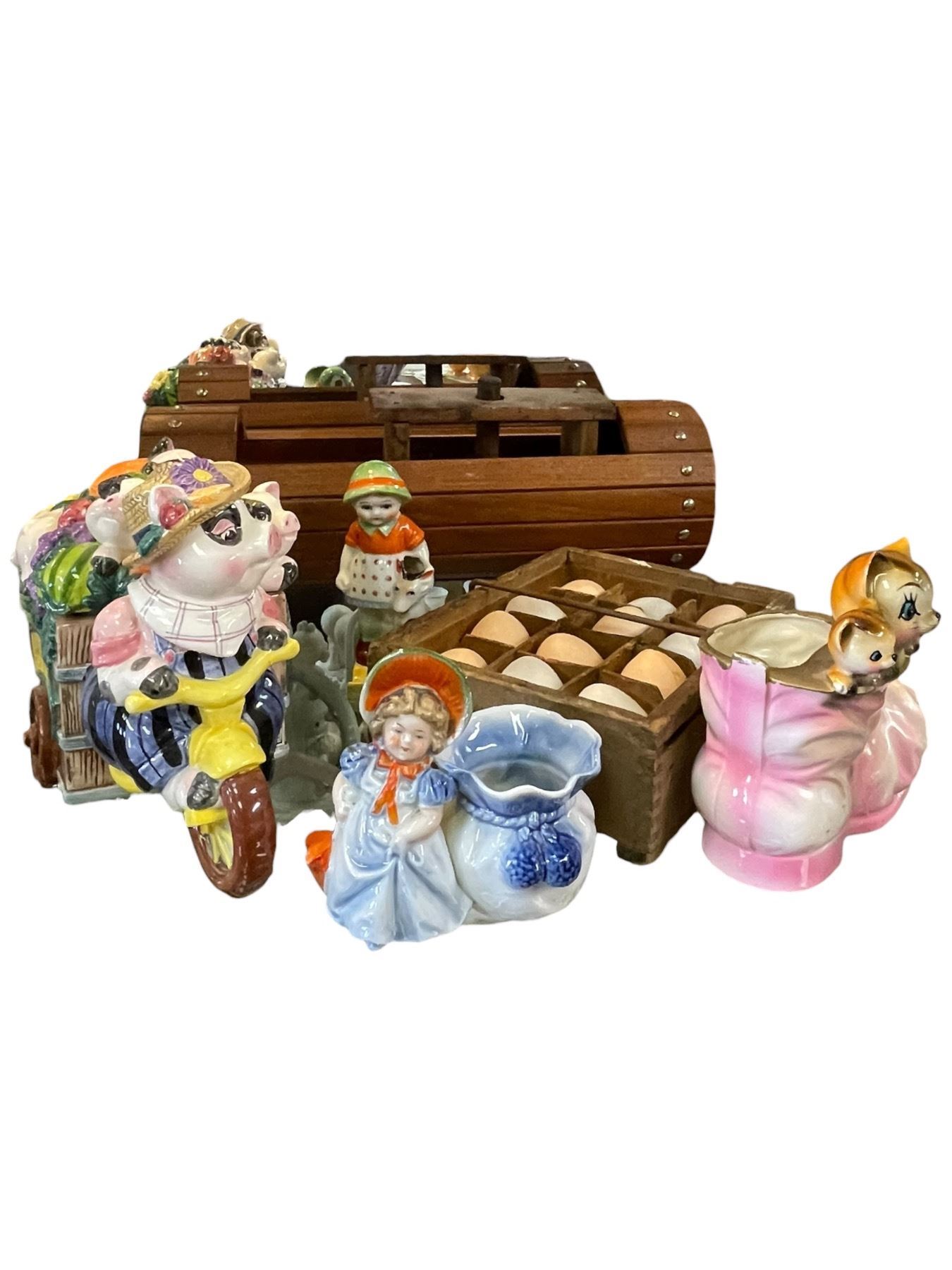 Fitz & Floyd Cookie Jar, Small Wood Plant Pot, & Figurines