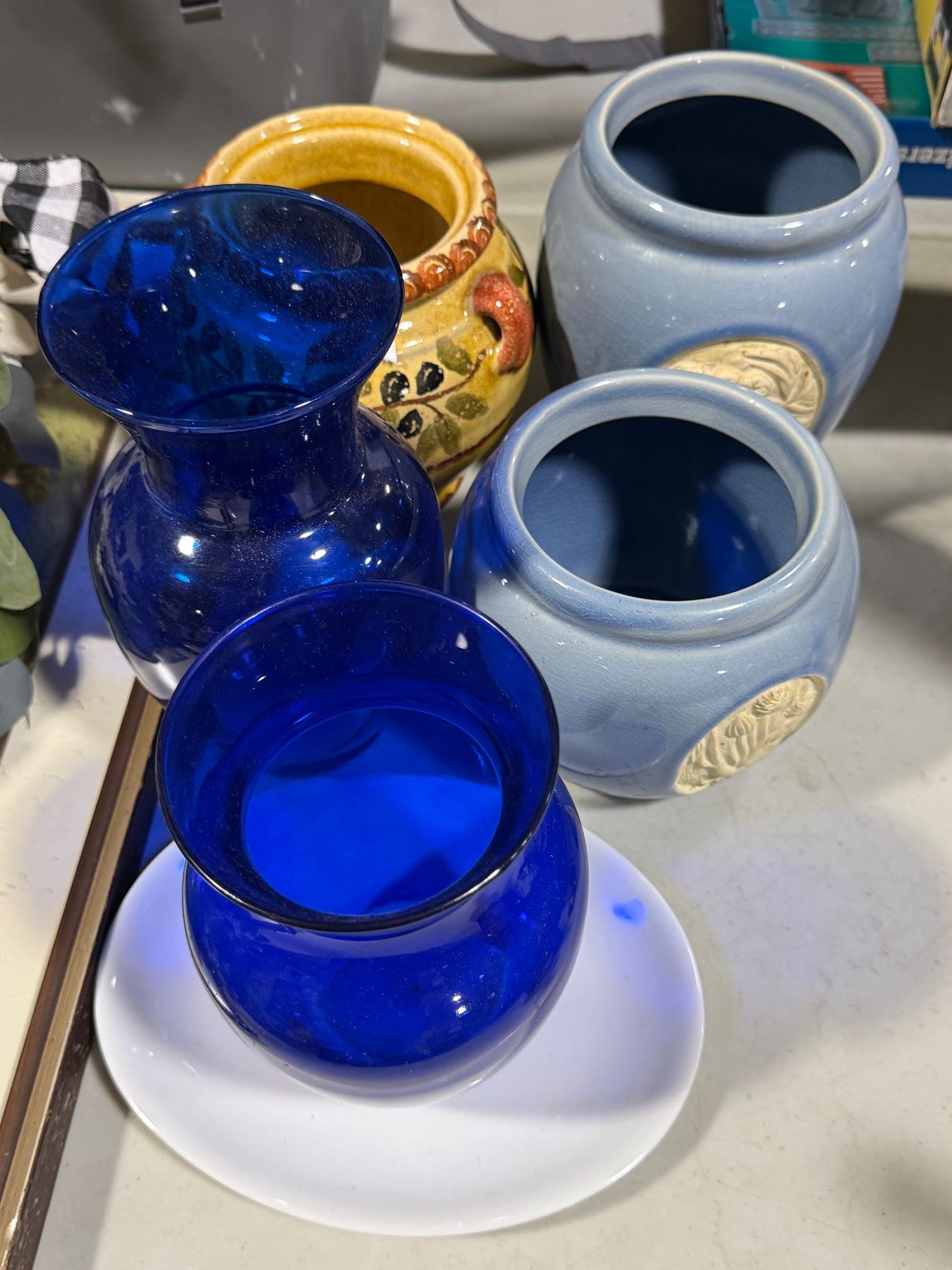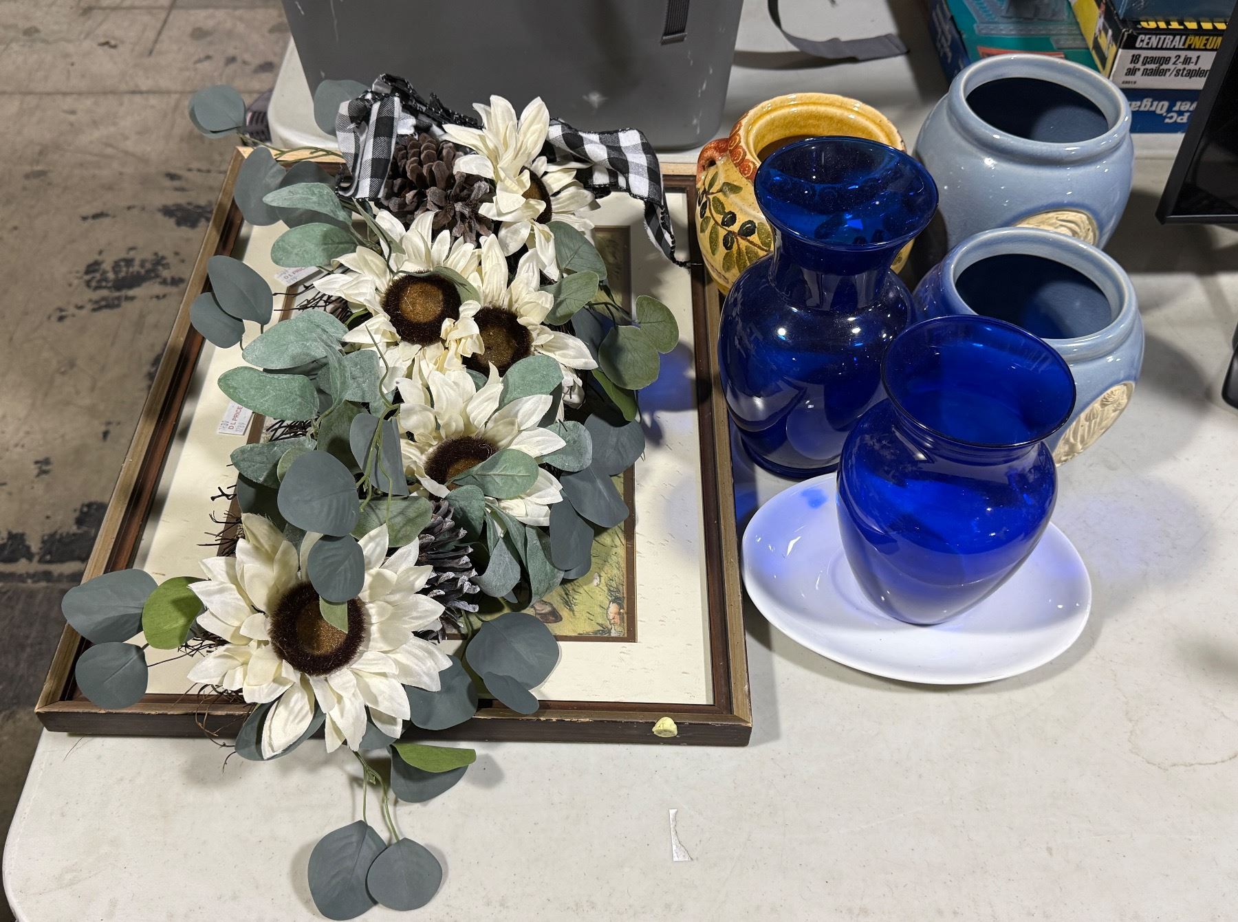Floral Decor, Cobalt Vases, Pottery & Framed Art